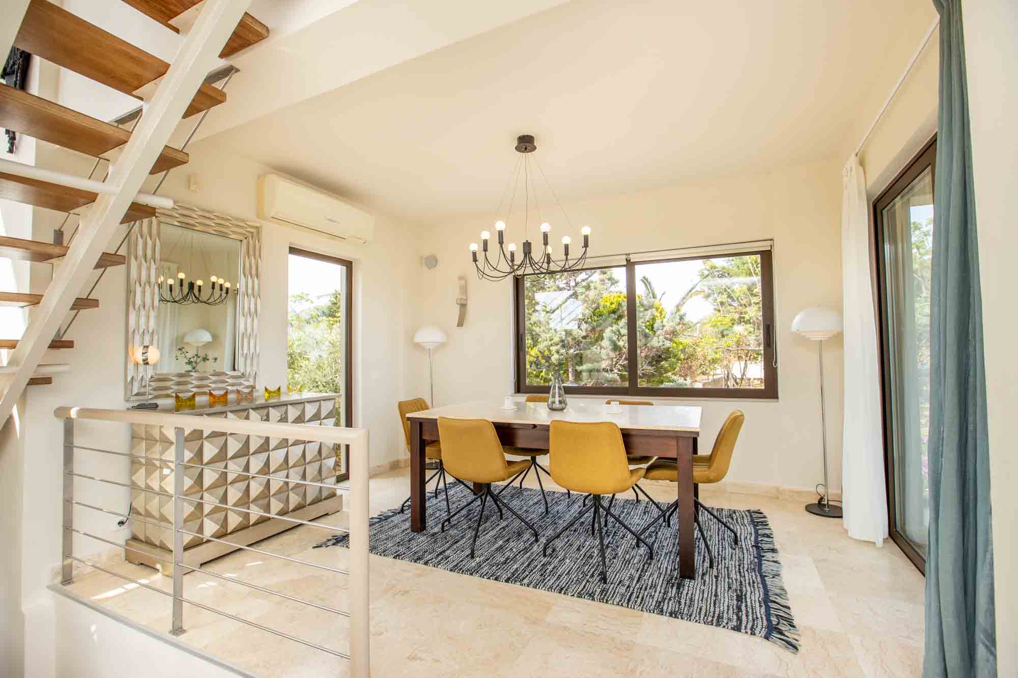 The 3-floor villa, surrounded by olive trees and a beautiful garden, offers you a great deal of privacy, allowing you to relax and unwind undisturbed, the villa has 4 bedrooms, a private swimming pool, and a fully landscaped garden offering plenty of privacy and relaxation areas. You will find comfortable sunbeds, sun shades, tables, and chairs in the pool area, all completing a perfect frame for dining with family and friends.