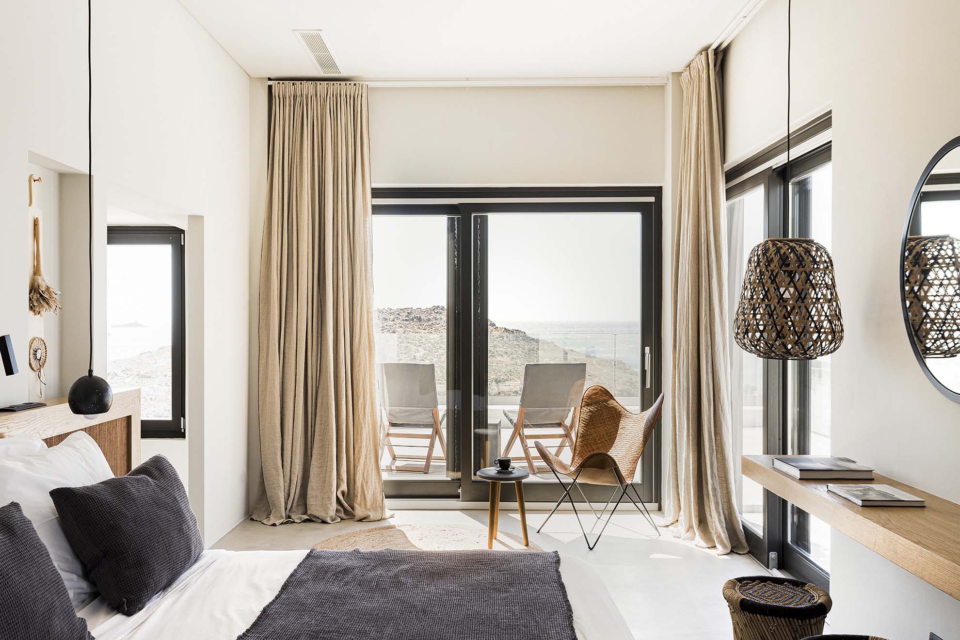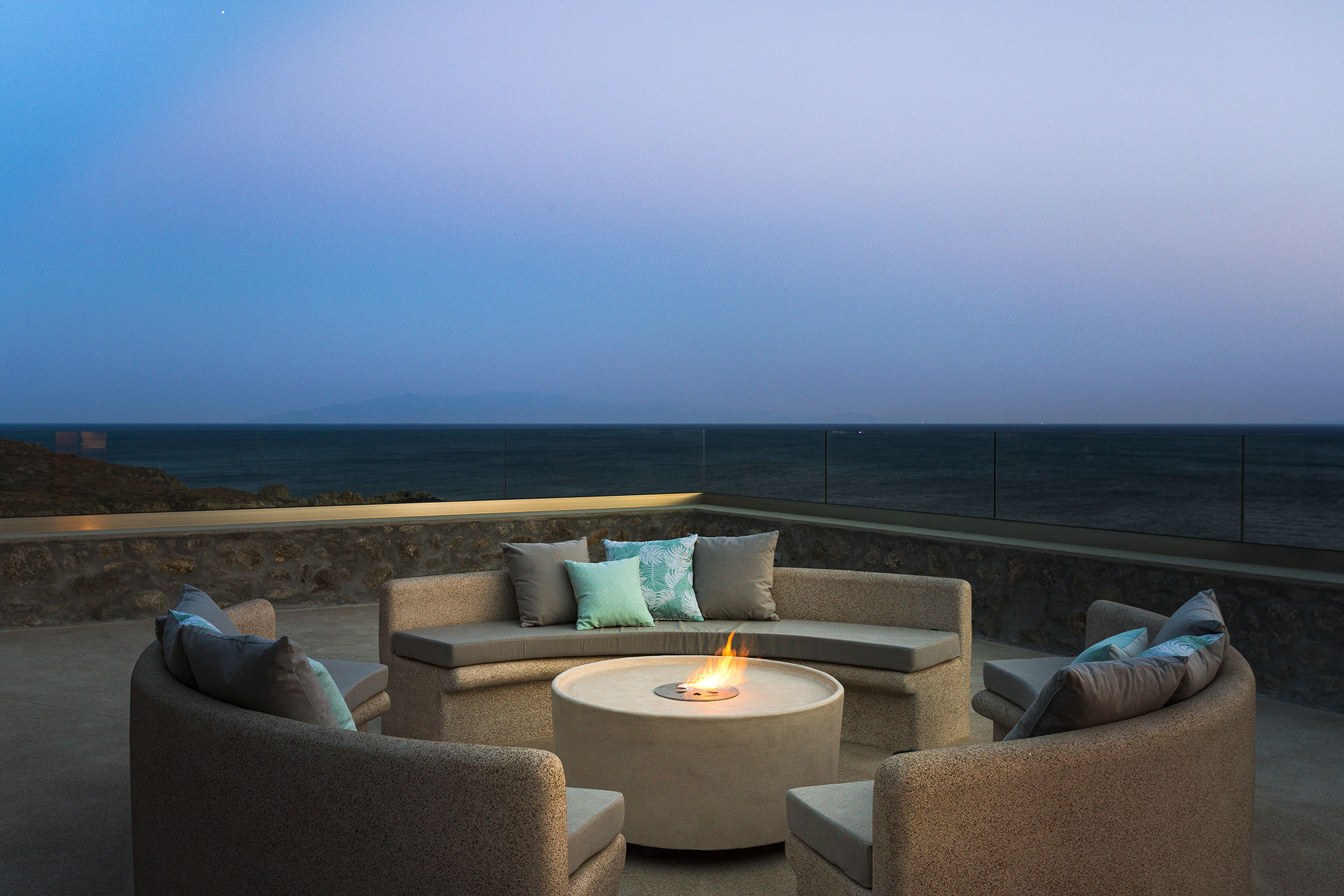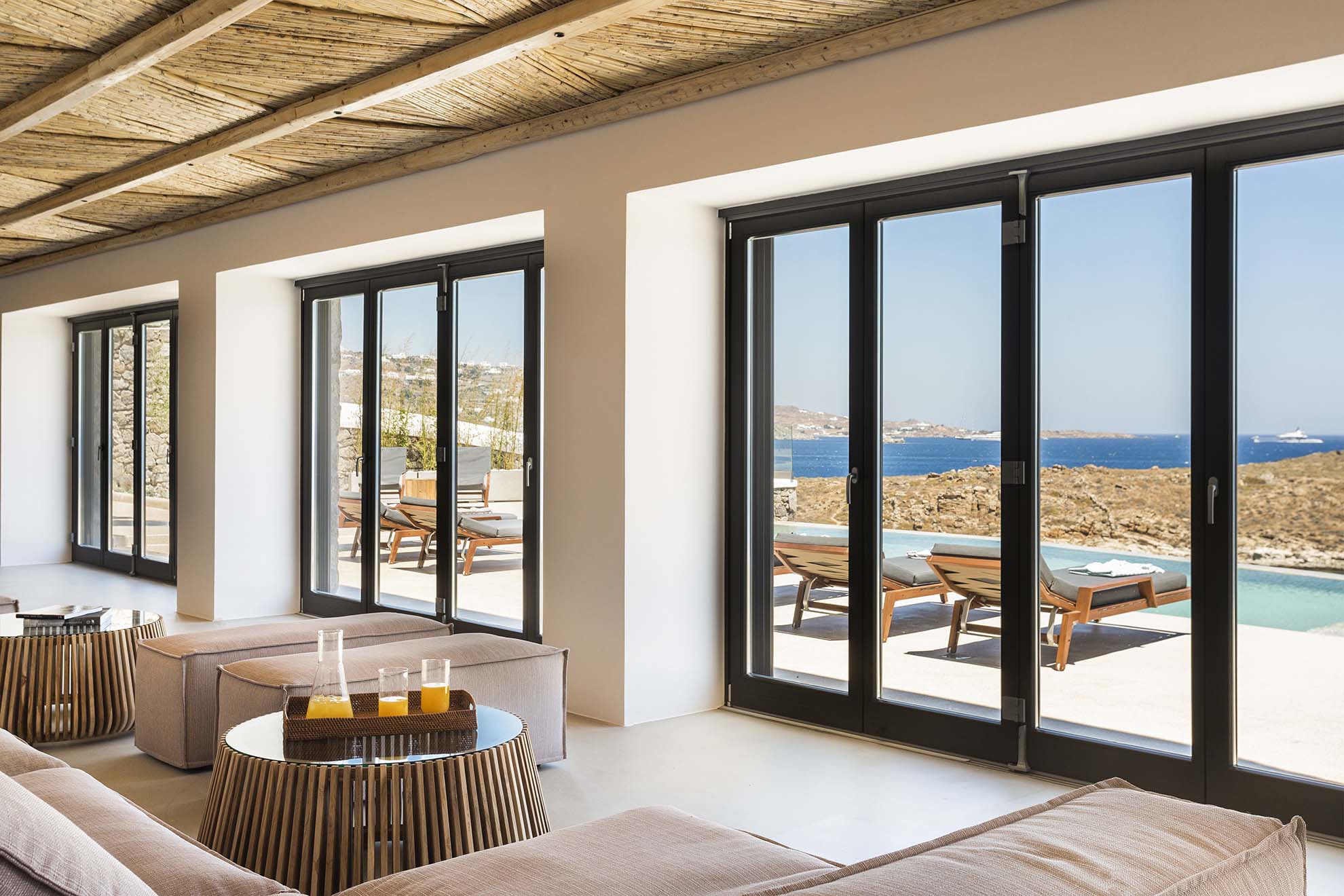 Villa Bovary is brand new seafront property in the area of Aleomandra, with amazing unobstructed sea views, built at the edge of a rocky shore in a wind protected spot right above the Aegean blue waters. Its meticulous landscape and modern design highlight the island’s lifestyle and is ideal for a families and group of friends.