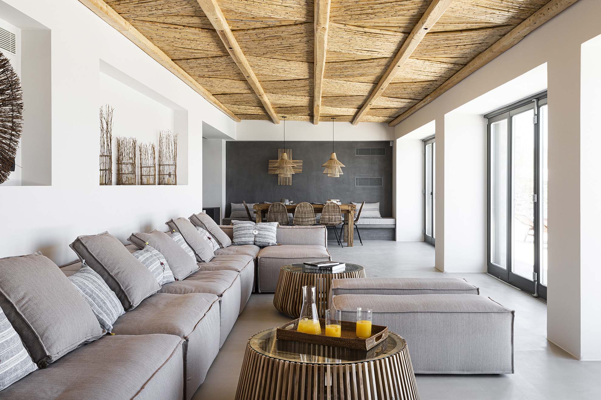 Villa Bovary is elegantly furnished and decorated with warm, welcoming colors and boasts multiple indoor and outdoor lounge areas, a private infinity pool, an outdoor Jacuzzi and an outdoor fireplace (fire pit) which creates the perfect focal point from which guests may enjoy the astounding sea views. Last but not least, below the villa’s main terrace at only two-minutes’ walk, there is a small isolated sandy beach which guests may freely visit adding a unique feature to the property.