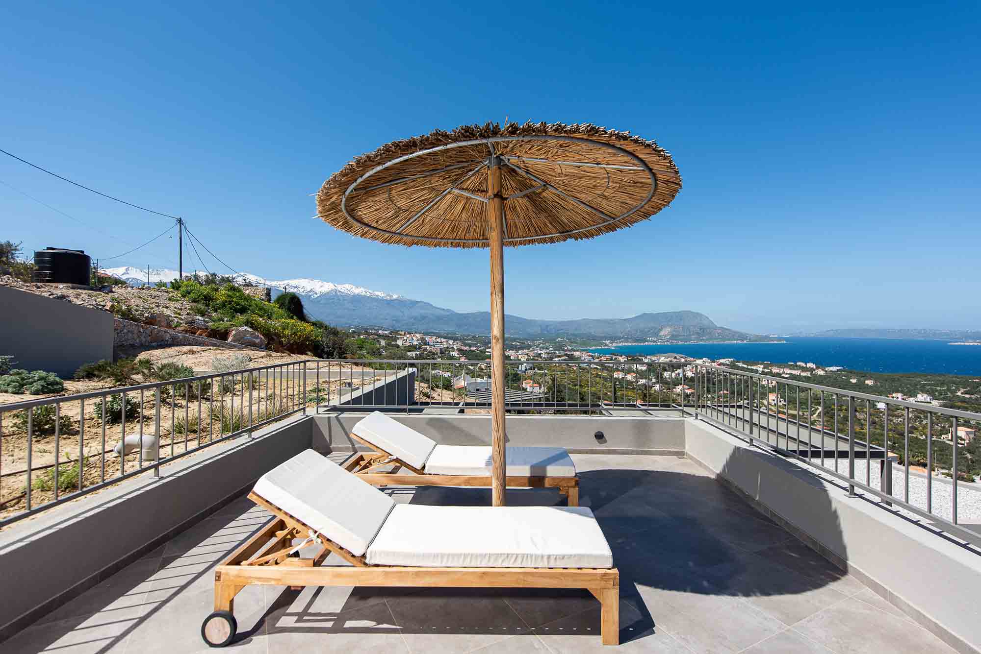 Inside, a spacious open-plan kitchen, dining, and lounge area complements the 5-star experience, providing the perfect haven for families and groups exploring Western Crete.