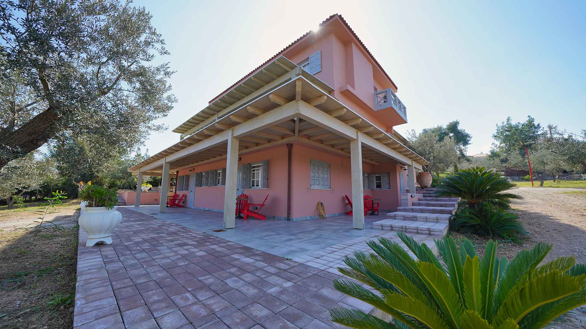 Set in Agios Aimilianos of Porto Heli, Villa Caliana is an enchanting retreat nestled within an expansive estate filled with majestic olive trees. This exquisite villa combines luxury and nature, making it an ideal heaven for families, large groups of friends, and pet lovers alike.