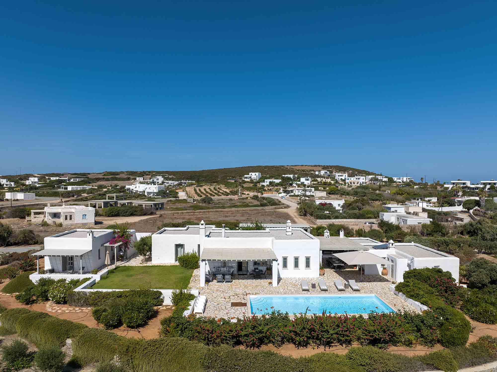 With breathtaking views of the azure sea and mountains, Villa Cassandra offers an idyllic setting across 2,000 sq.m. of terraces and gardens. The heated infinity swimming pool complements the panoramic vistas.