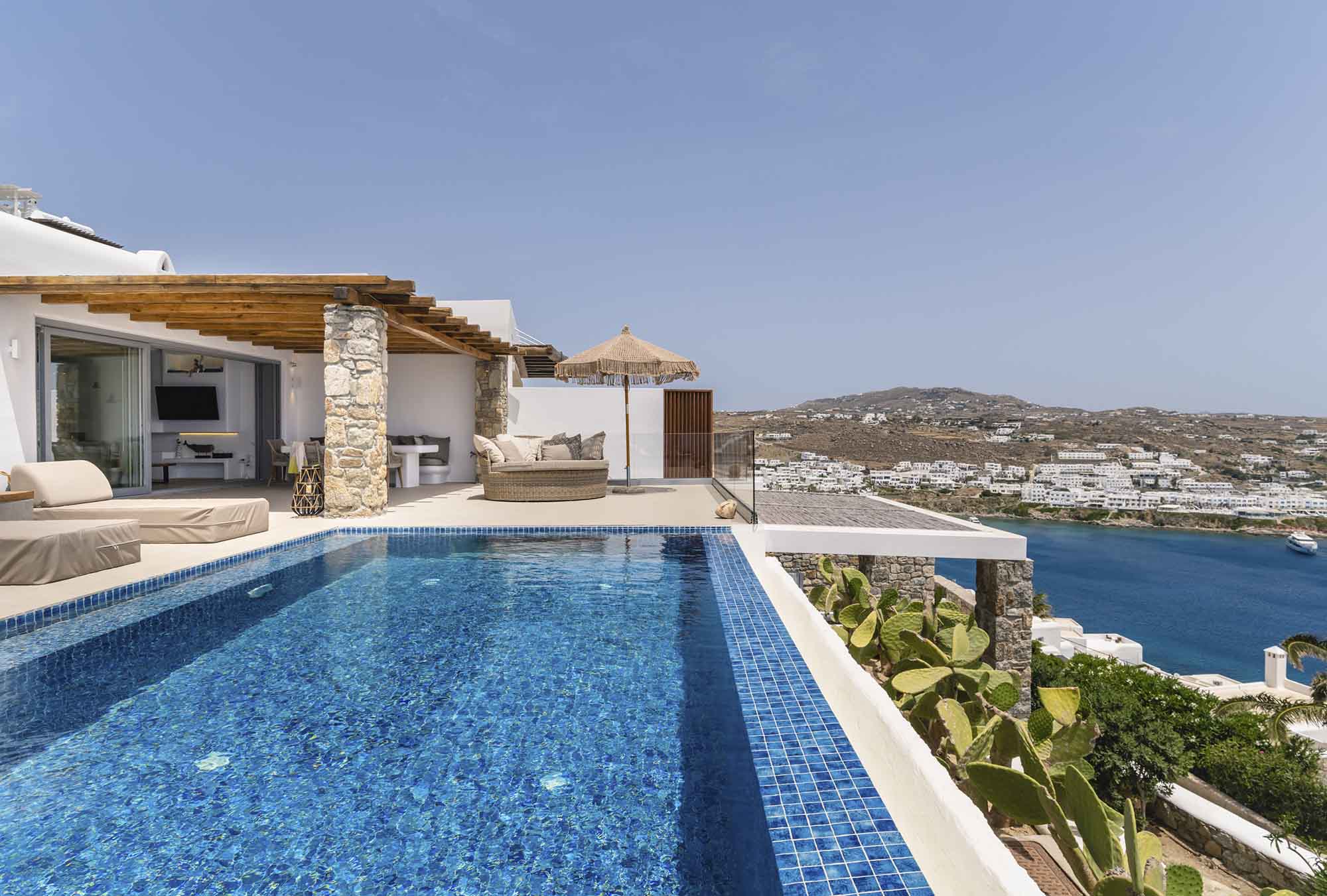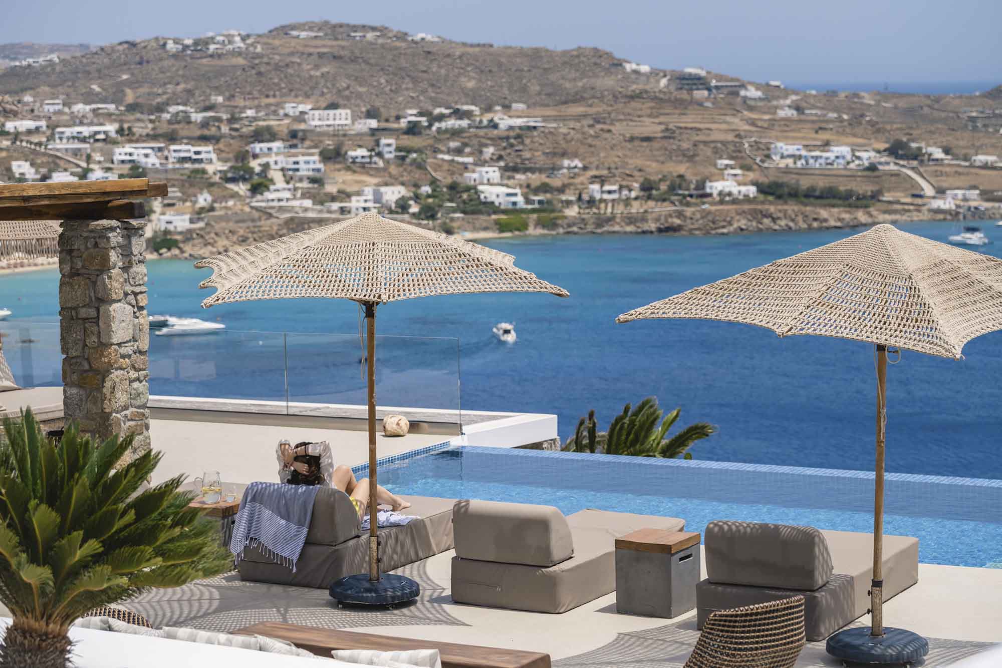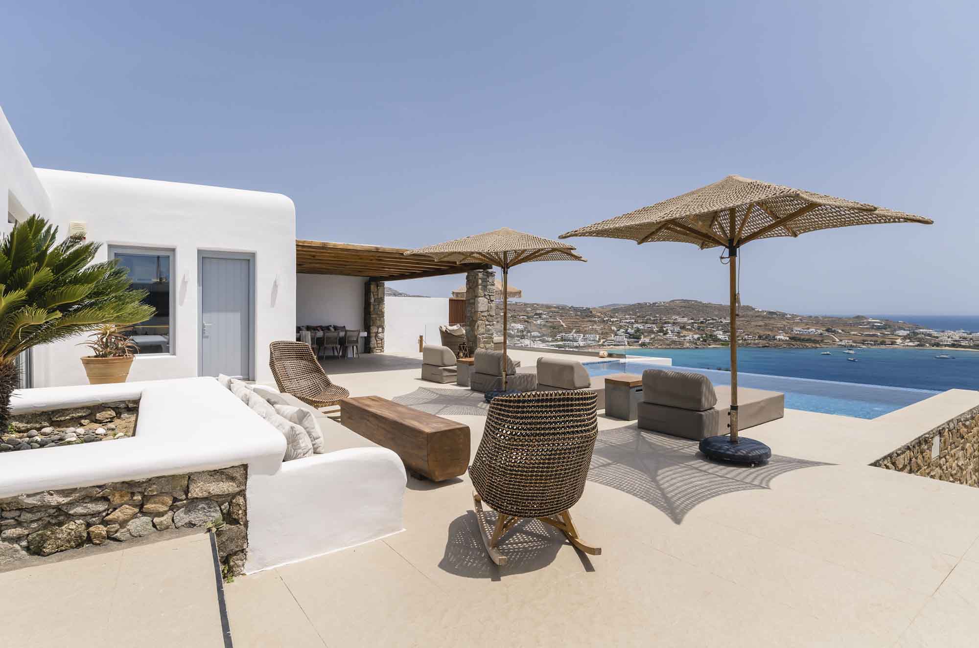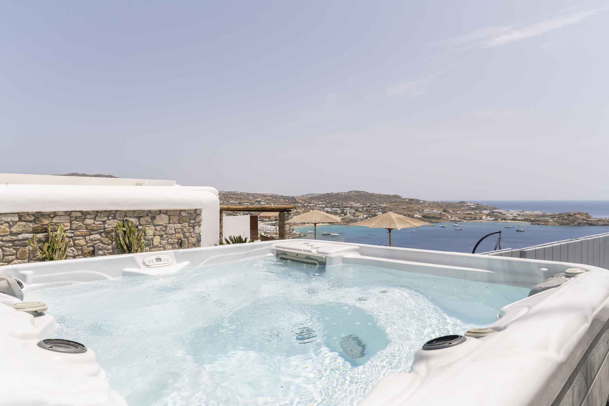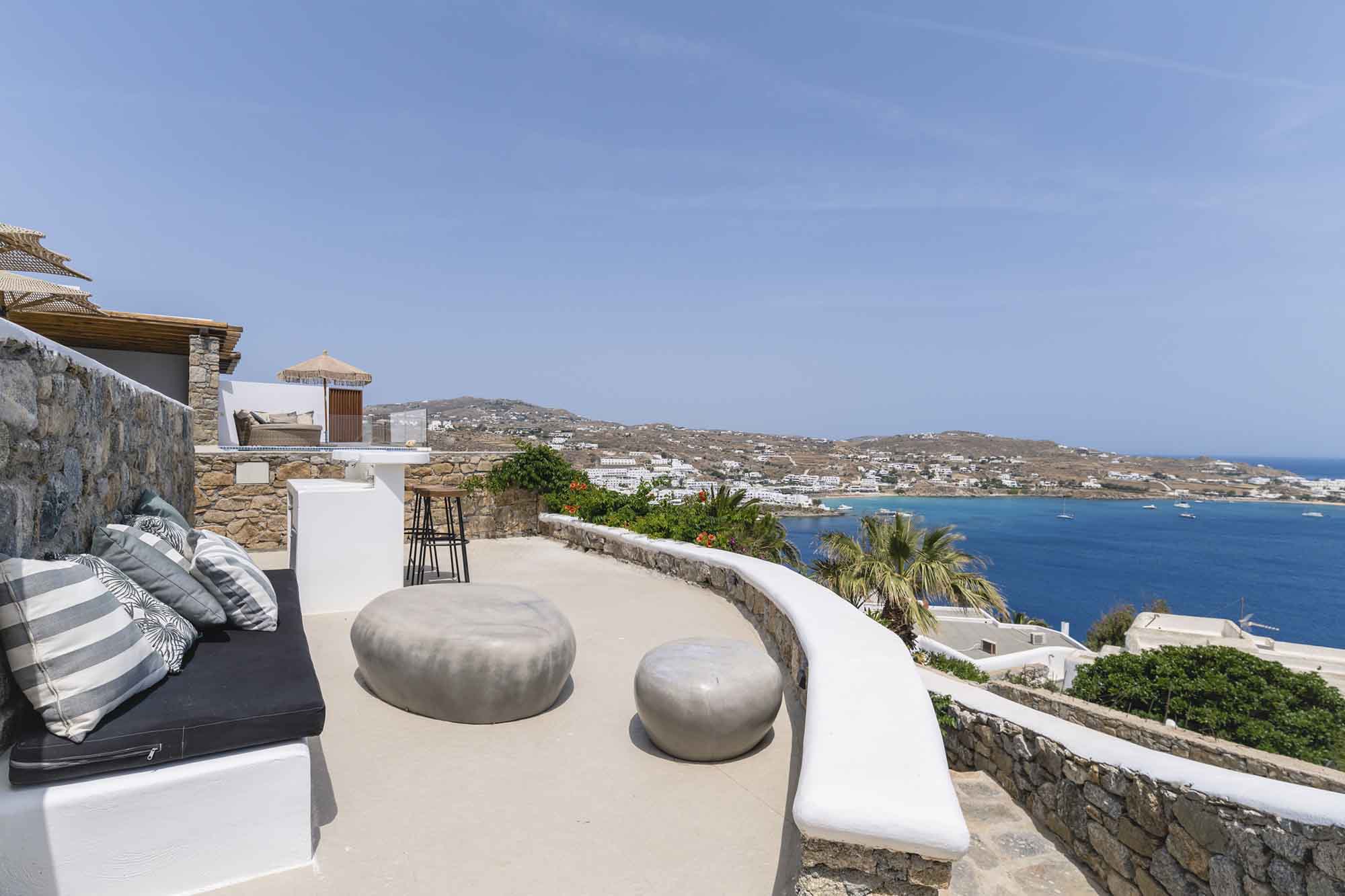 Villa Constance is gracefully located in Agios Lazaros, thus offering the most spectacular sea view in Mykonos. Overlooking the beaches of Psarou, Paraga and Scorpios, in addition to the islands of Paros and Naxos, the outdoor terrace has it all to make your stay heavenly. Between the private infinity pool, outdoor Jacuzzi, outdoor bar, barbecue corner, sun loungers and dining area, you will be able to enjoy every moment of your stay and fulfill your dream holiday bucket list.