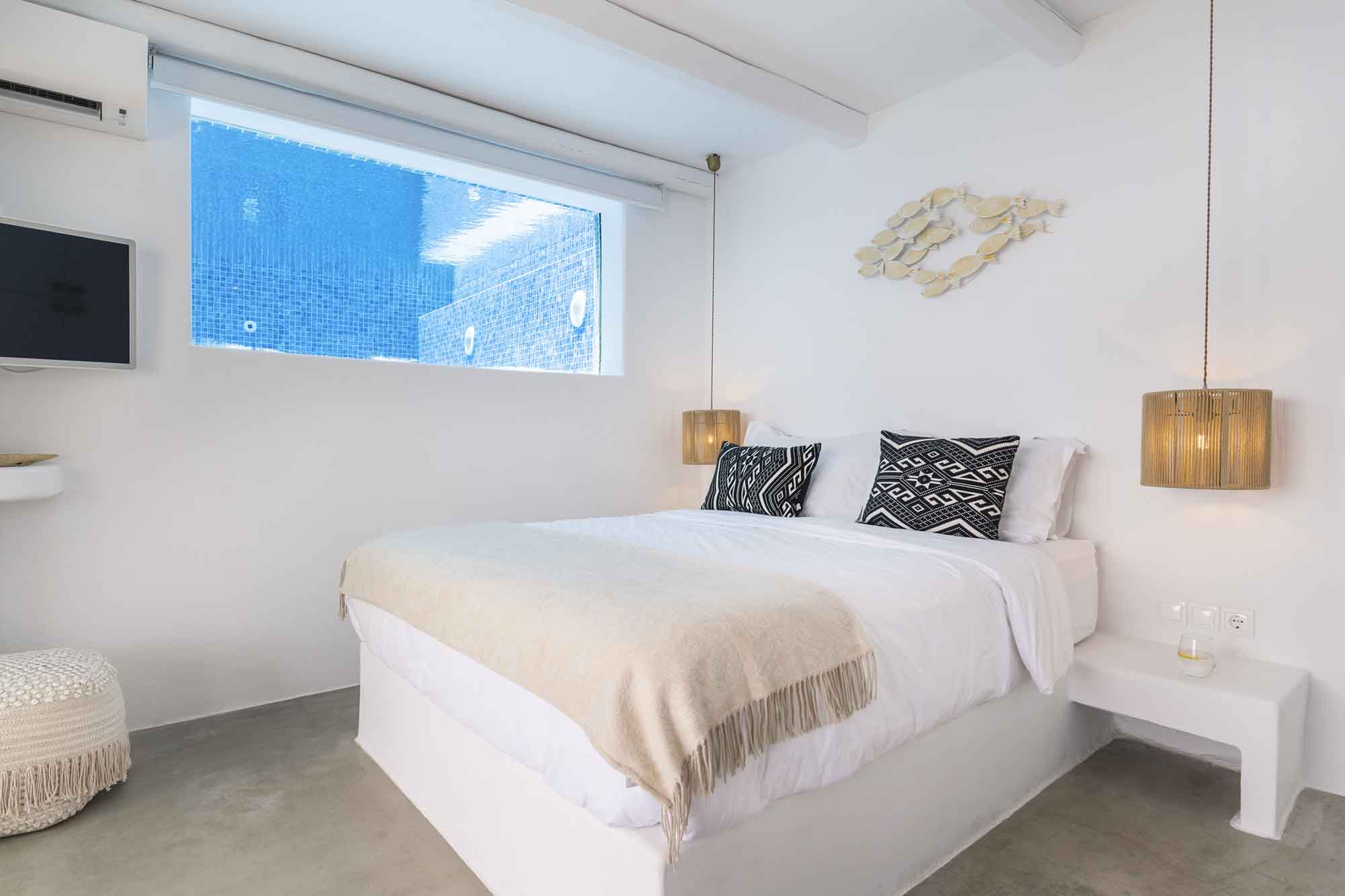 The villa has just been fully renovated and now portrays the most modern Mykonian interior design, making it a delightfully luxurious holiday oasis. Villa Constance is divided into 4 fully independent bedrooms with en-suite bathrooms and with a unique cachet in each room.
