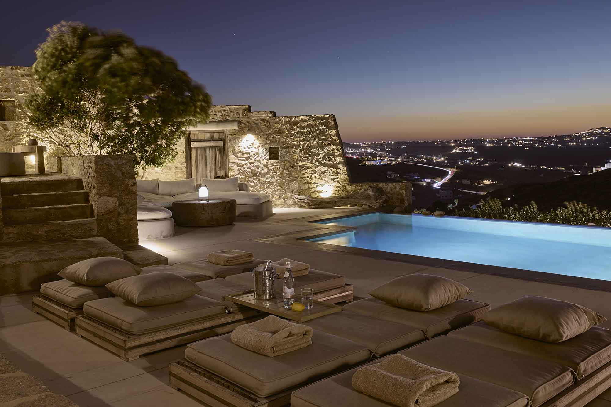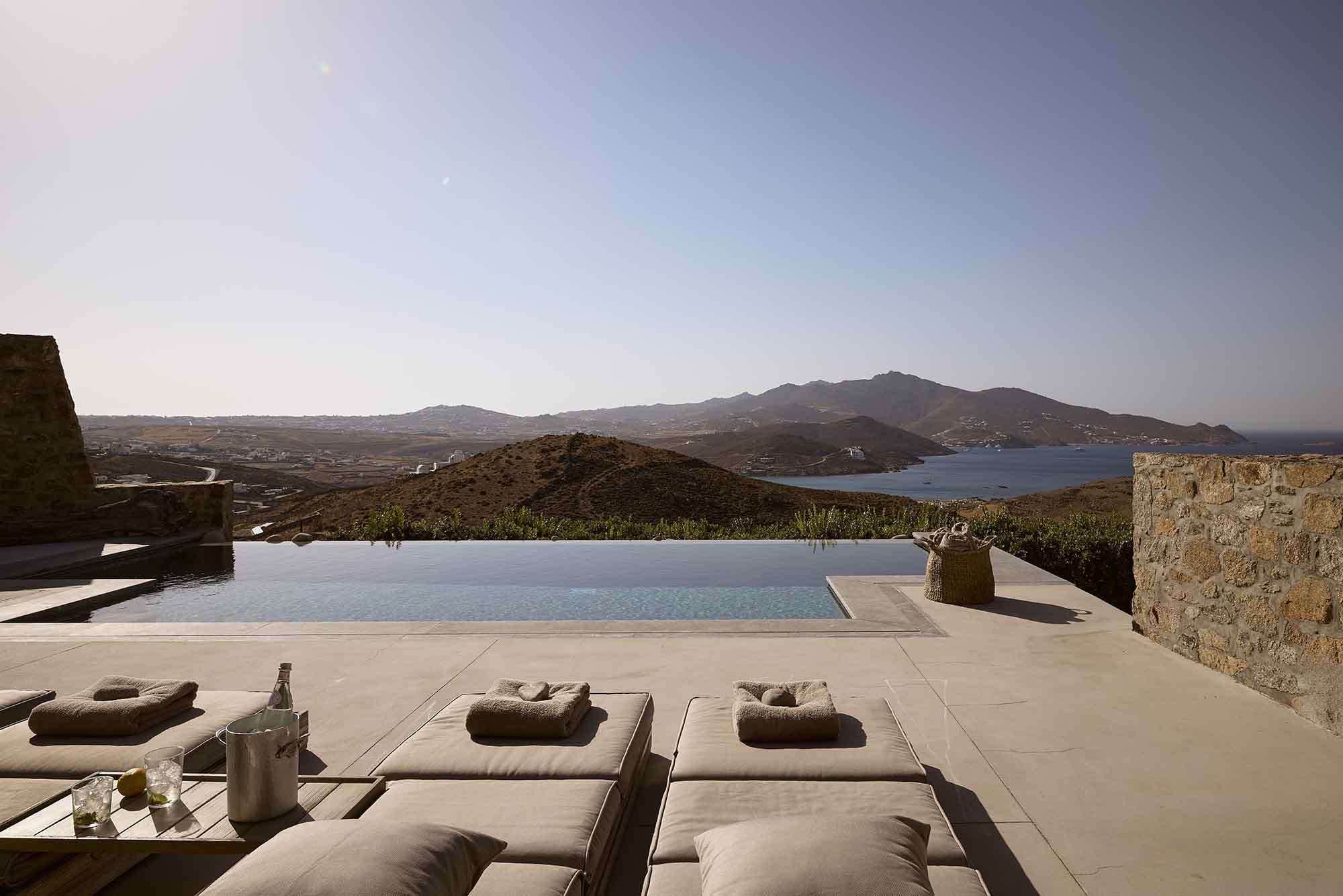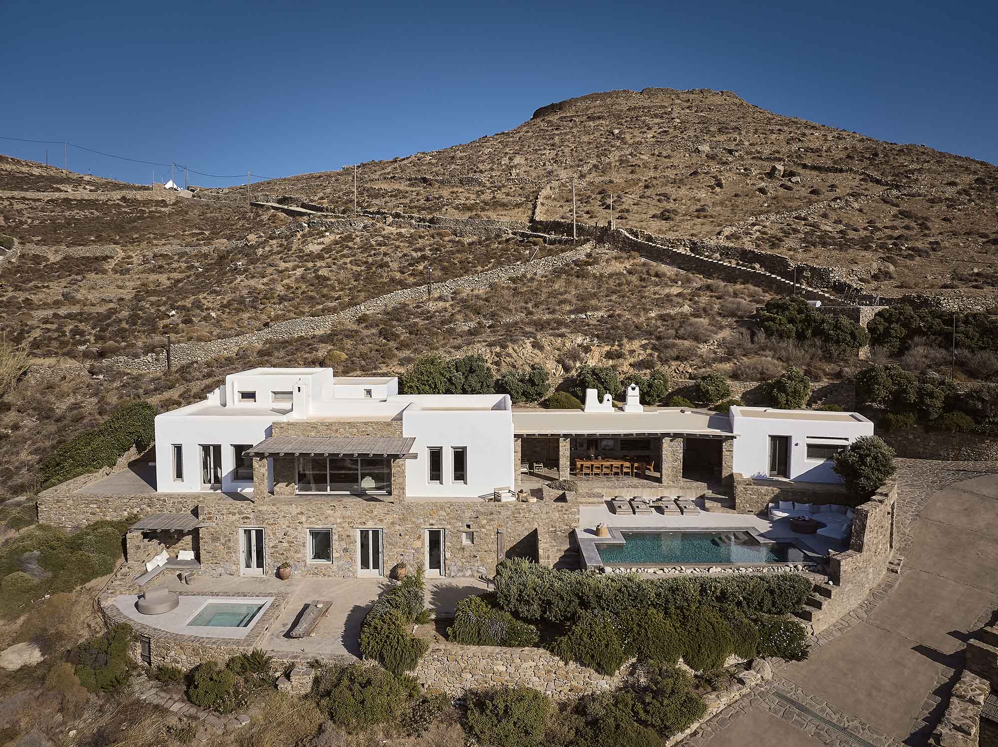 Villa Daniela is a Mykonos luxury villa cited in a privileged and tranquil location on a hilltop right above the sandy beach Ftelia bay. Only 15 minutes away from the airport and the port this calm and ultra-luxurious villa blends harmoniously the local landscape with serenity living and luxury amenities.