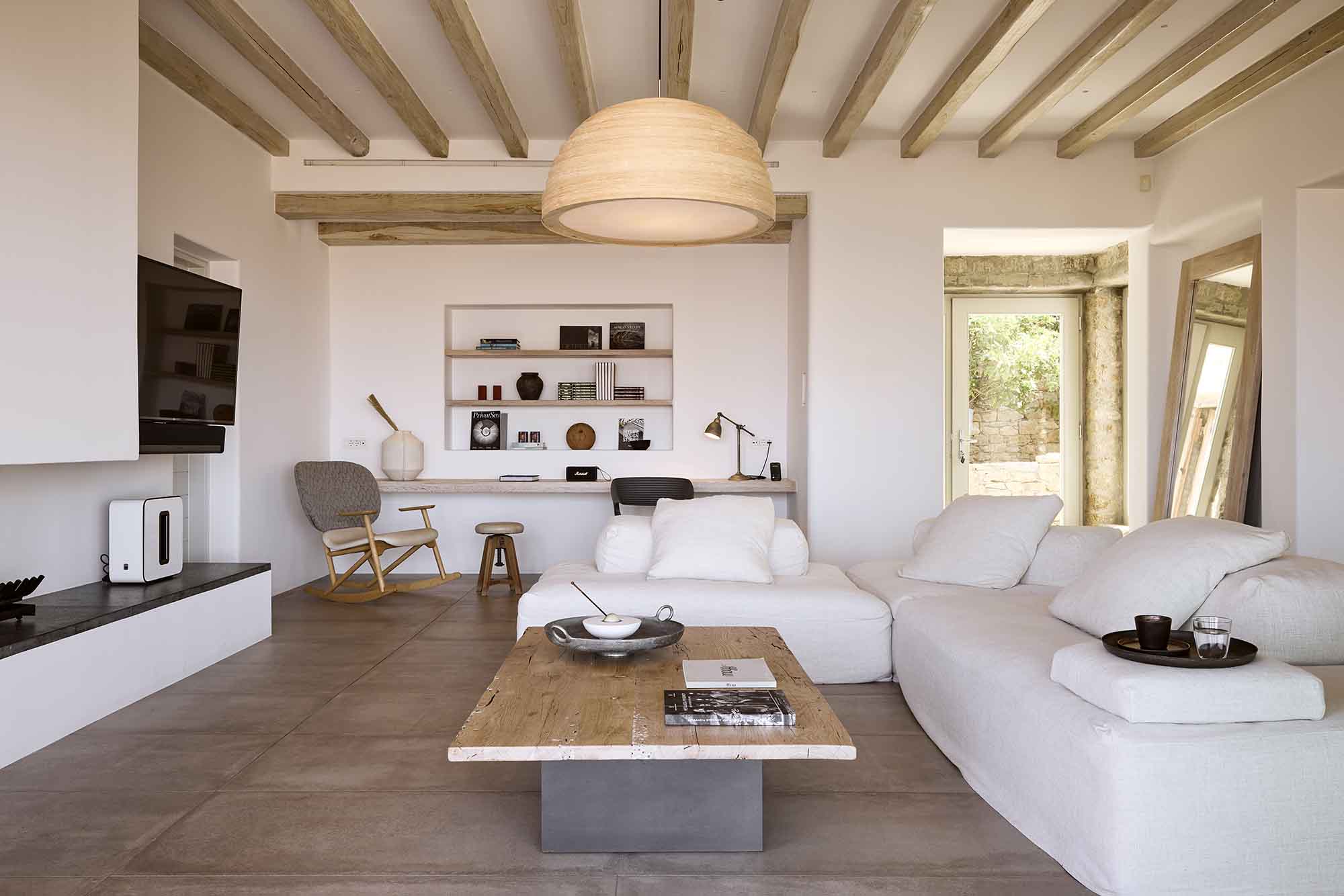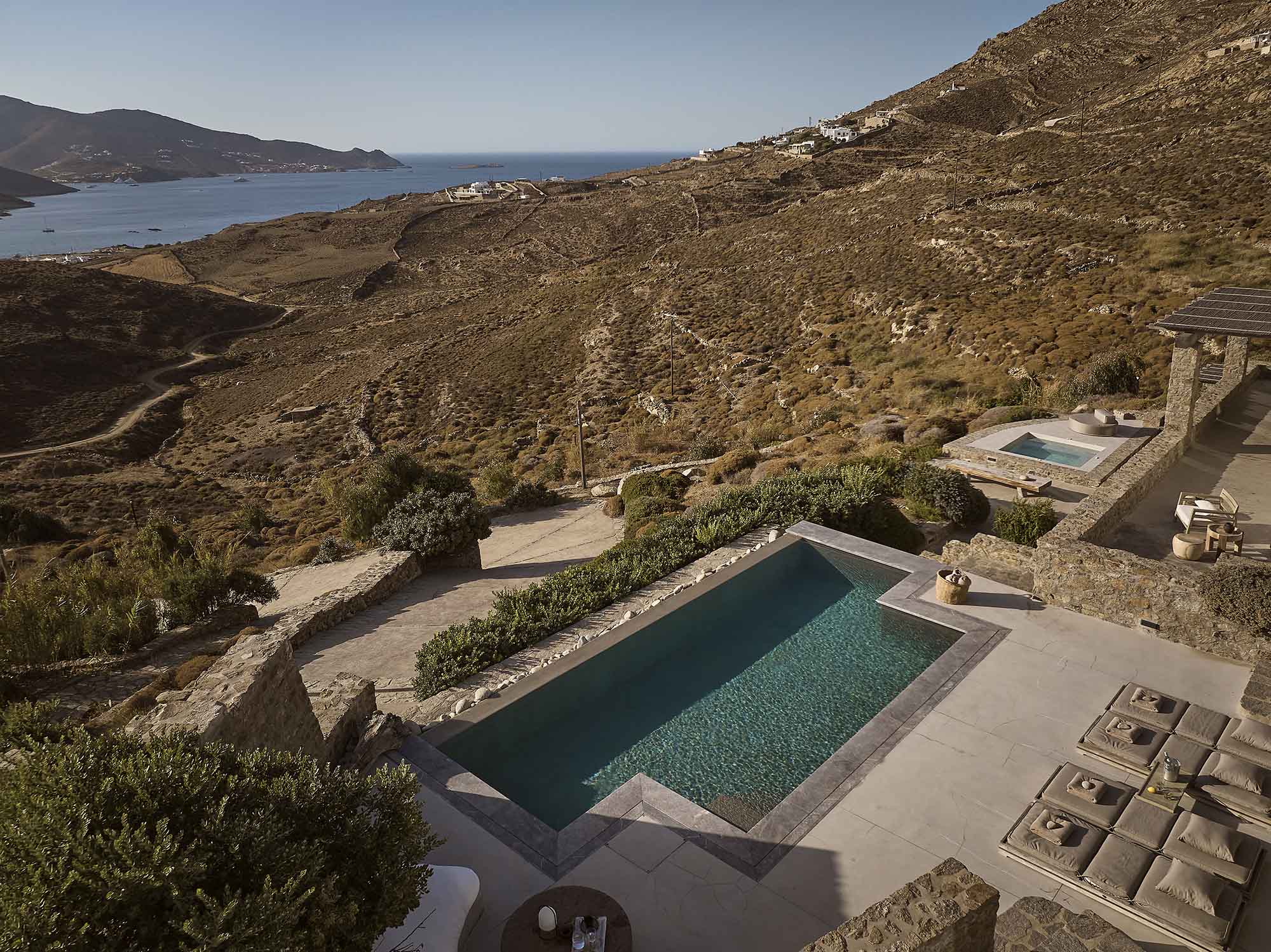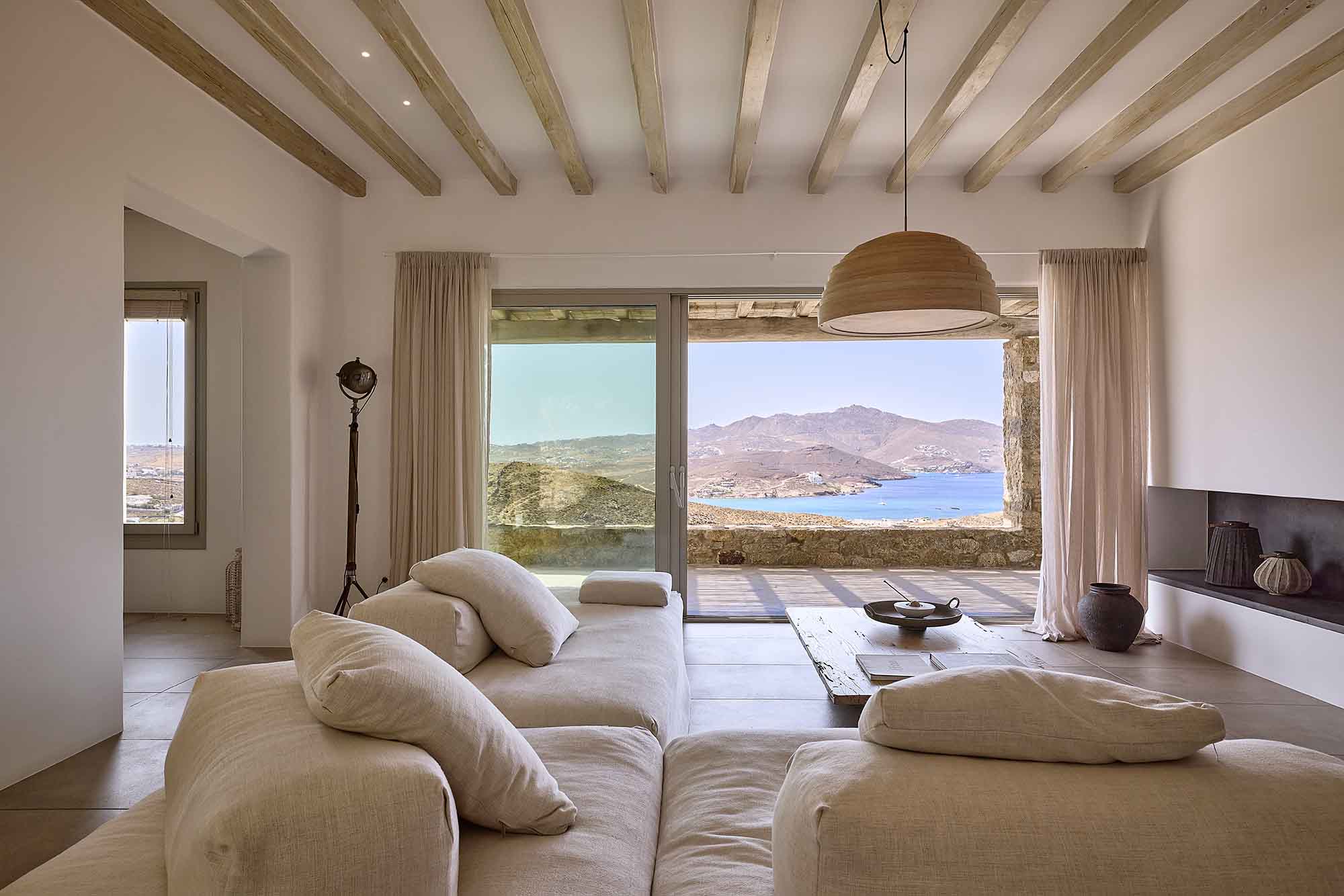 Villa Daniela is a Mykonos luxury villa cited in a privileged and tranquil location on a hilltop right above the sandy beach Ftelia bay. Only 15 minutes away from the airport and the port this calm and ultra-luxurious villa blends harmoniously the local landscape with serenity living and luxury amenities.