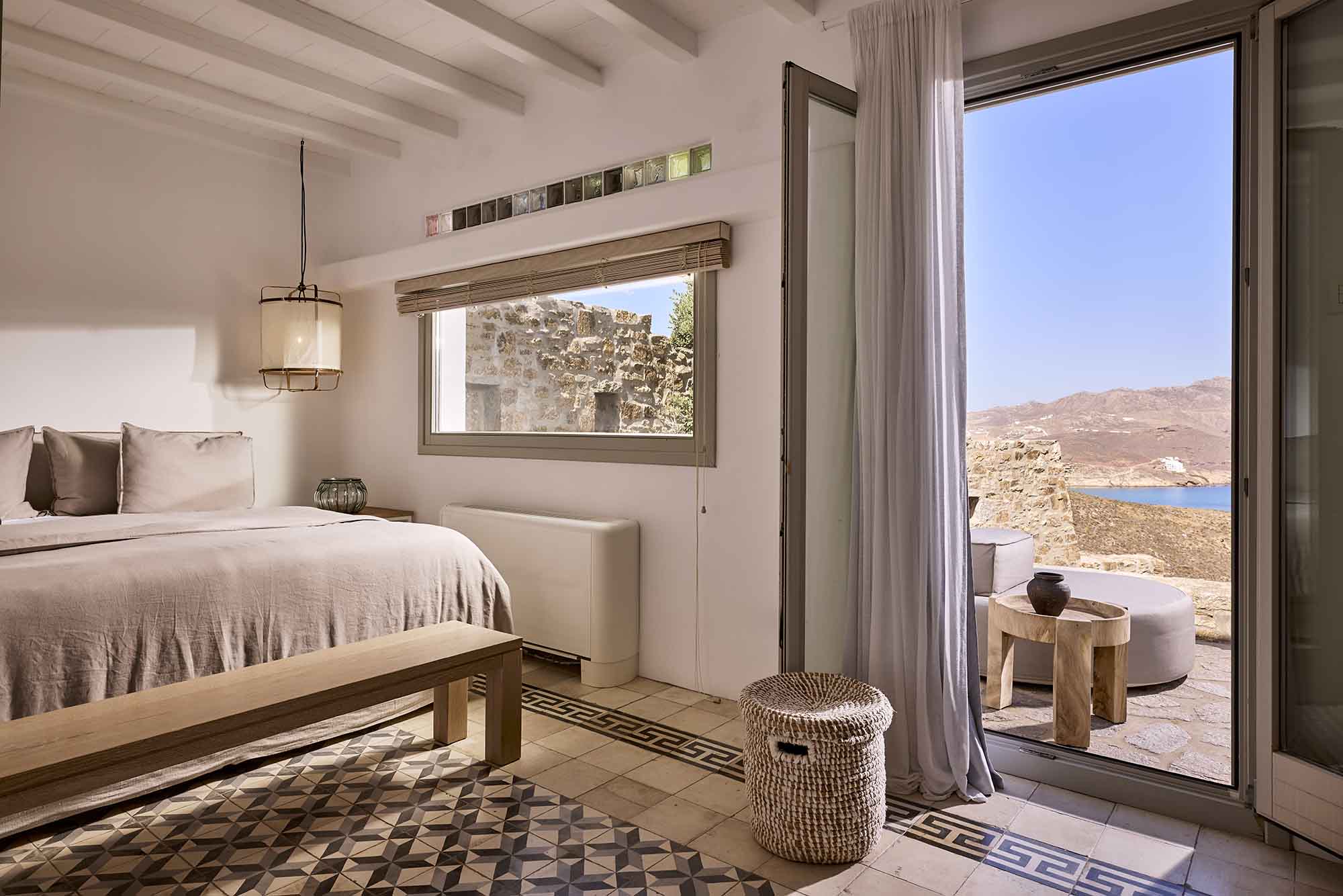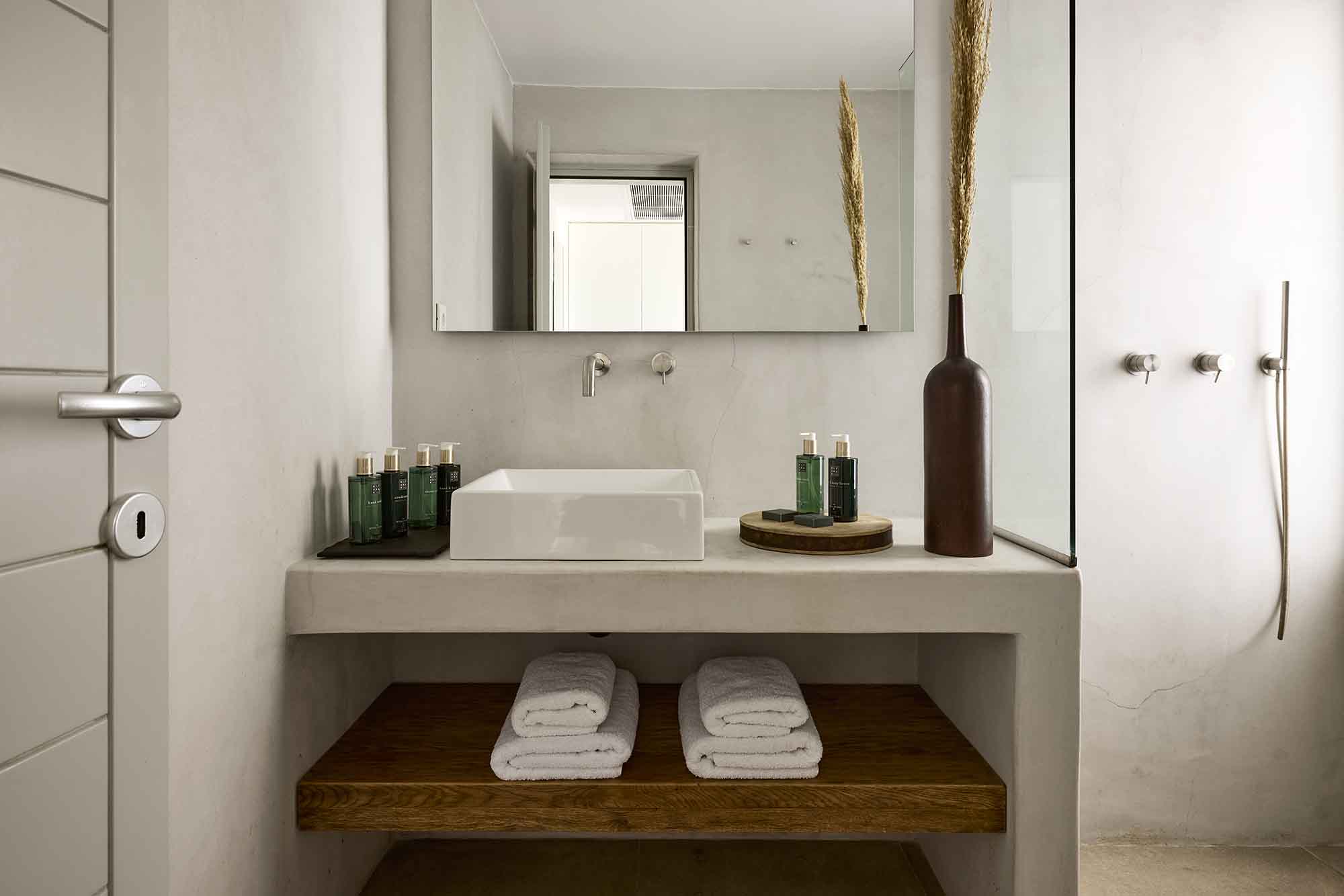 - 1 Suite/Double Bedroom, King-size bed, minimal featuring absolute tranquility, grand private terrace oriented towards the sea and the sunset with outdoor Jacuzzi and dining & relaxing area