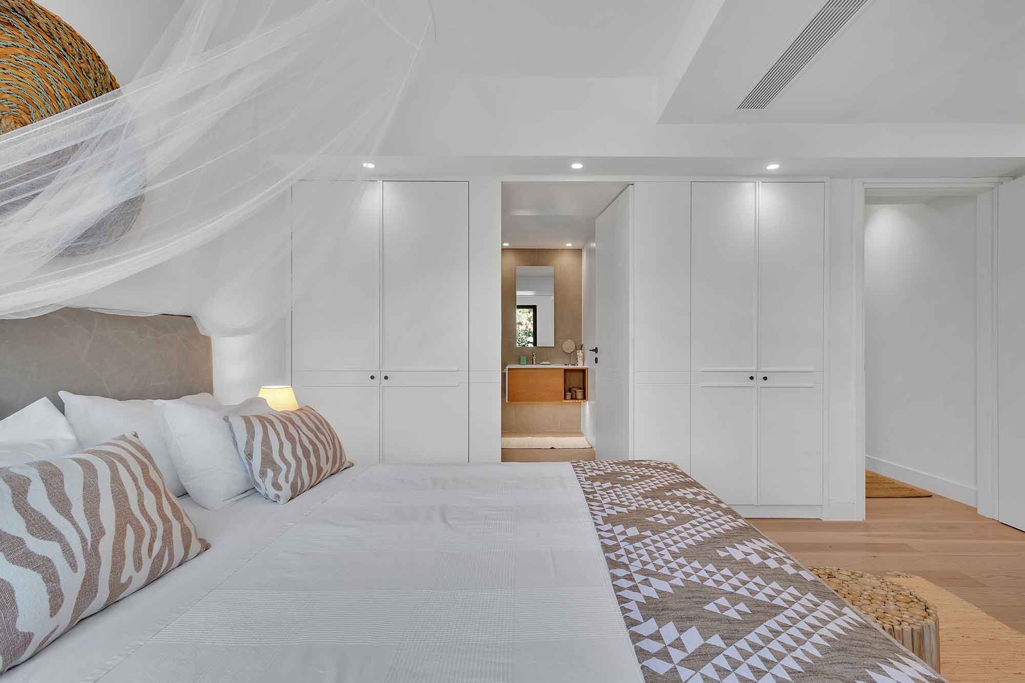 Rising to the first floor via the internal staircase, you will discover the villa’s true gem: an 80-square-meter master suite.