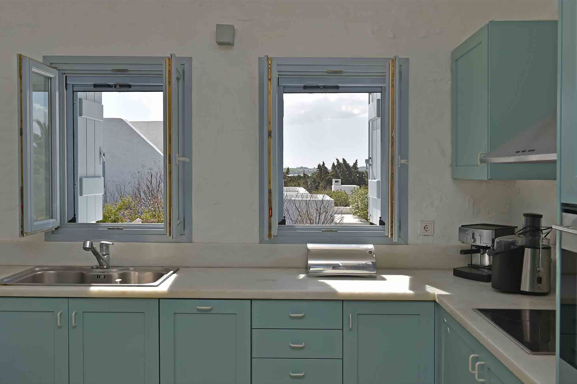 Escape to Villa Elle and enjoy the ultimate beachfront accommodation in Paros! This 4 bedroom, 4 bathroom villa offers comfortable accommodation for up to 8 guests with great amenities such as Wi-Fi, A/C and a guest WC. The ground level features 4 master bedrooms along with an open living area and a fully equipped kitchen.