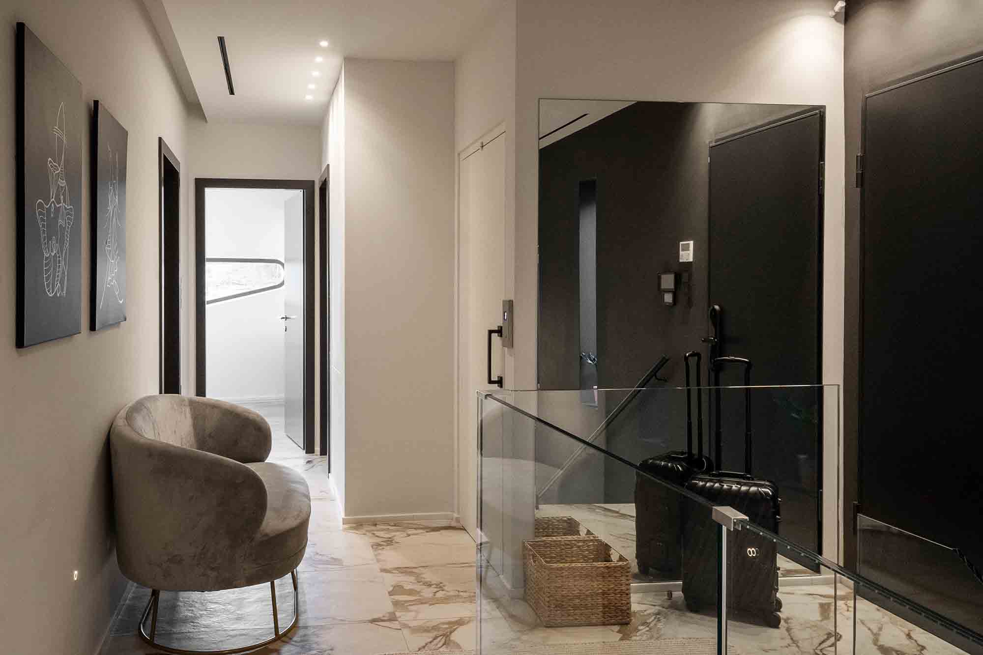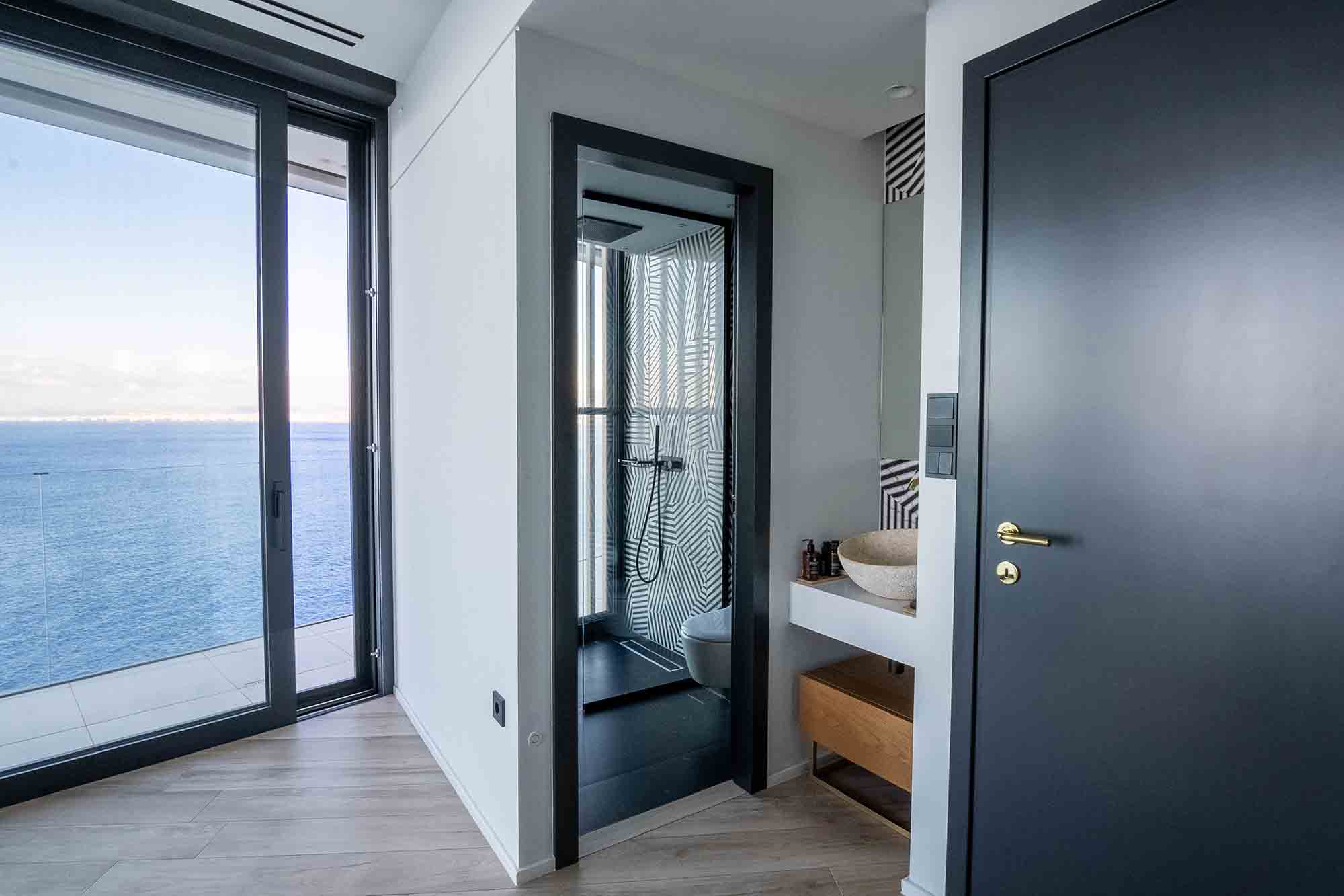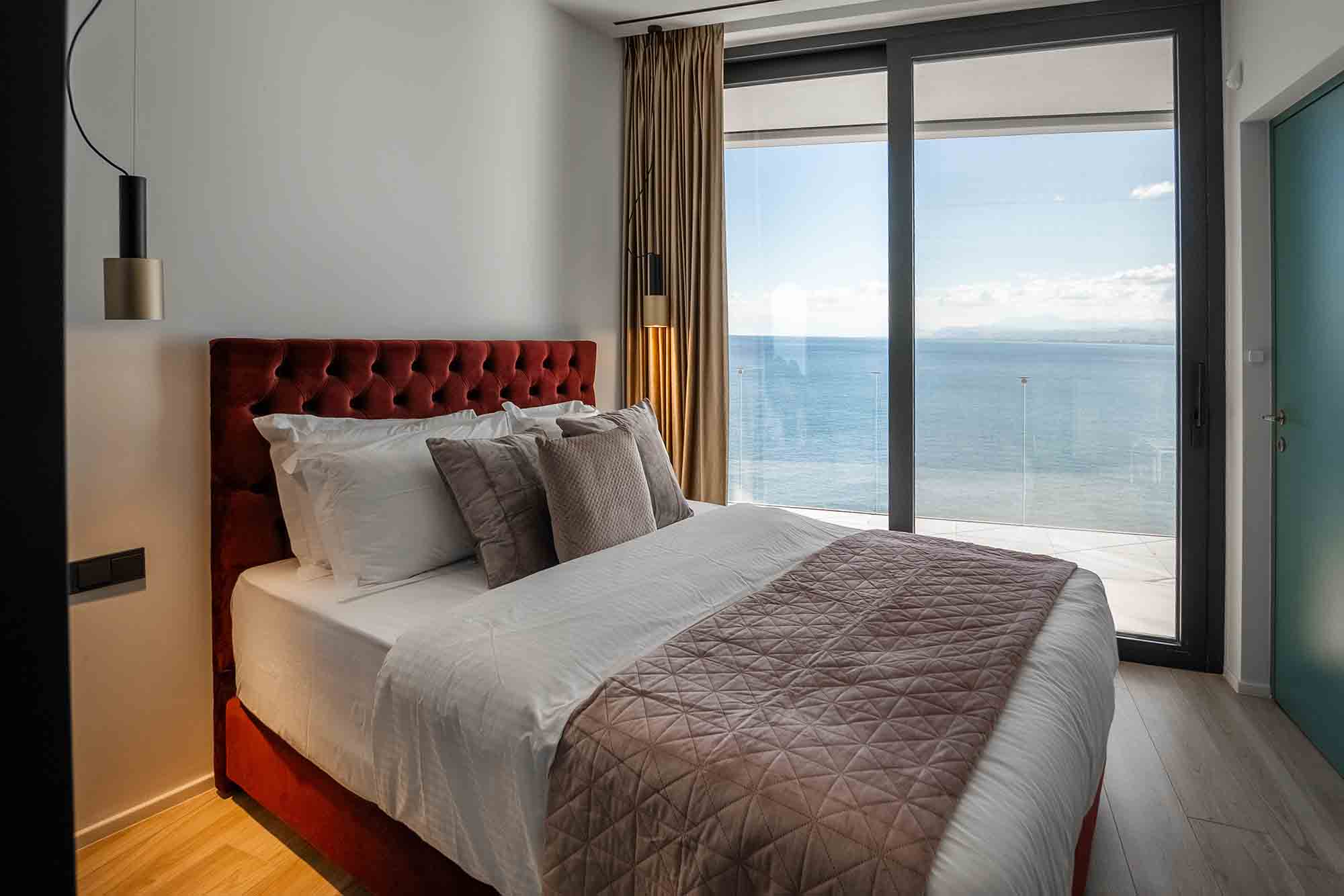 The villa boasts six elegantly designed bedrooms, comfortably accommodating up to 12 guests. The two master suites are the epitome of comfort and luxury, featuring king-size beds, private bathrooms, and large balconies with panoramic sea views. The second master suite takes luxury a notch higher with a floor-standing bathtub placed against a glass wall, offering an uninterrupted view of the sea. The other bedrooms are equally well-appointed, with double beds, private bathrooms, and captivating views of the garden or the sea. An additional brand-new bedroom and two extra shower-equipped bathrooms on the top and ground floor ensure ample space for everyone.