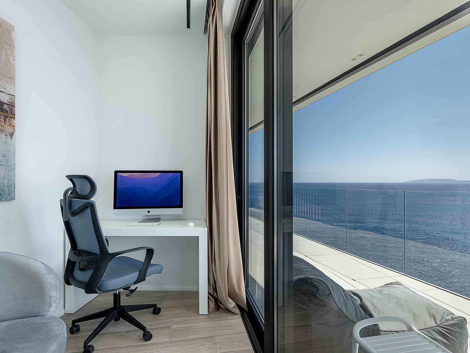 Functionality meets luxury in this splendid villa, with a dedicated office space, equipped with a high-performance MAC, ensuring you stay connected even on vacation. The villa's prime location is just a five-minute drive from the turquoise waters of the nearby beaches and some of the area's finest restaurants and bars, giving you a myriad of options to enjoy your holidays.
