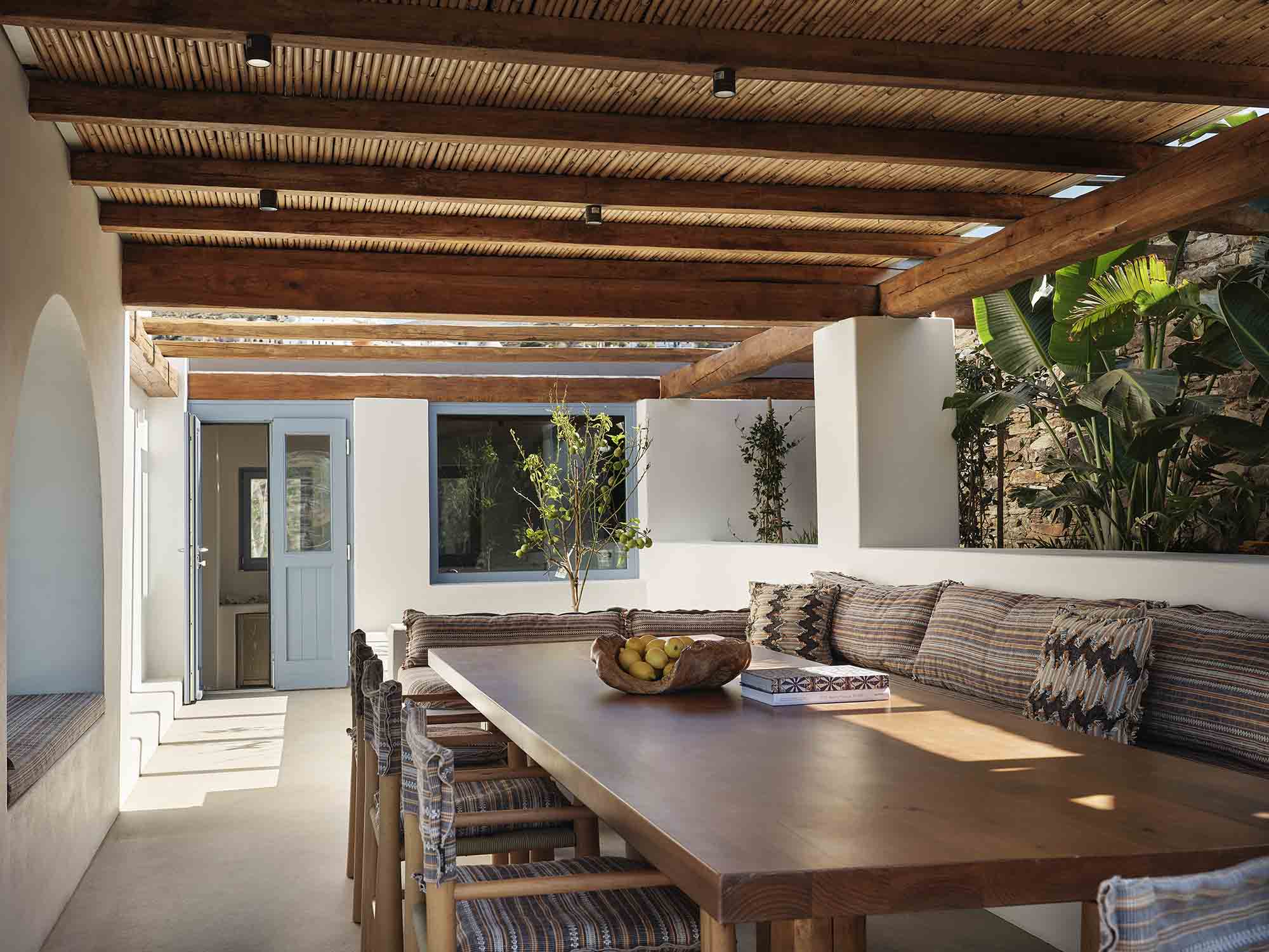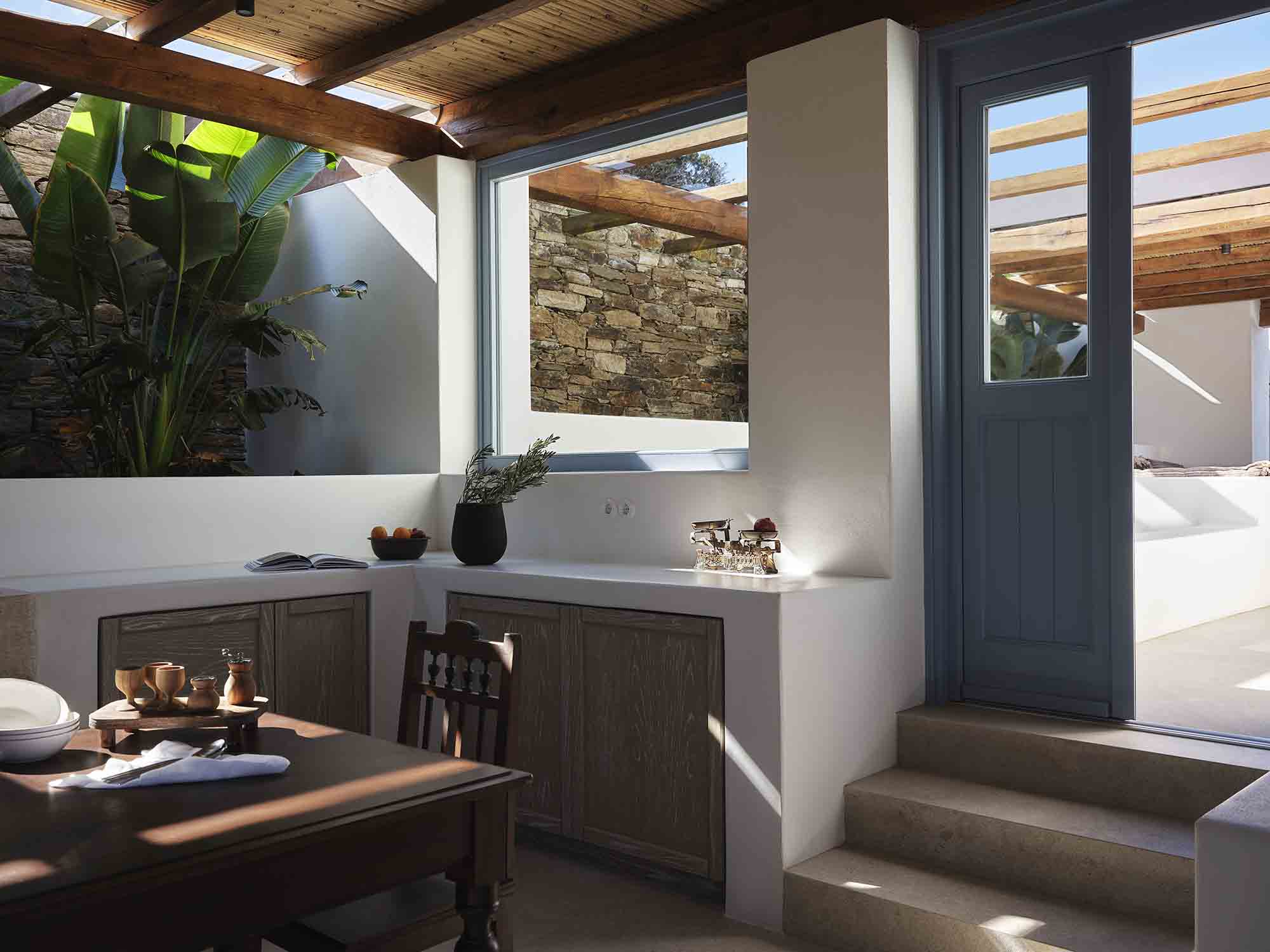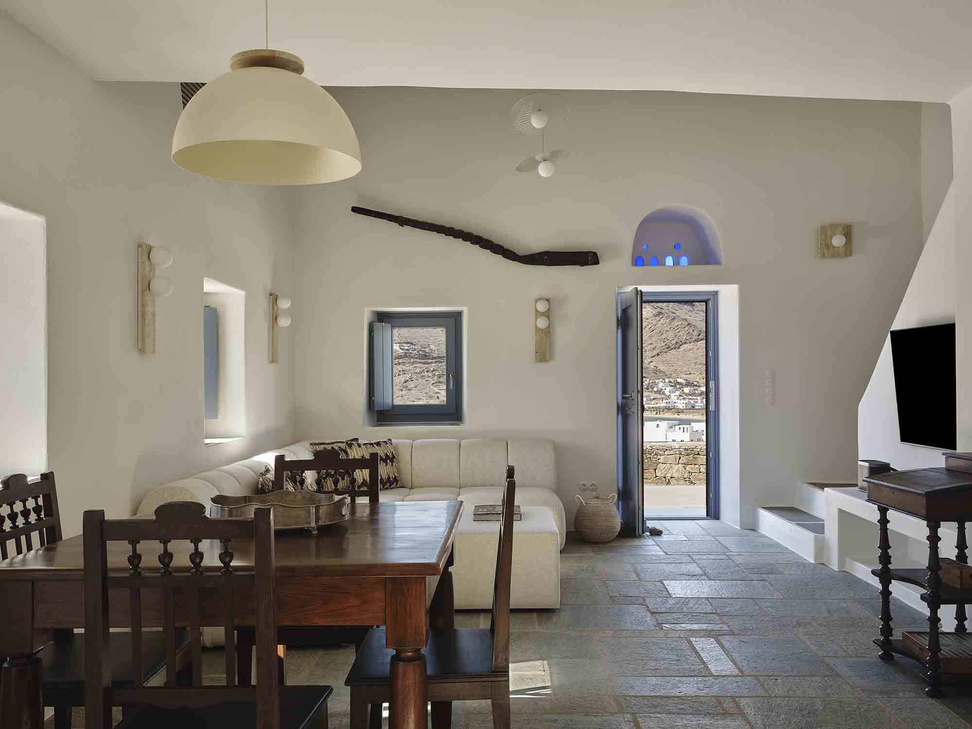 Villa Eutropia is a 1960s Cycladic home, restored with respect as a four-bedroom residence, accommodating up to 8 adults and 2 children, making it ideal for families or multi-generational stays. The experience includes daily breakfast, arrival and departure transfers.