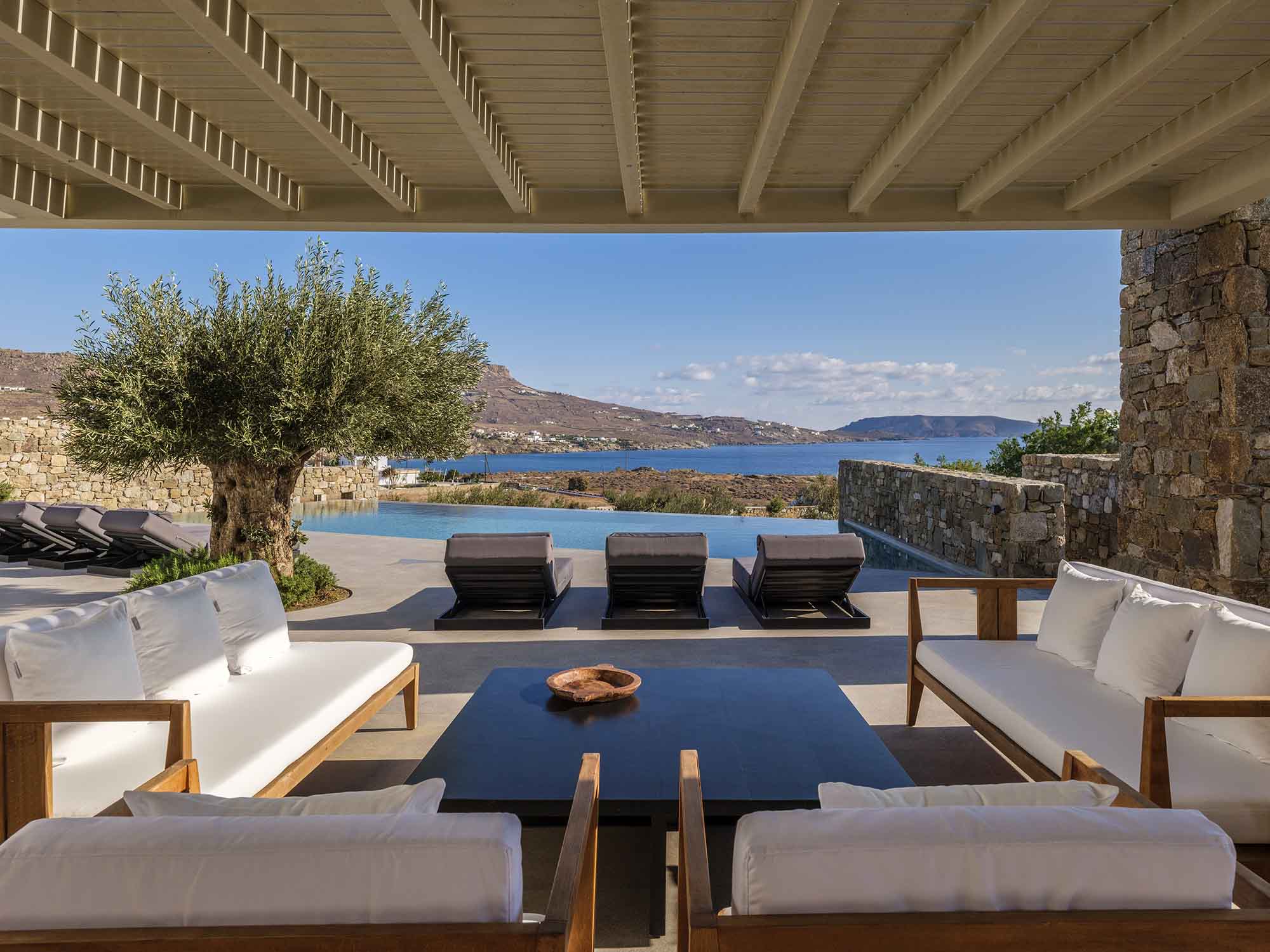 Experience the best of Mykonos with a stay in Villa Fania! This 7 bedroom / 9 bathroom private luxury villa is located just 50m away from the beach with panoramic views of Kalafatis bay and Stapodi island.