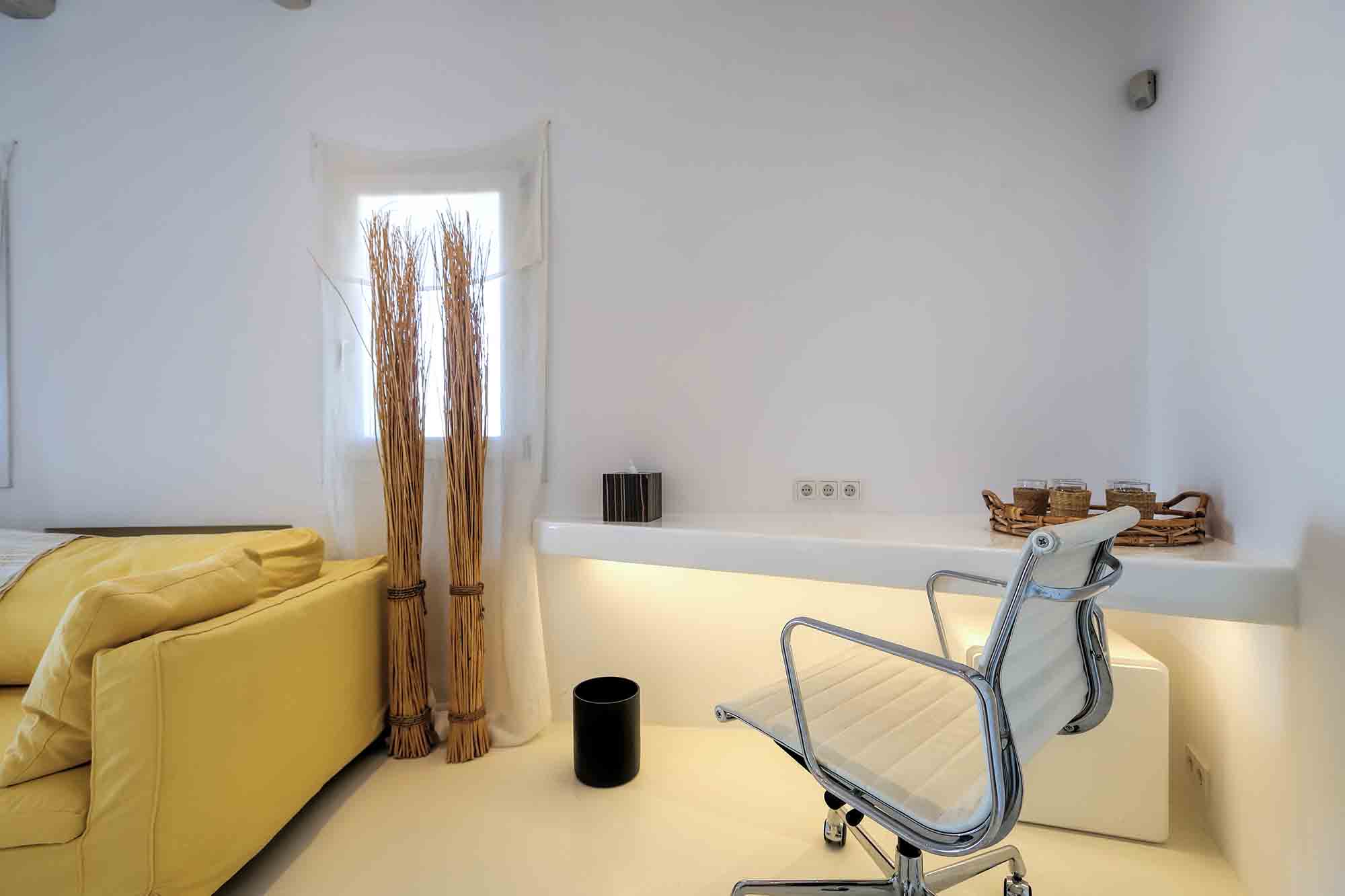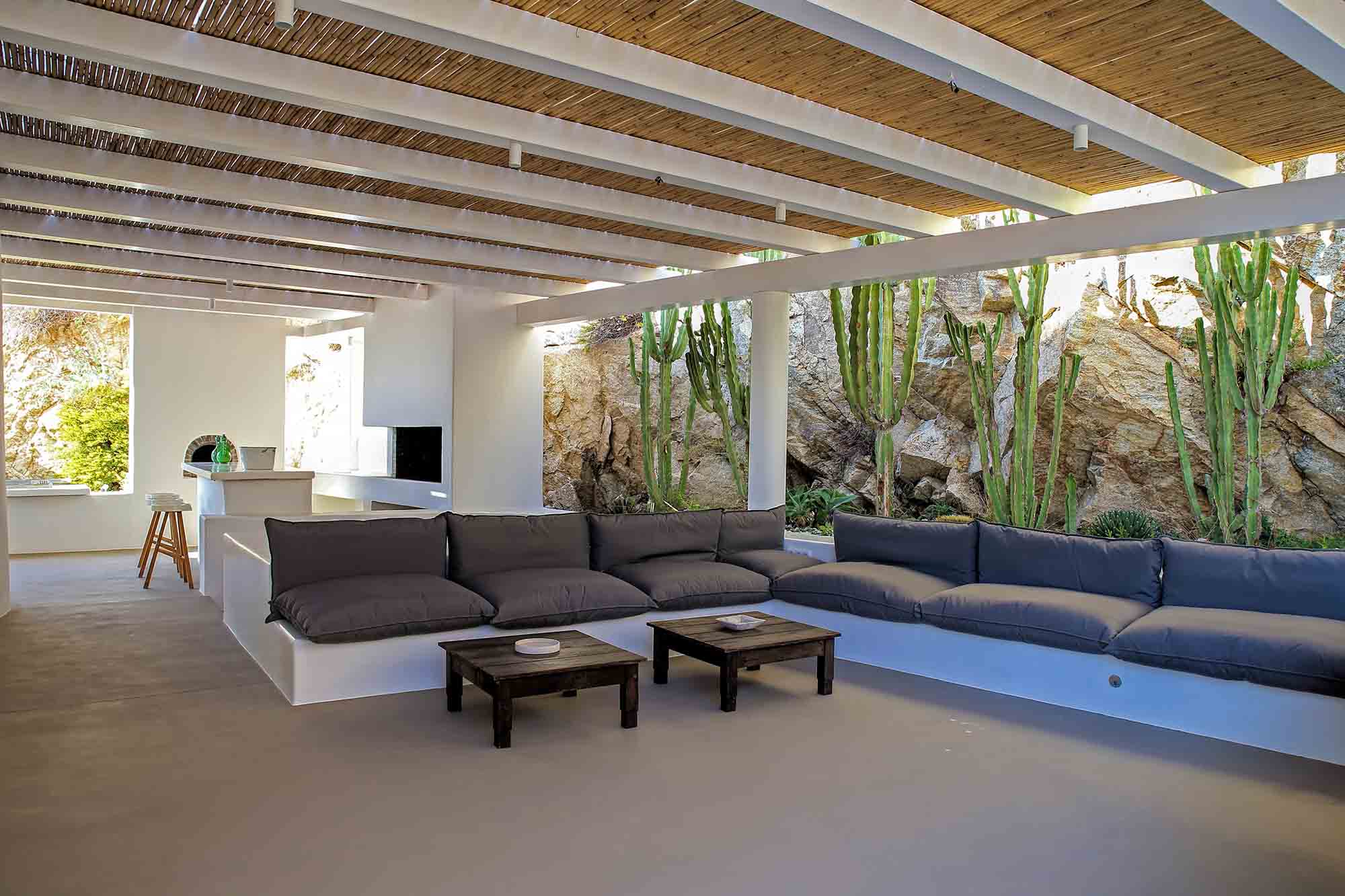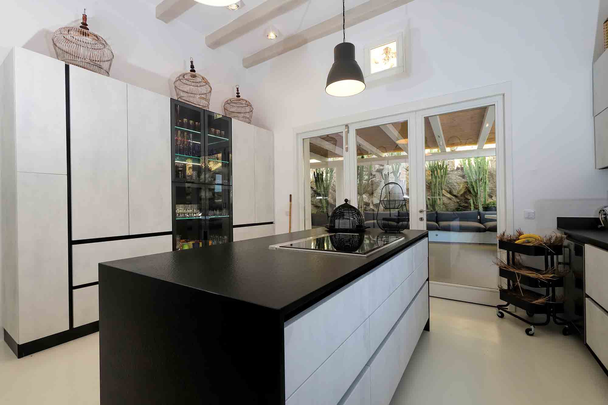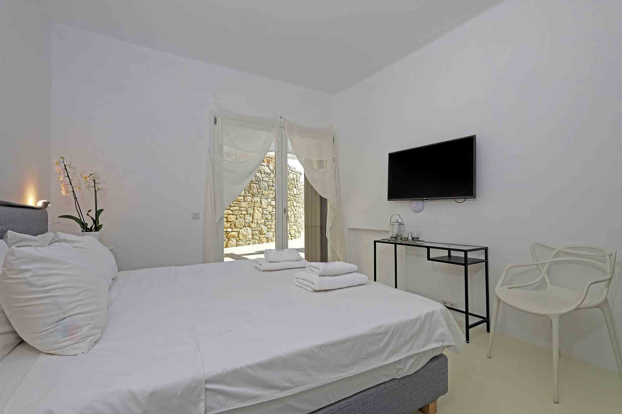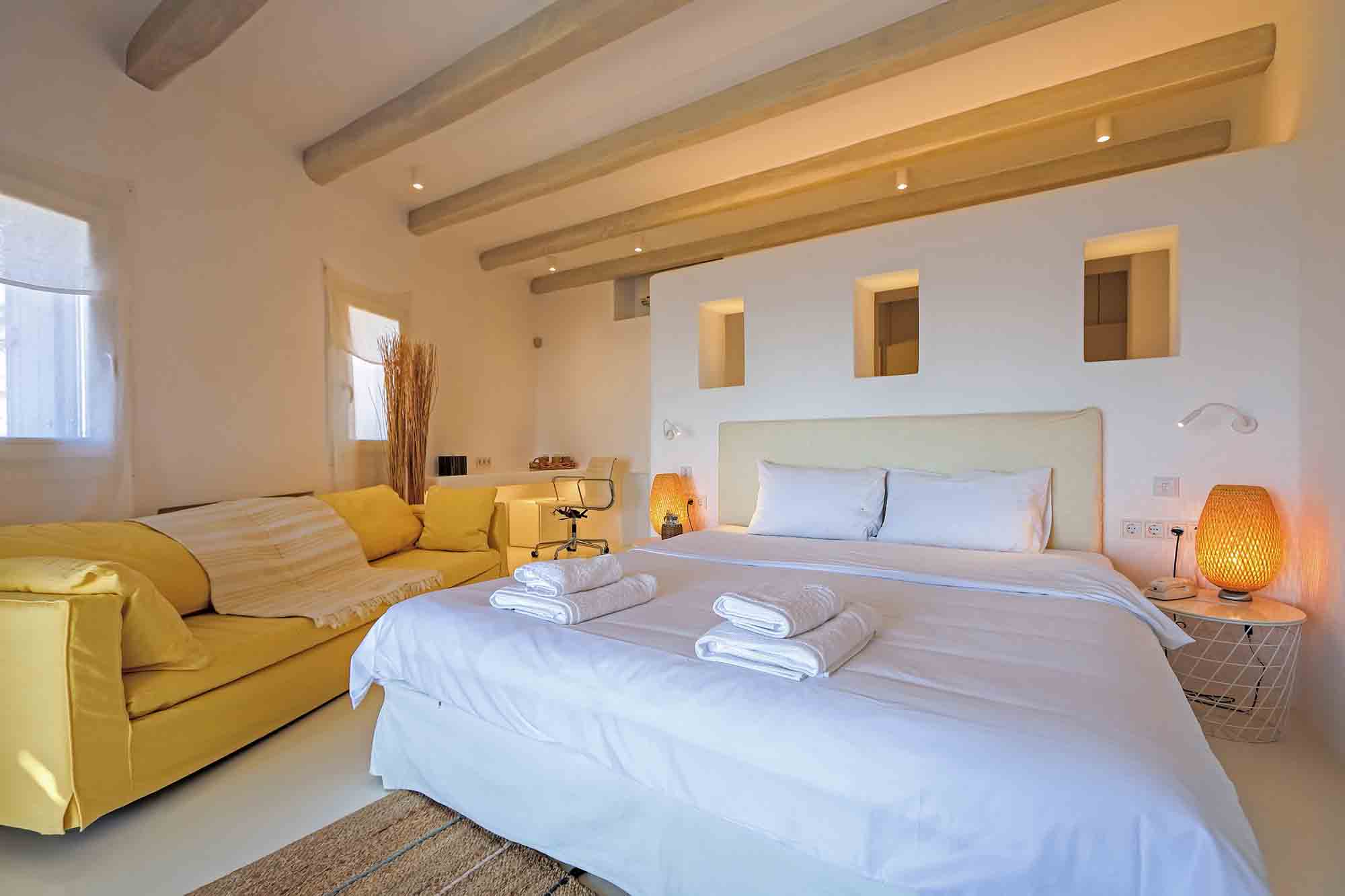 Villa Ifikleia stands out for its design, the quality of materials, and the unique blend of bohemian and contemporary styling. Sophisticated fabrics and furniture elevate the expressions of white while black touches and colorful artifacts playfully create a warm ambiance and lifestyle. The ensuite bedrooms unfold in various levels, all offering space, natural light, and impeccable comfort. The lounge and dining areas are styled to invite gatherings and relaxation, while the state-of-the-art kitchen offers the playground for food manifestations!