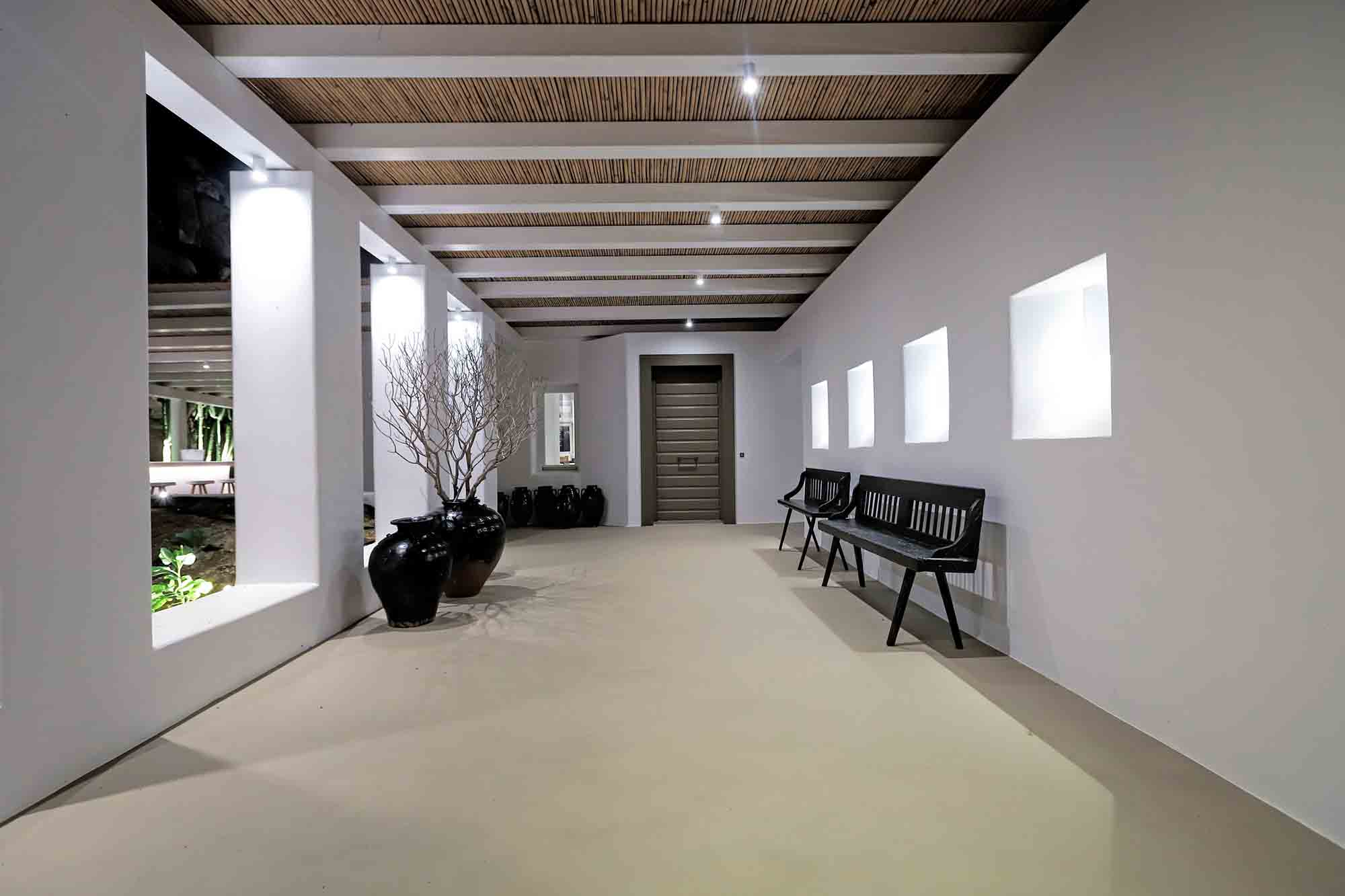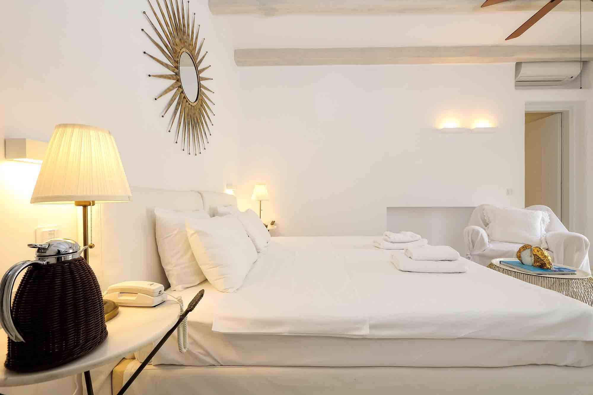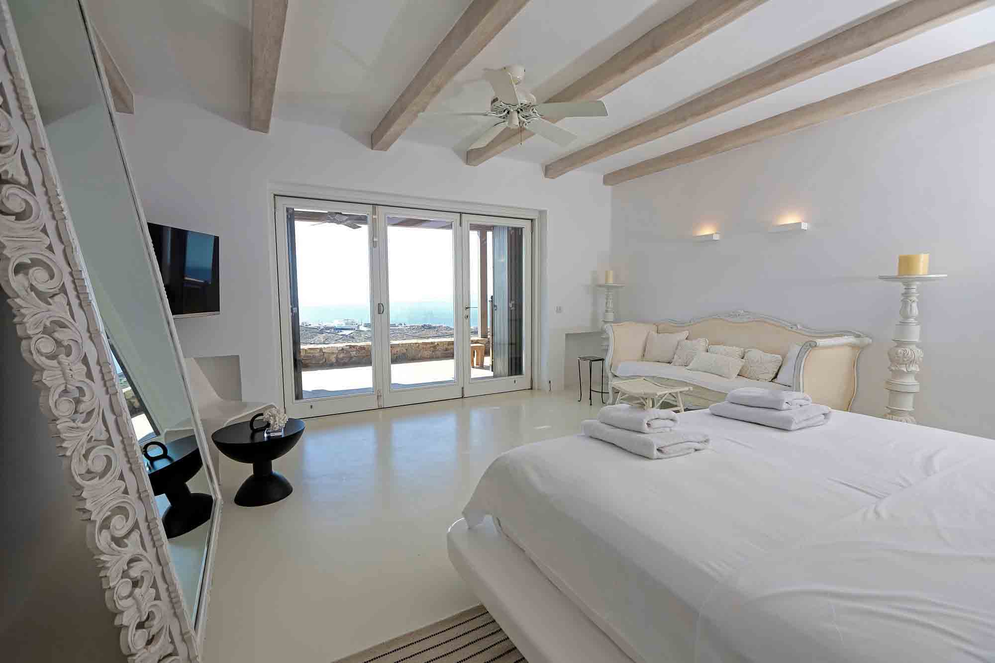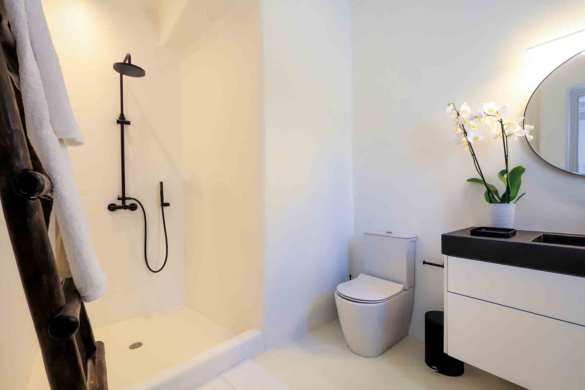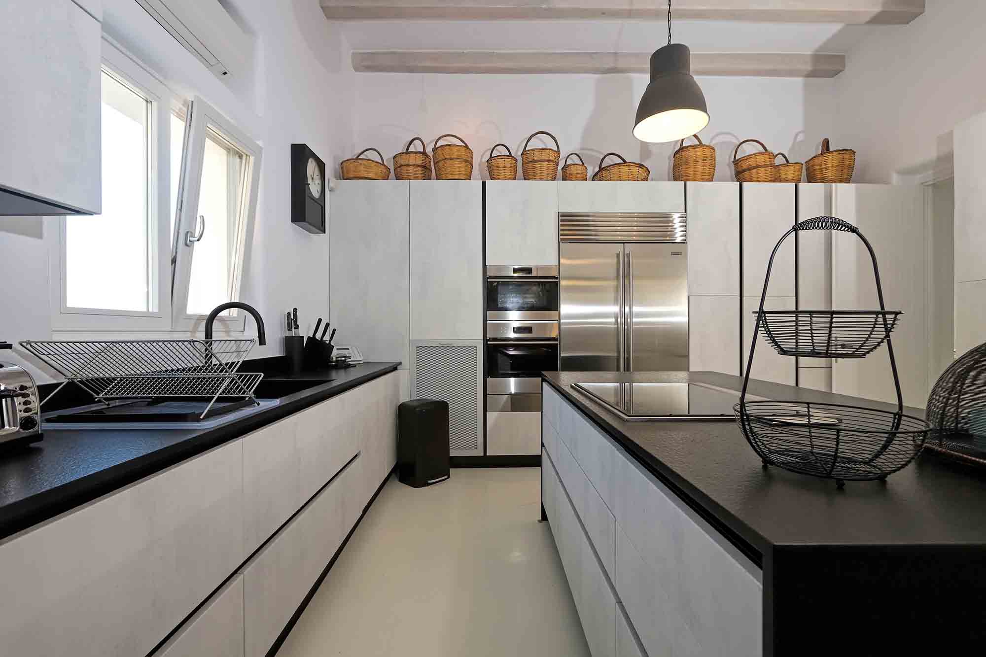 Villa Ifikleia stands out for its design, the quality of materials, and the unique blend of bohemian and contemporary styling. Sophisticated fabrics and furniture elevate the expressions of white while black touches and colorful artifacts playfully create a warm ambiance and lifestyle. The ensuite bedrooms unfold in various levels, all offering space, natural light, and impeccable comfort. The lounge and dining areas are styled to invite gatherings and relaxation, while the state-of-the-art kitchen offers the playground for food manifestations!