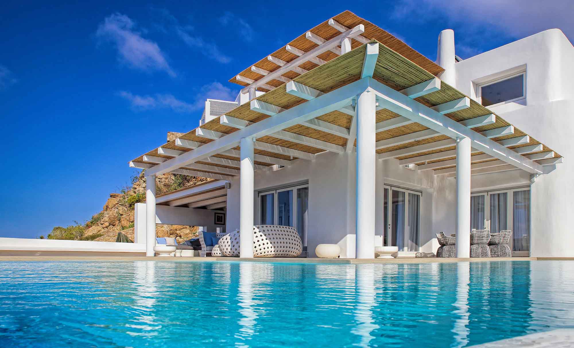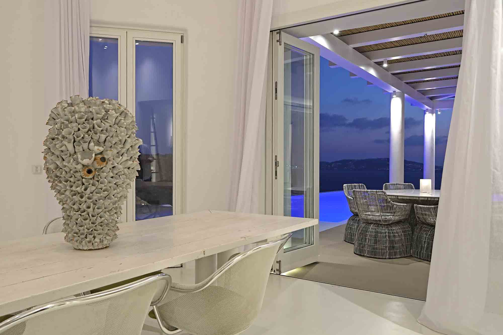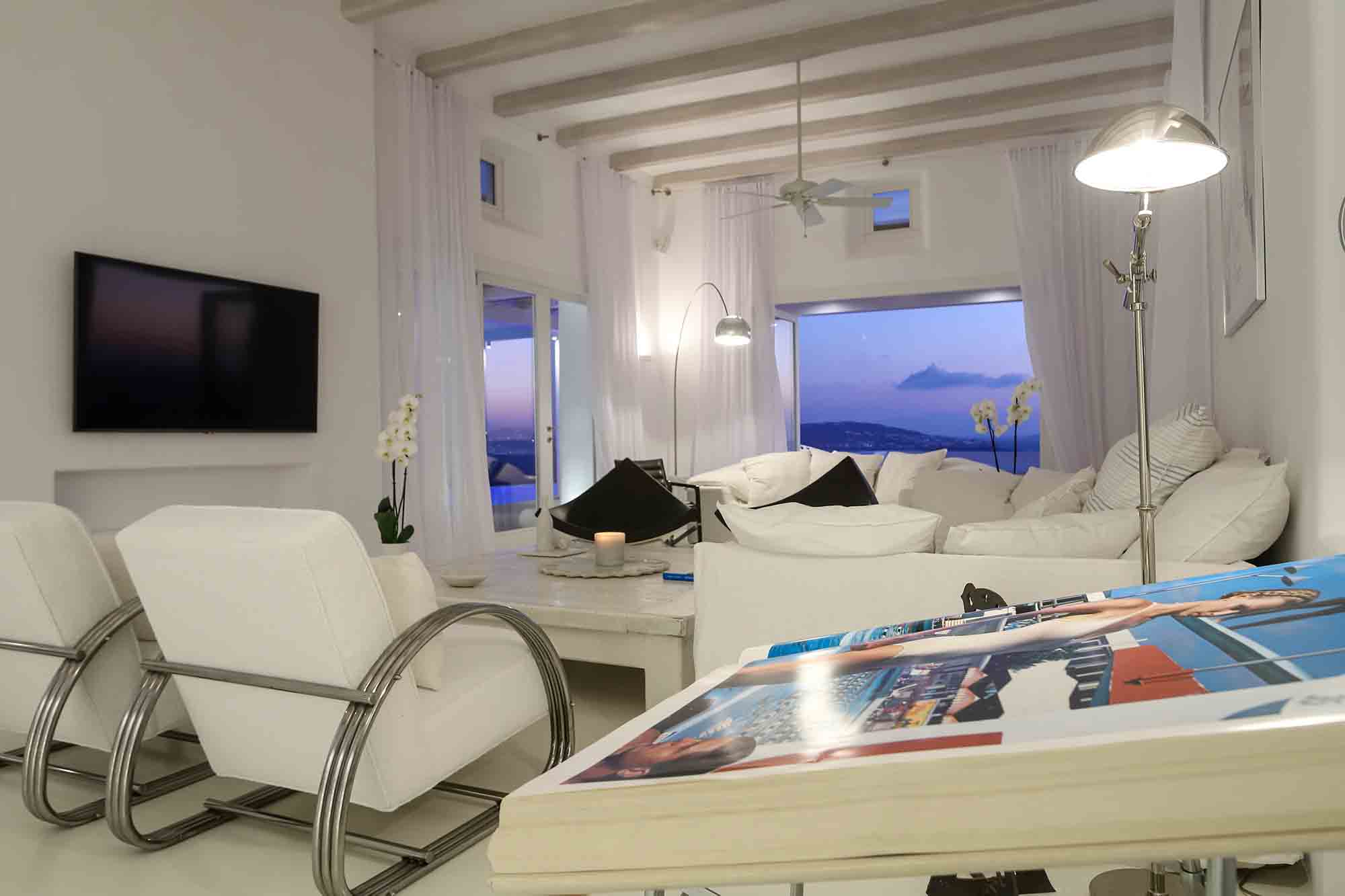 This newly developed contemporary villa is located in a privileged hilltop position on the island of Mykonos, celebrating exceptional views and ambiance. Mastering the local aesthetics while enhancing modern lines this luxurious property invites families and a group of friends to immerse in the cosmopolitan jet-setting lifestyle of the island.