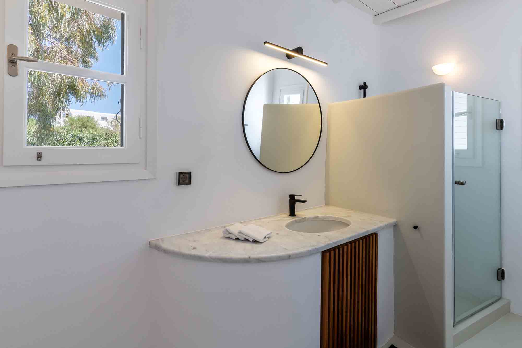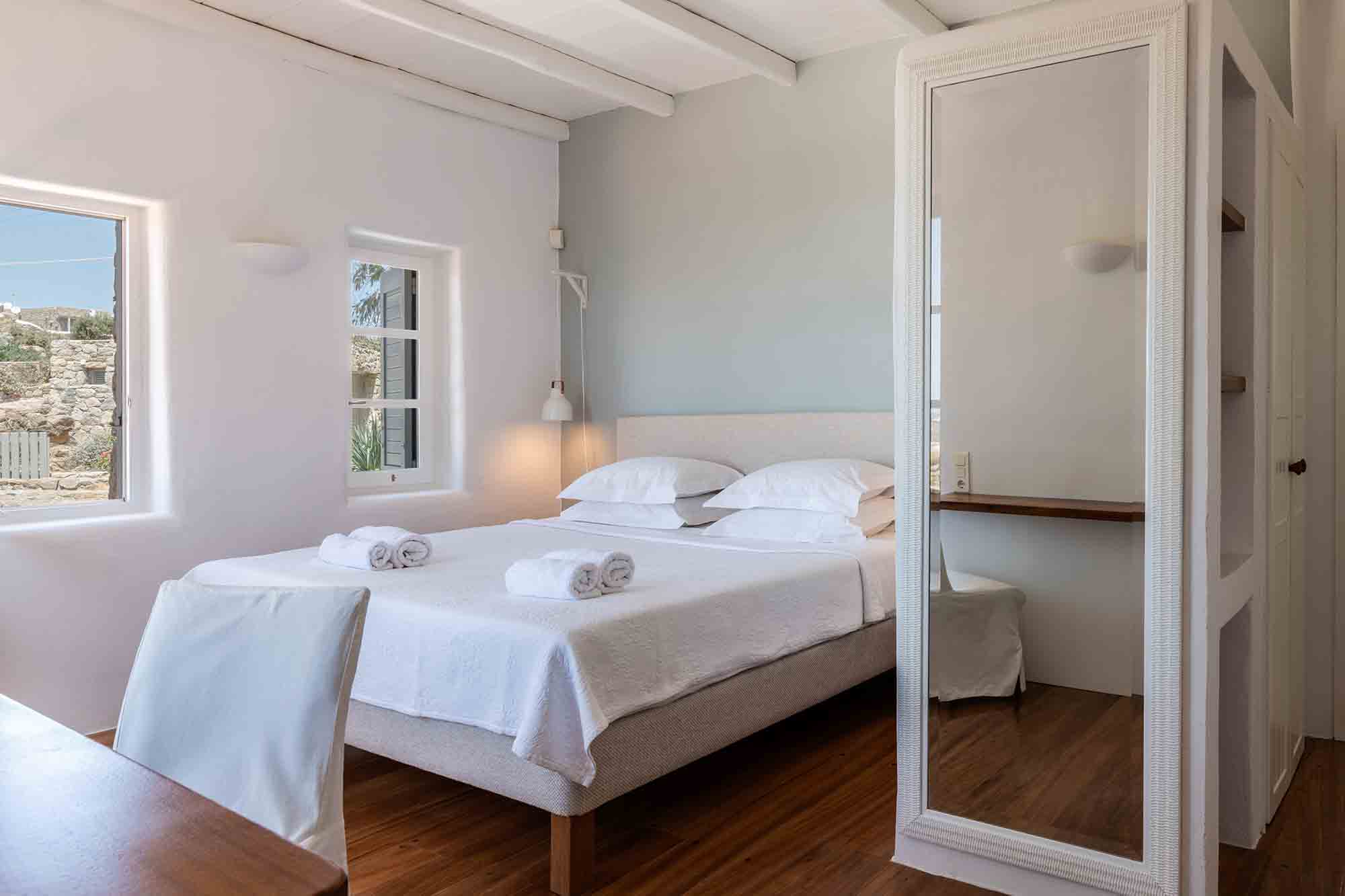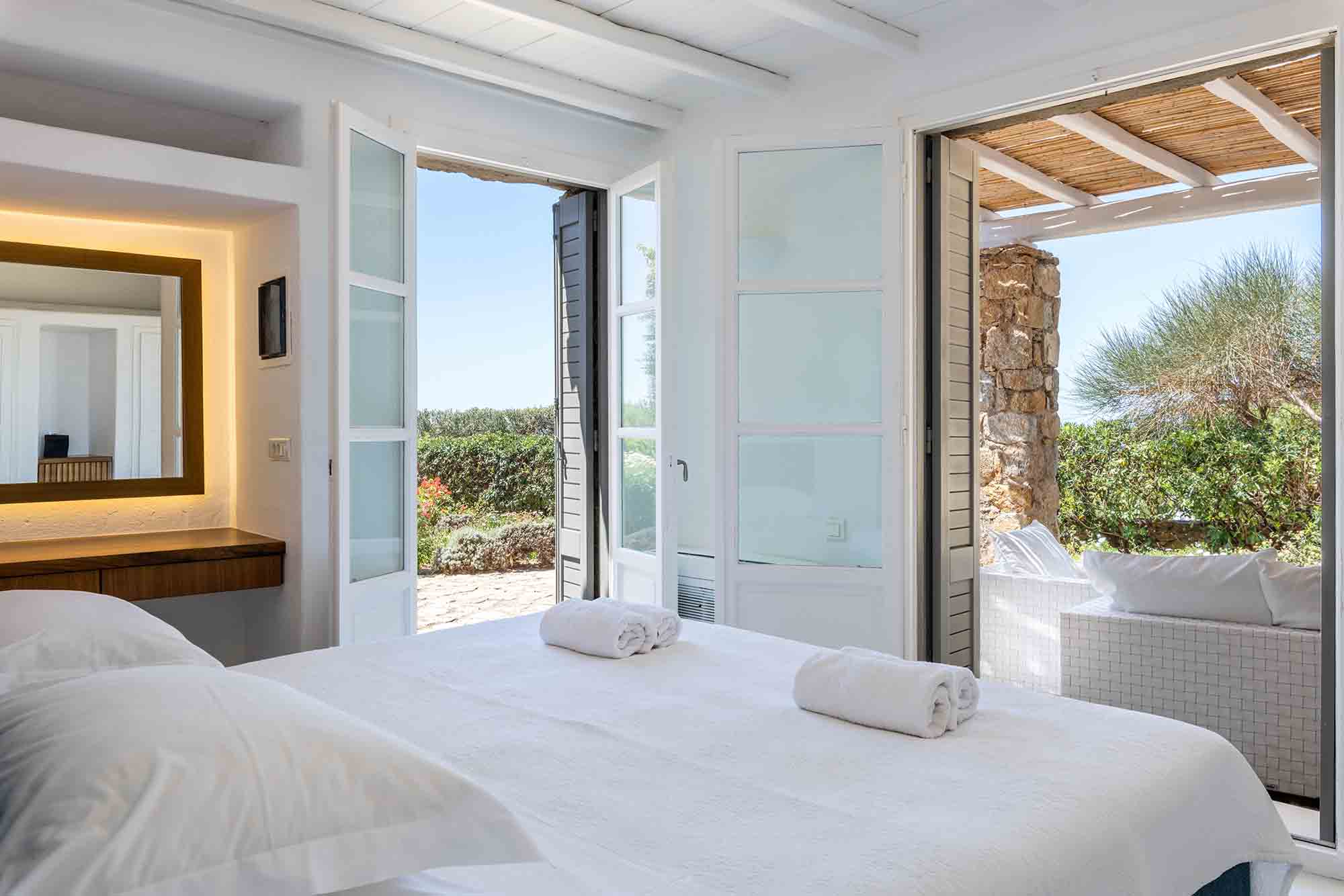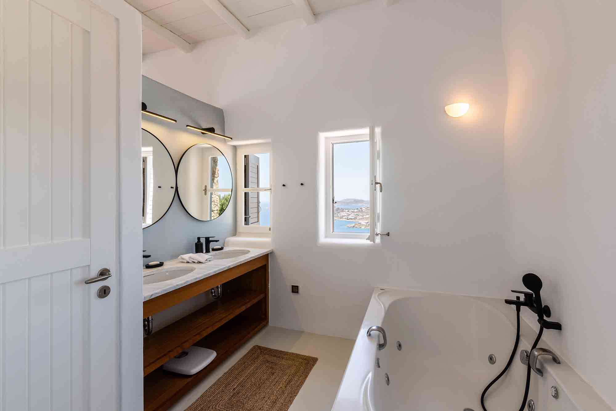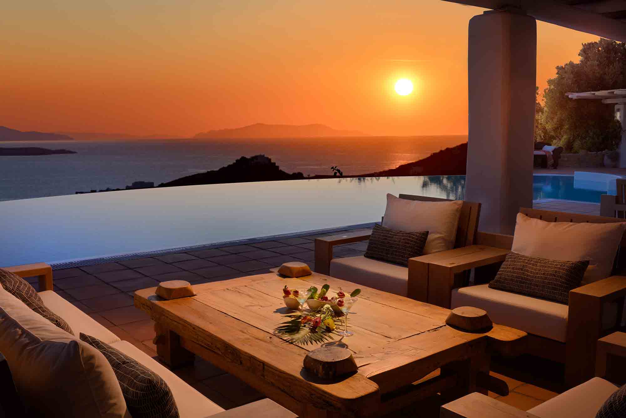 Truly breathtaking views of the blue surroundings of Mykonos transform Villa Ilios into a large and bright window to the Aegean.