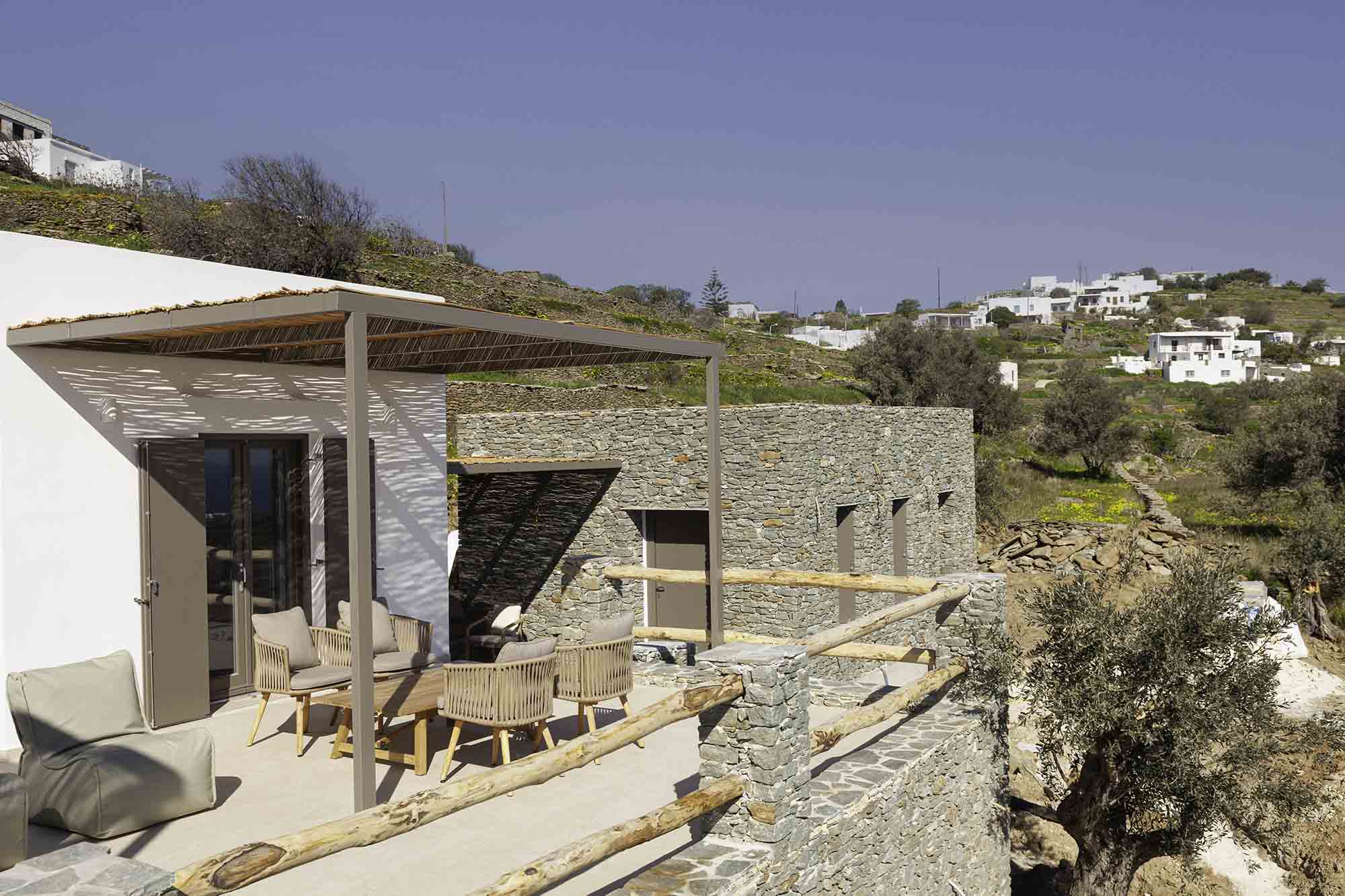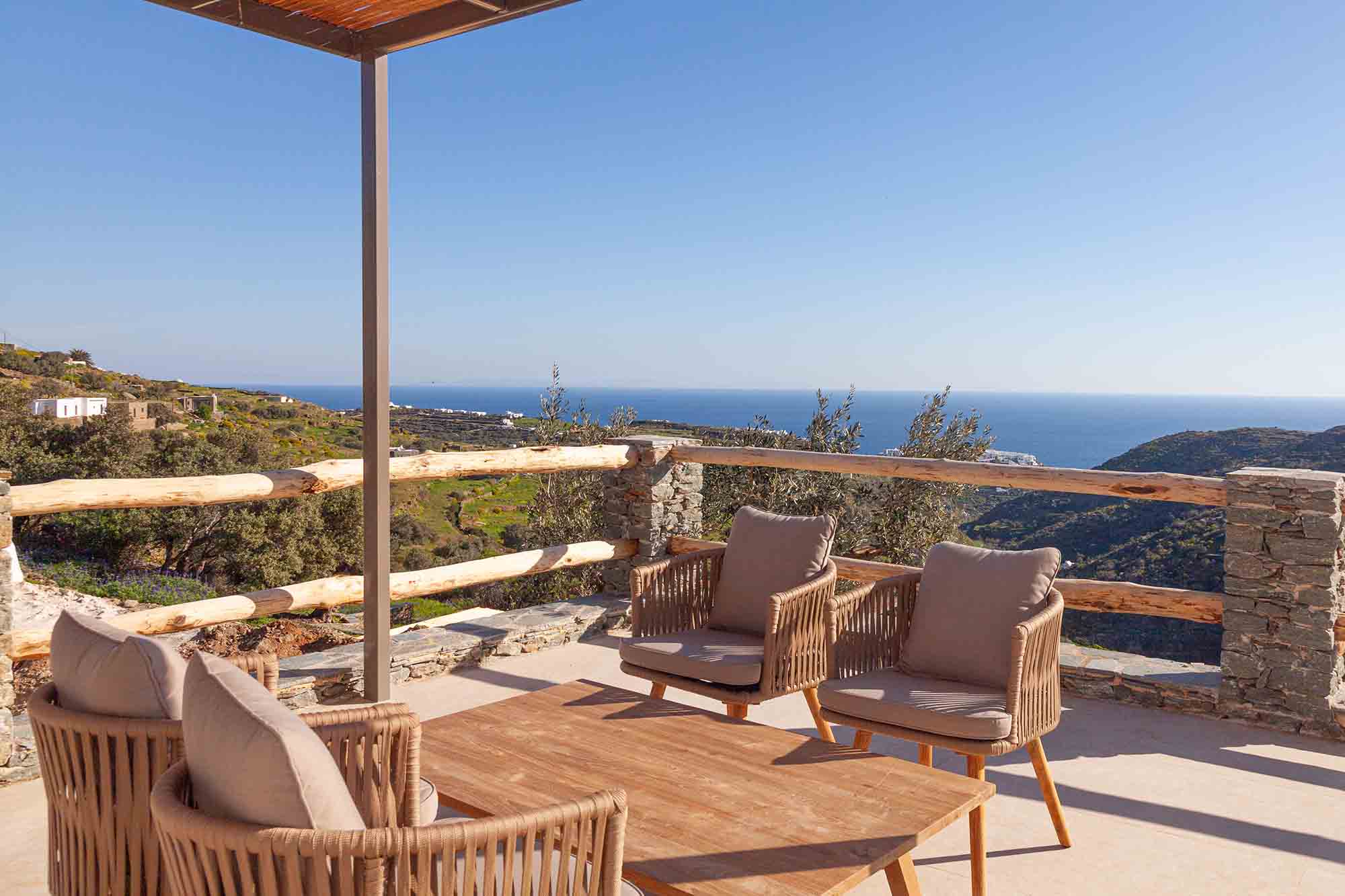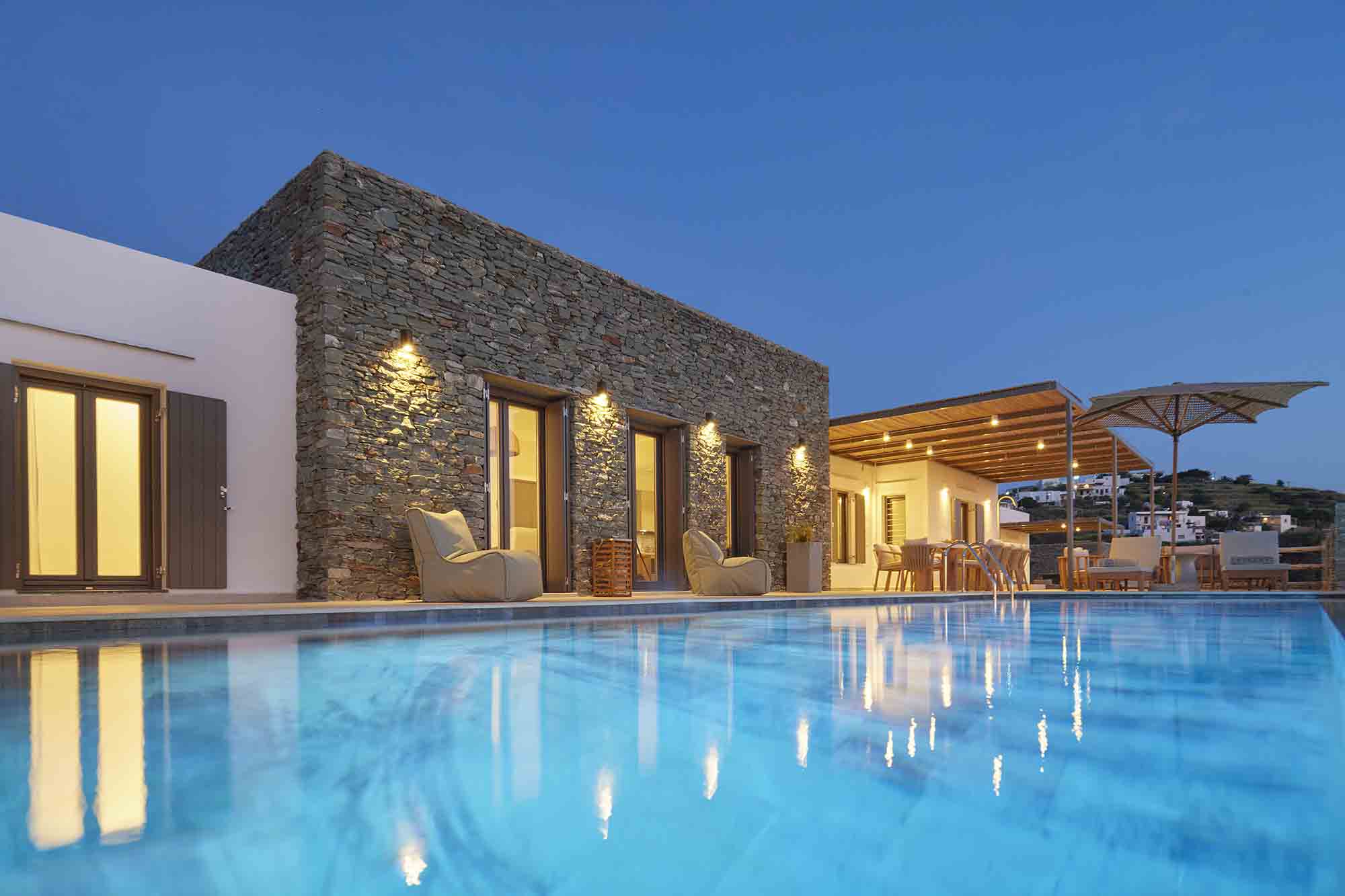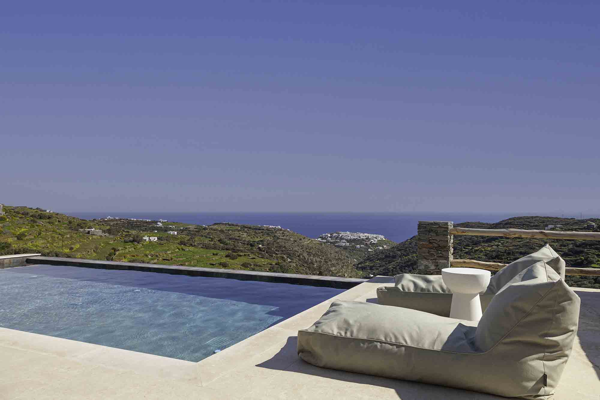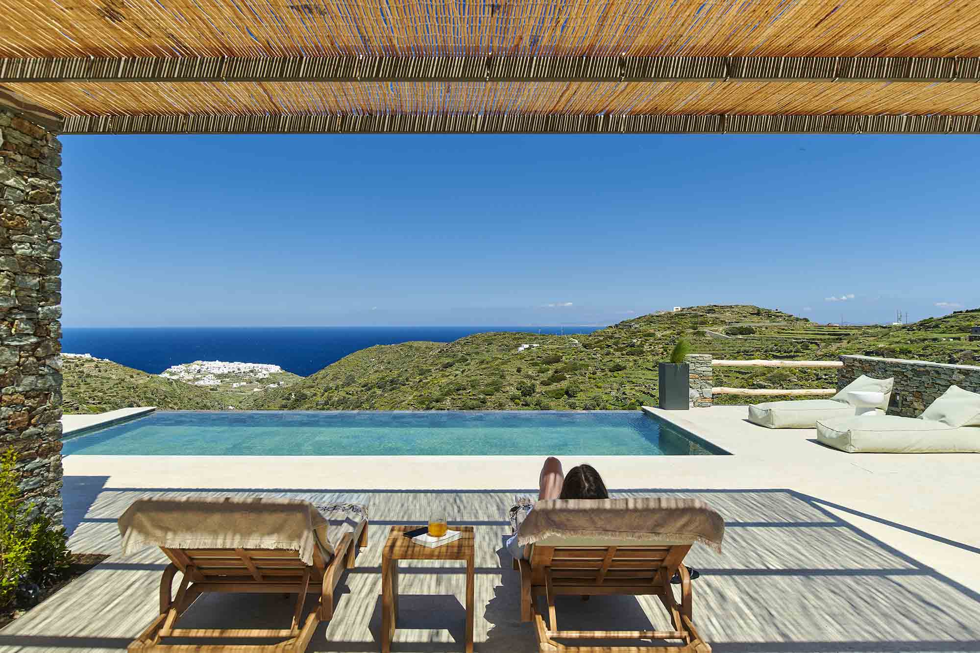 This six-bedroom estate, set among ancient olive trees and Cycladic landscape, features two infinity pools and panoramic views of Kastro and the Aegean Sea. Villa Ivonne can be rented either as a whole, a 6-bedroom residence, or separately as three, fully equipped and fully private residences, a 4-bedroom one, a 3-bedroom one or a 2-bedroom one.