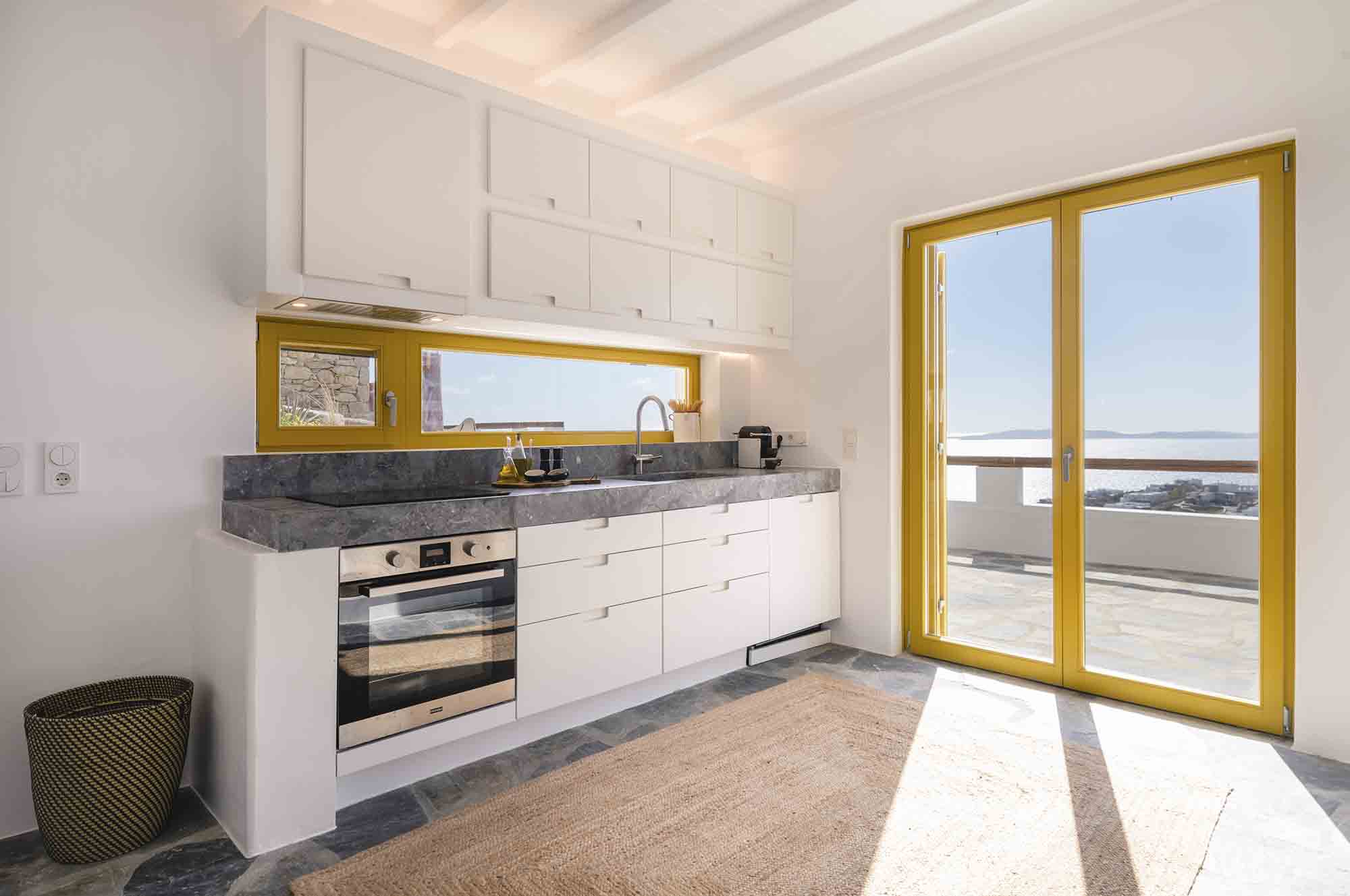 - Living room with sea view, open plan fully equipped kitchen with access to the outdoor built-in dining table (10 pax)