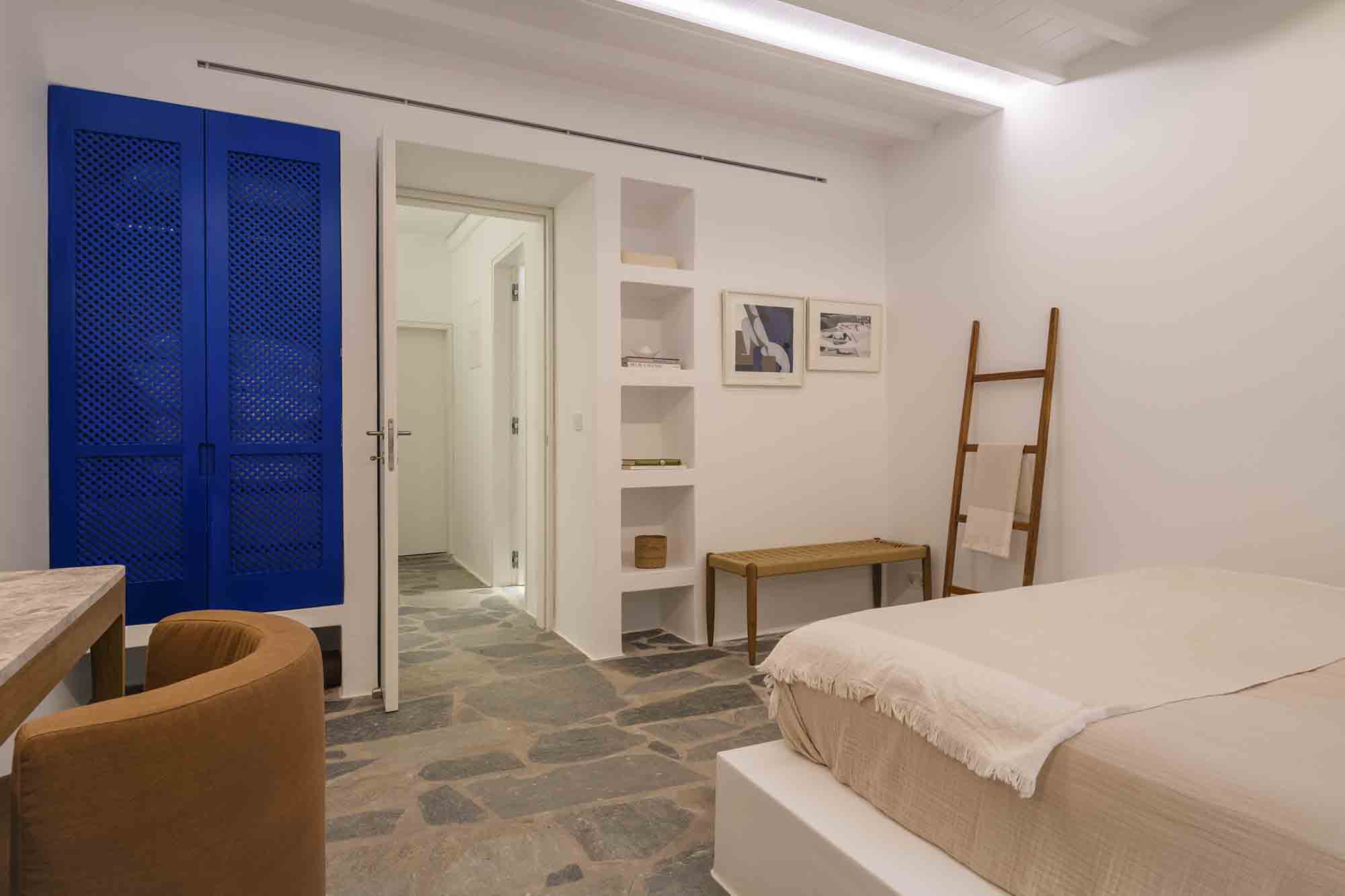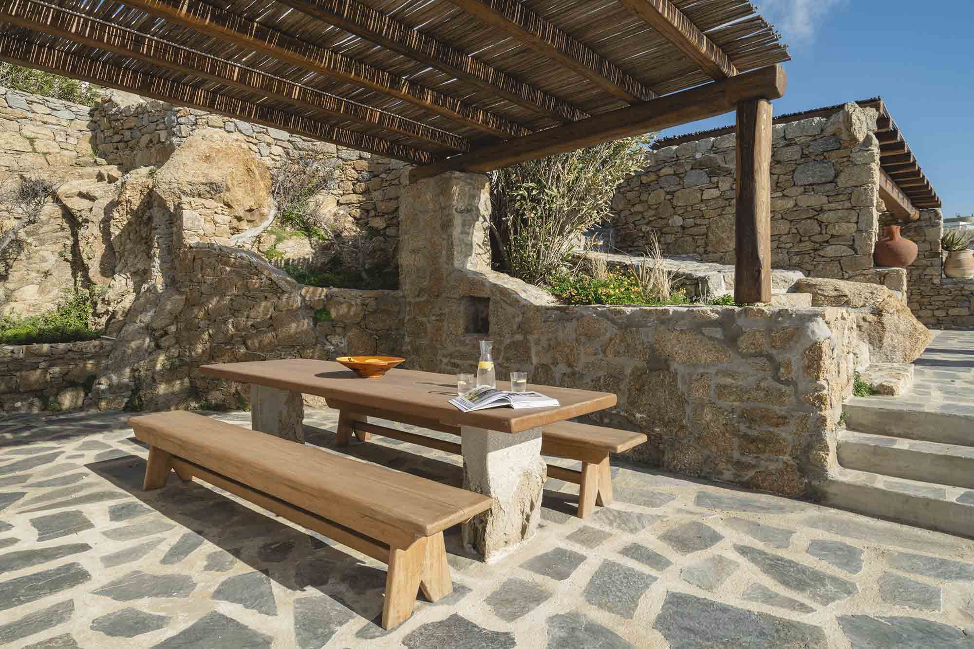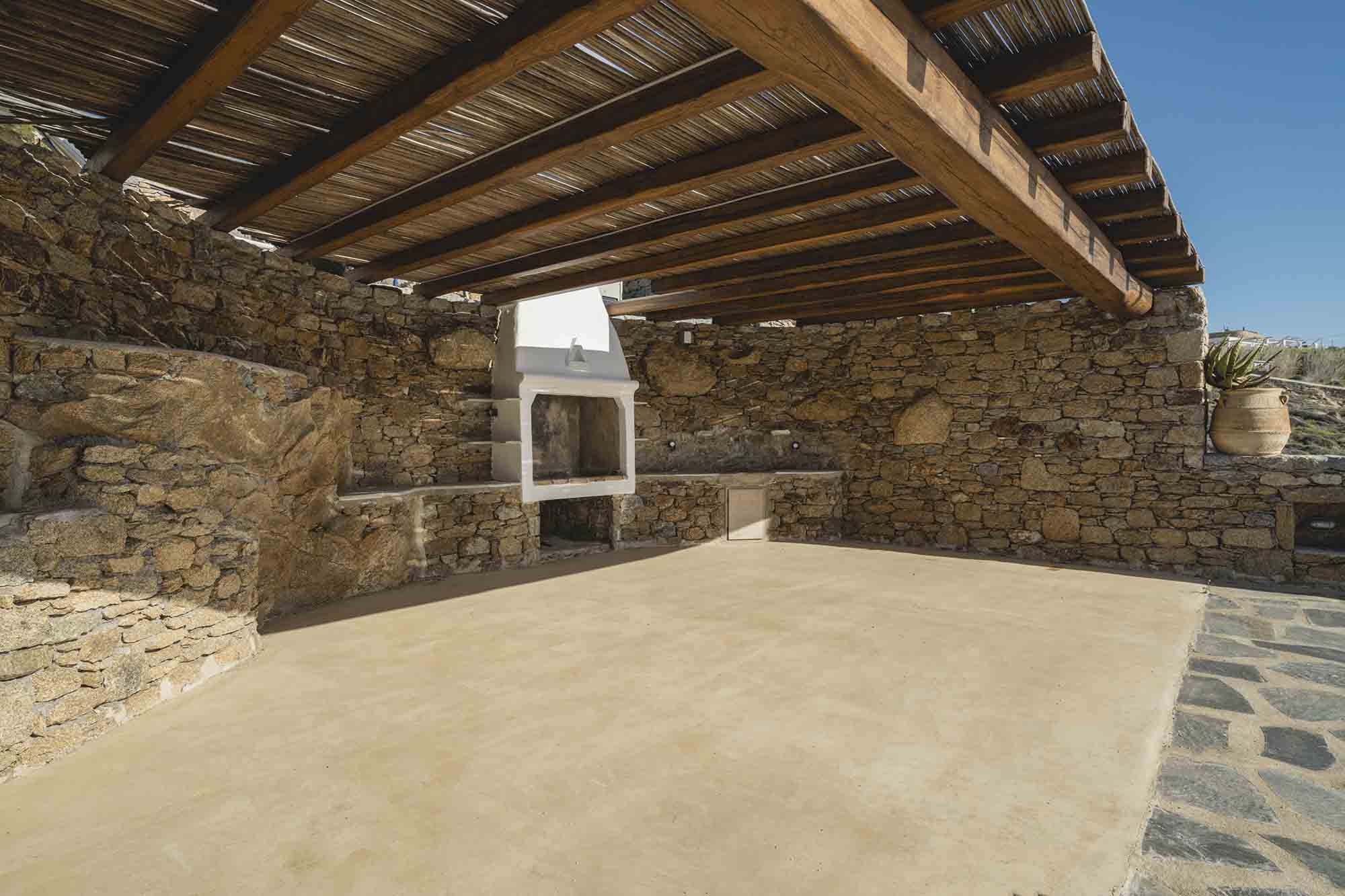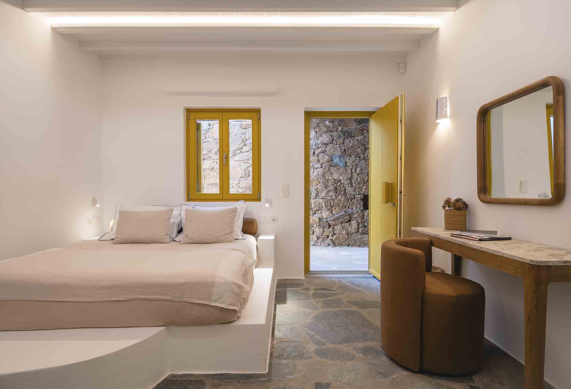 The property combines refined Cycladic architecture with modern design elements, featuring carefully curated interiors and high-end finishes throughout. Inside, the villa showcases bright, airy interiors where contemporary style meets traditional Mykonian elements. Natural stone details are thoughtfully incorporated, helping maintain a cool, serene atmosphere while enhancing the connection to the island’s natural beauty.
