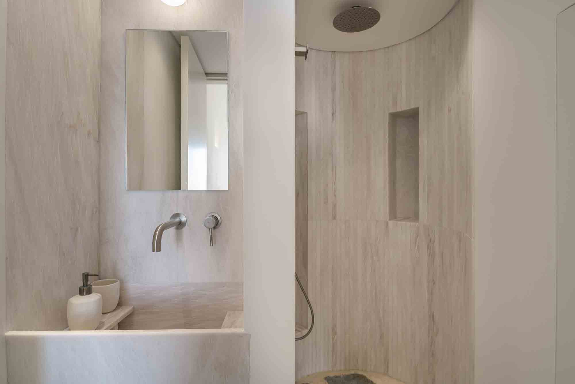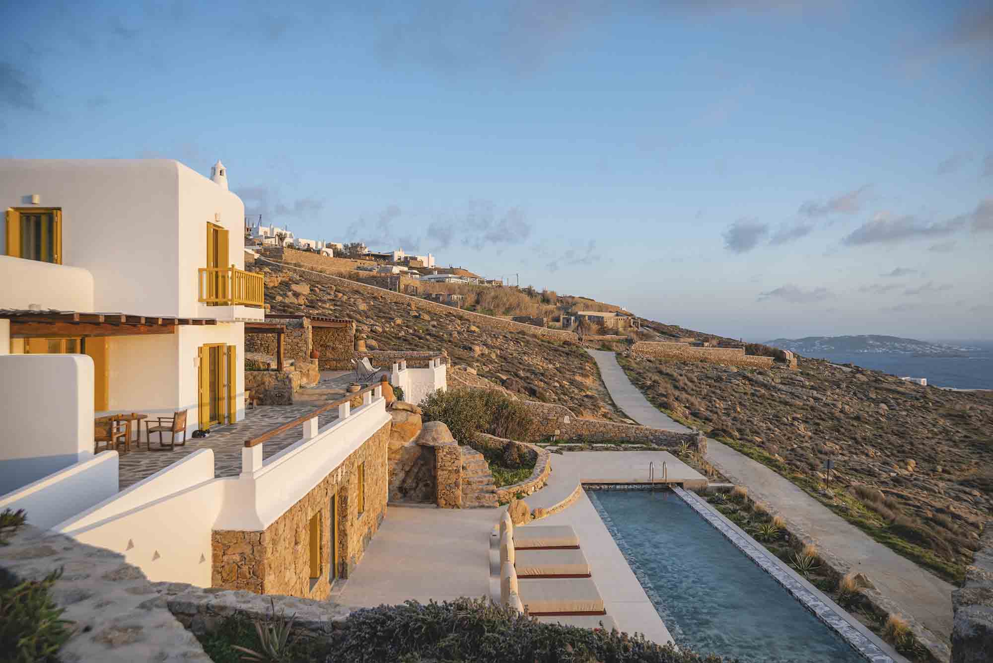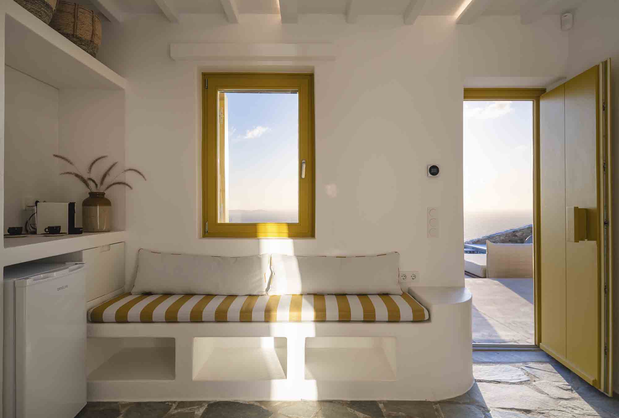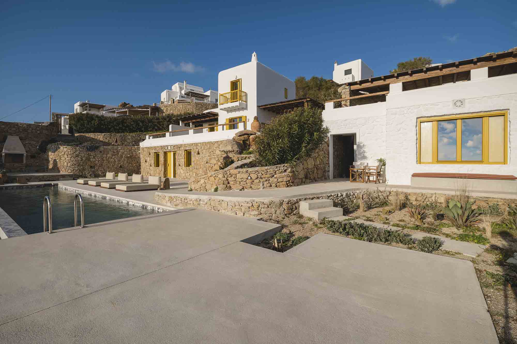 The property combines refined Cycladic architecture with modern design elements, featuring carefully curated interiors and high-end finishes throughout. Inside, the villa showcases bright, airy interiors where contemporary style meets traditional Mykonian elements. Natural stone details are thoughtfully incorporated, helping maintain a cool, serene atmosphere while enhancing the connection to the island’s natural beauty.