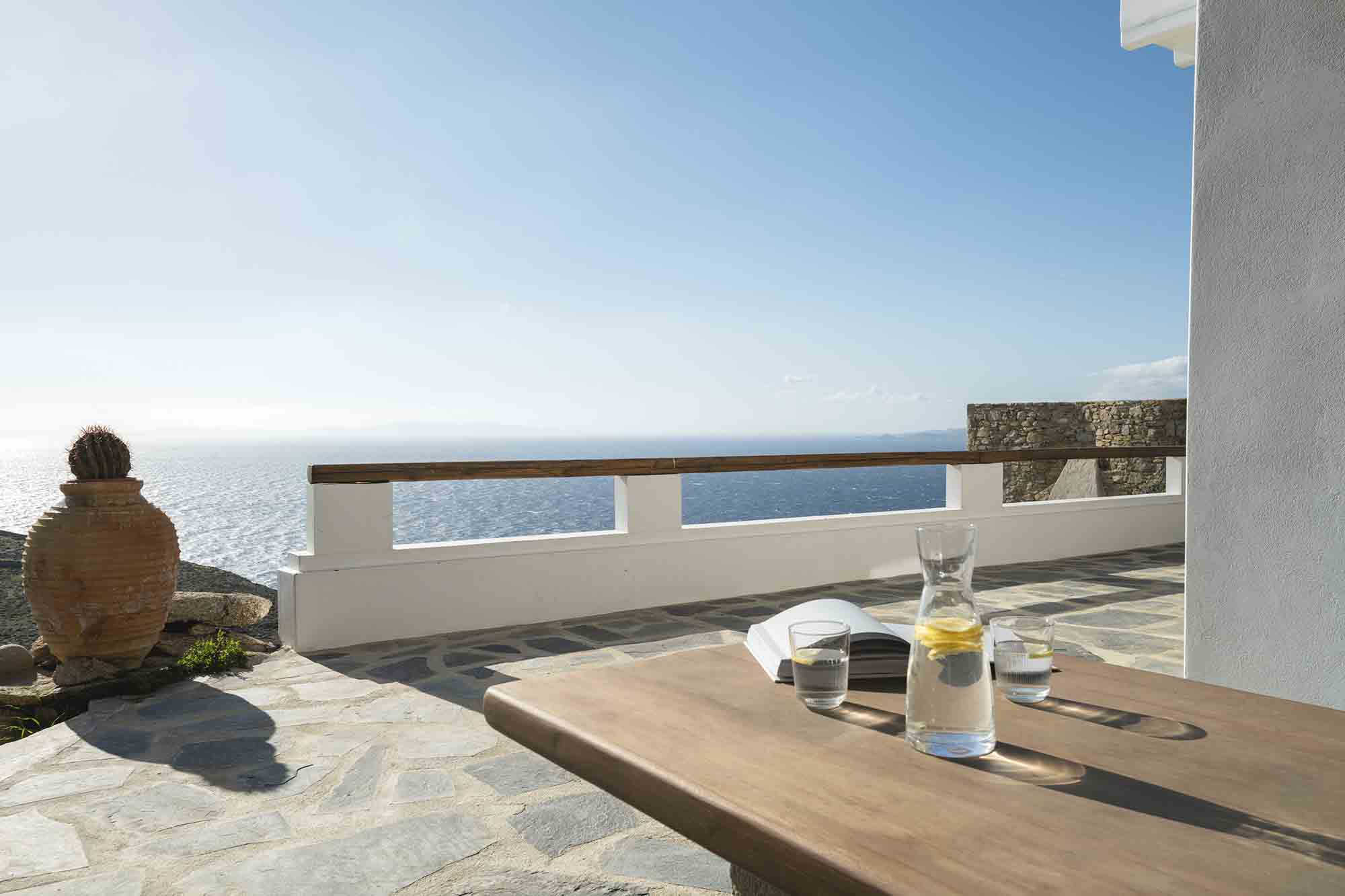 Villa Jimena blends modern elegance with classic Cycladic charm, offering stunning panoramic views of the Aegean Sea.