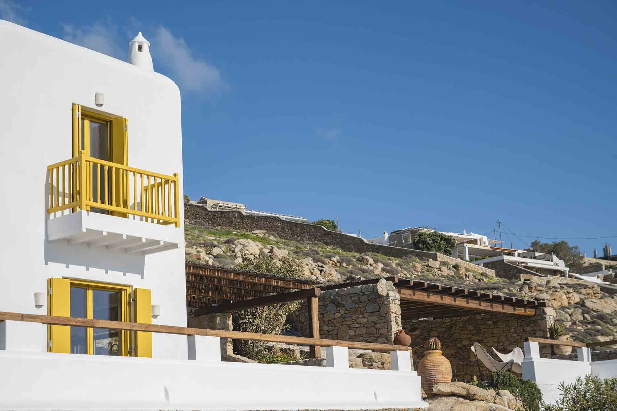 Located in a tranquil yet convenient setting, the villa provides both privacy and easy access to the lively atmosphere of Mykonos Town and the island’s renowned beaches. Whether you’re looking for a peaceful getaway or a sophisticated retreat near the island’s vibrant scene, Villa Jimena delivers an exceptional Mykonos experience, beyond spaces.