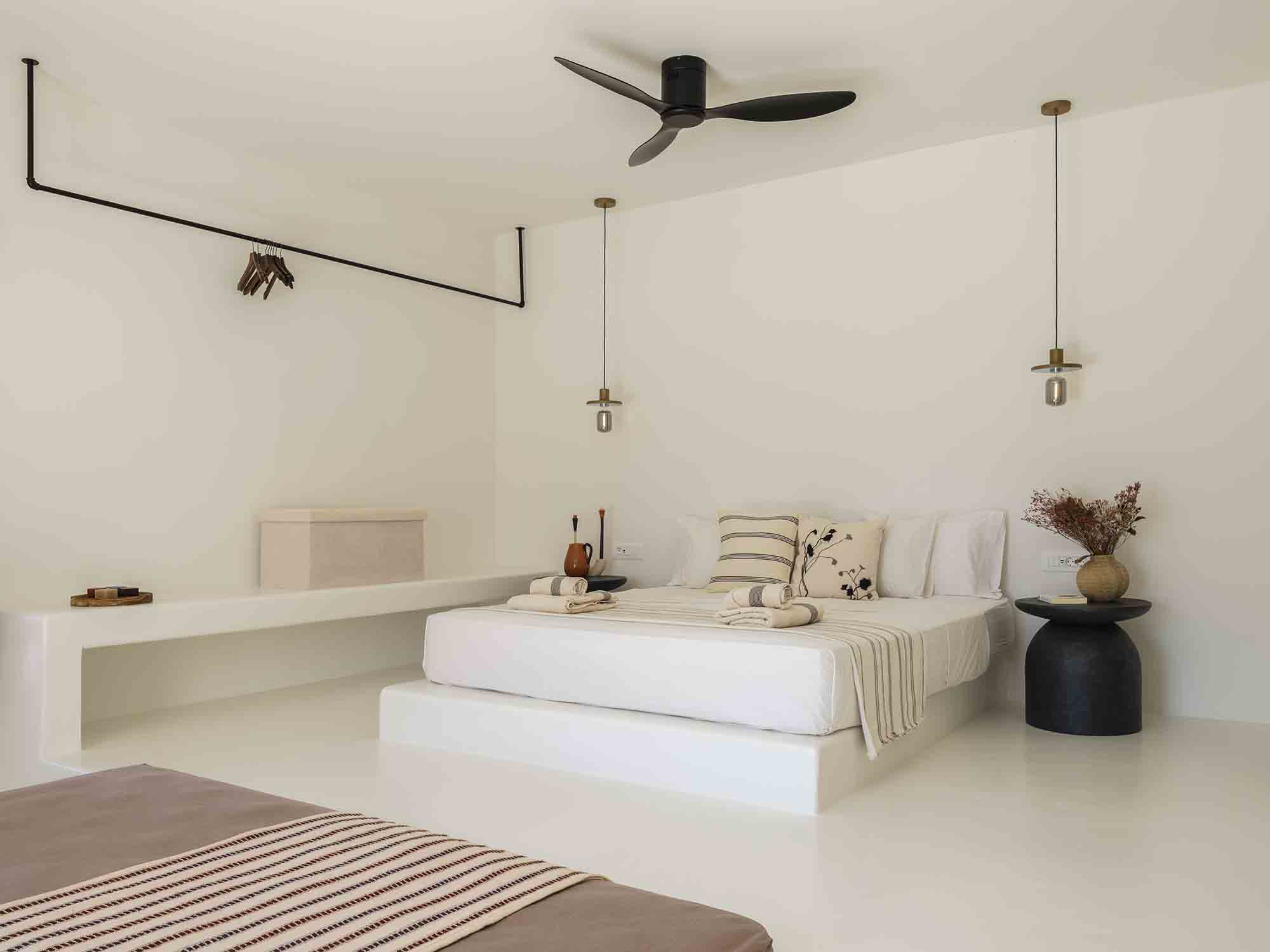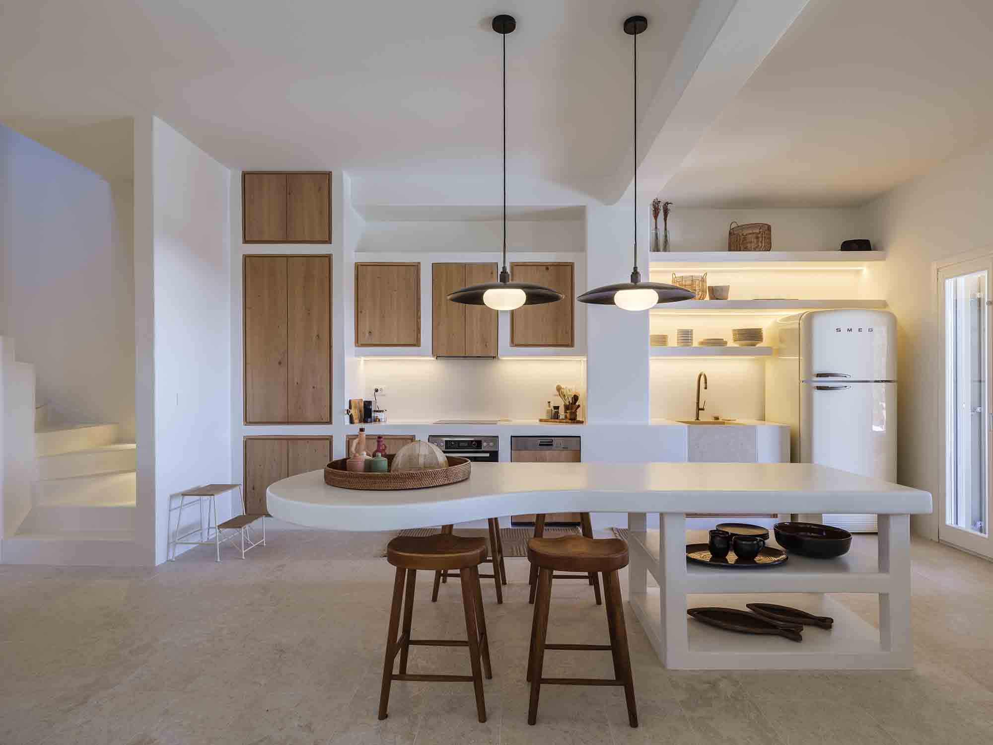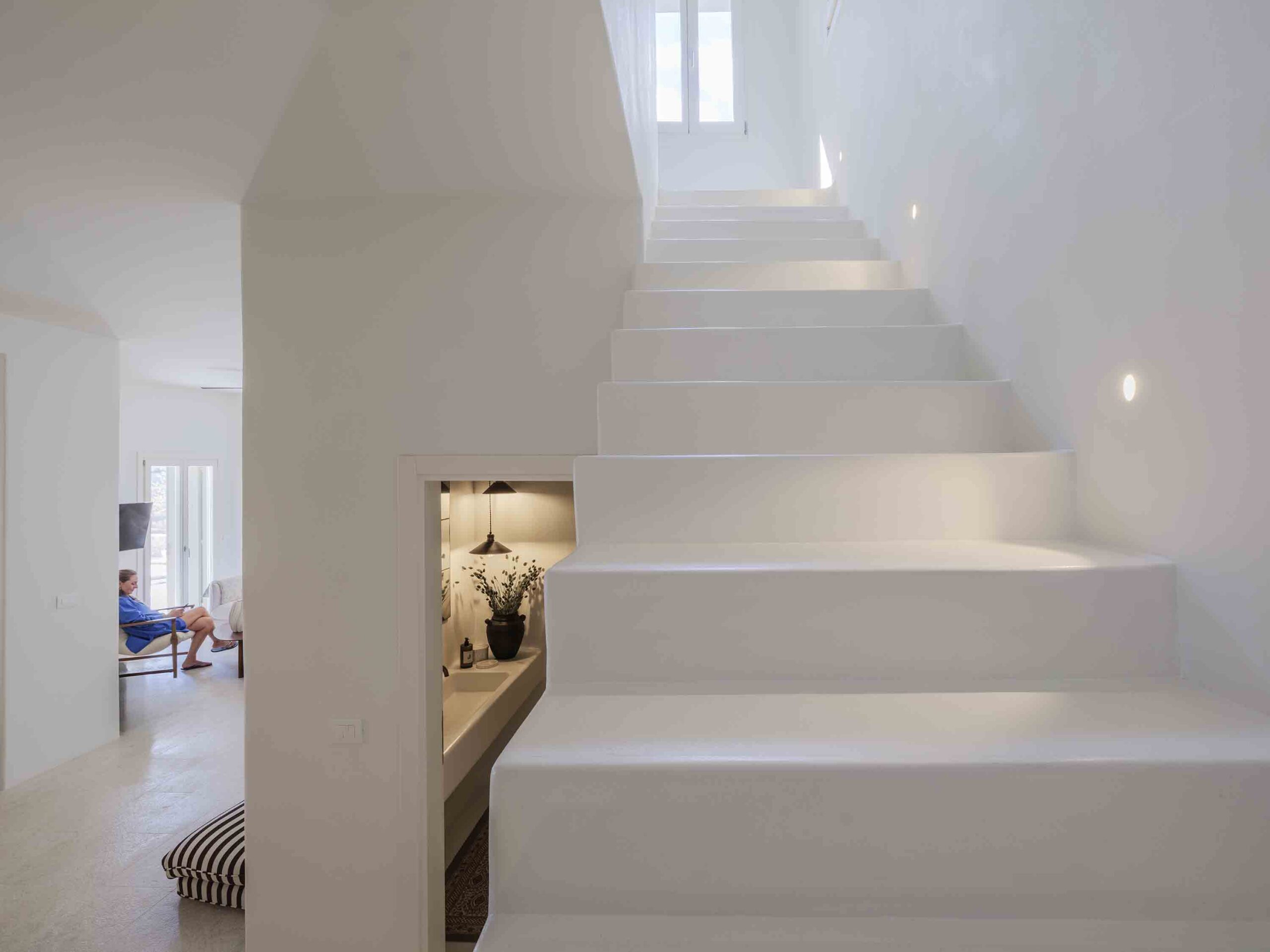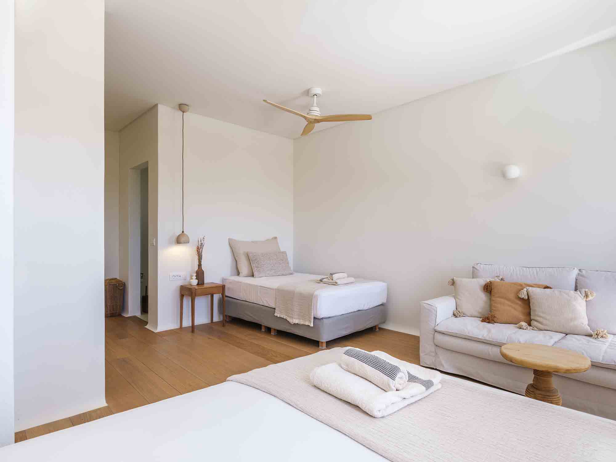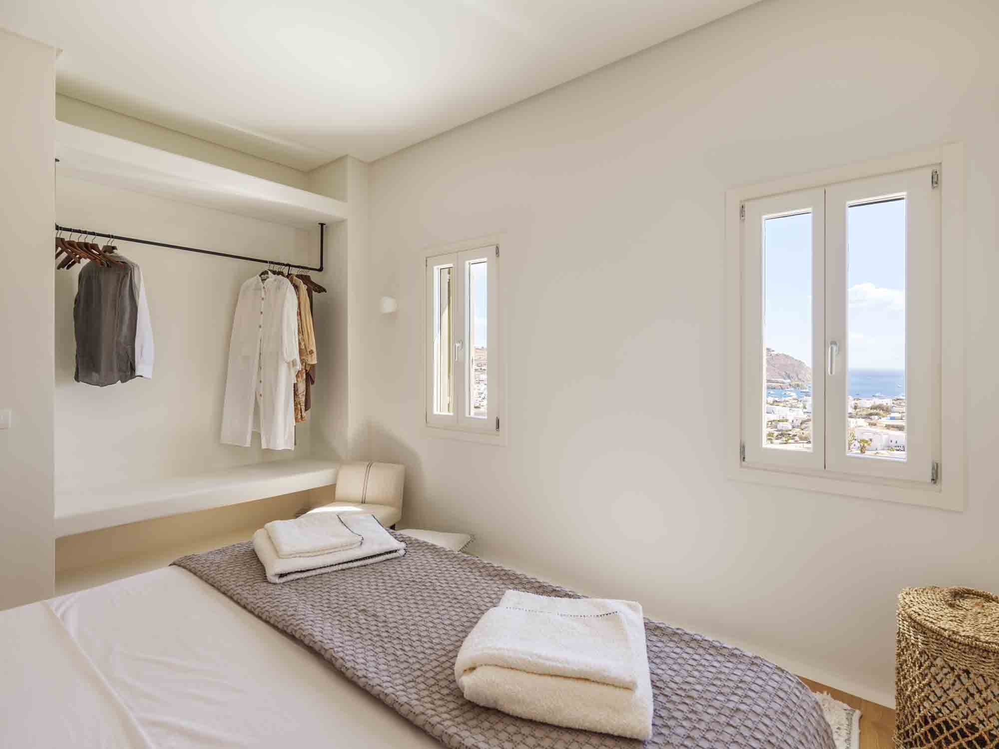 One of the villa’s greatest assets is its sheltered location, offering respite from the strong winds that are typical in Mykonos, allowing you to enjoy the outdoor areas in peace and comfort. This attention to detail extends throughout the villa, ensuring a luxurious experience at every turn.