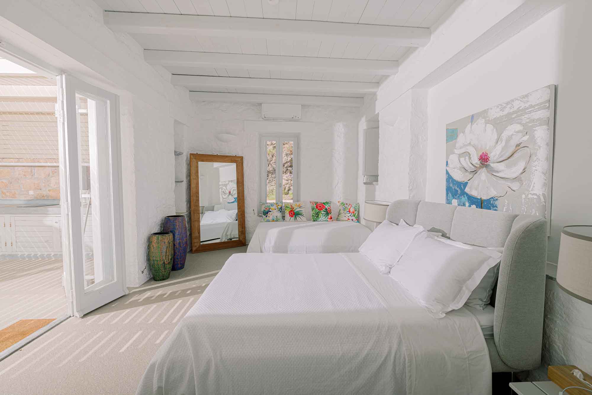 Villa Kambos was built with a vision to have a relaxing luxurious home with spaces resembling a small boutique hotel, and this is exactly the feeling one has once they arrive. There is an understated feeling of luxury that is completely in sync with the bohemian chic feel of Patmos island.
