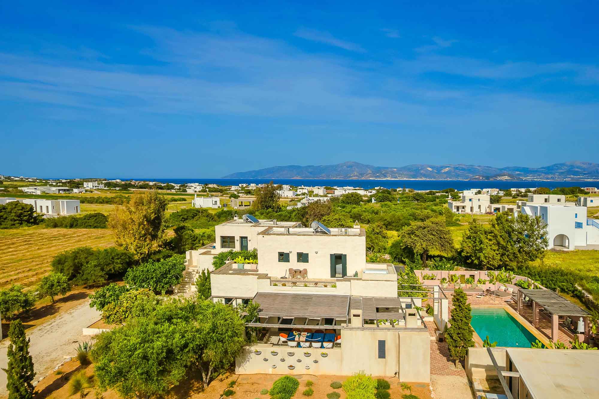 Villa Khloe is a brand new 4-bedroom villa of a great style, located in Dryos, a few steps from the sea and at only 300 meters from the beautiful sandy Golden Beach.