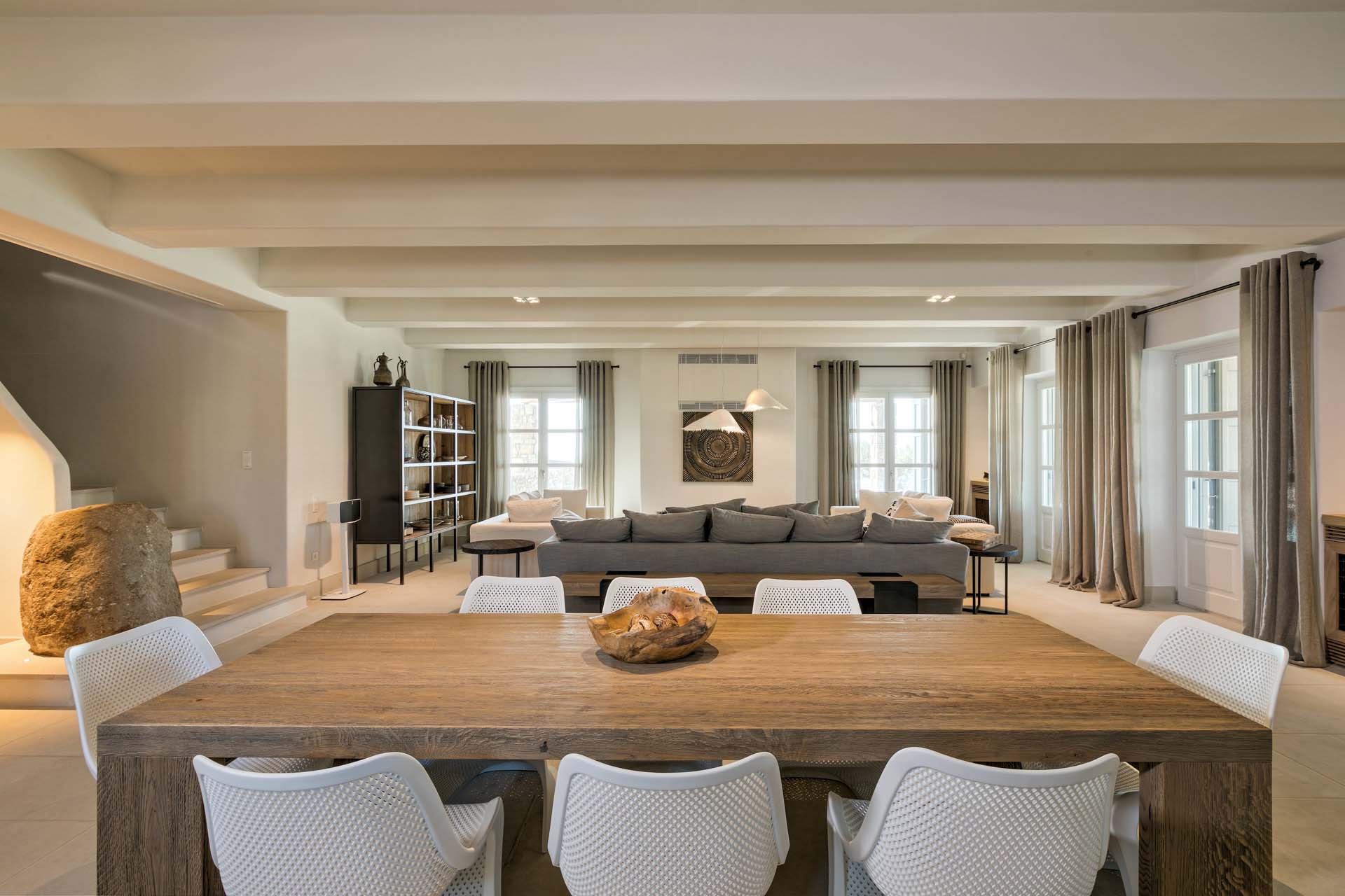 The interior is a blend of minimal, ethnic and wood surfaces, joyfully blending to create a warm ambience of hotel style quality and standards. The choice of furniture, fabrics and materials is of the highest quality. Amenities such as the gym and the massage room, which are located below the pool, offer guests even more comfort and amenities beyond the standards usually expected.