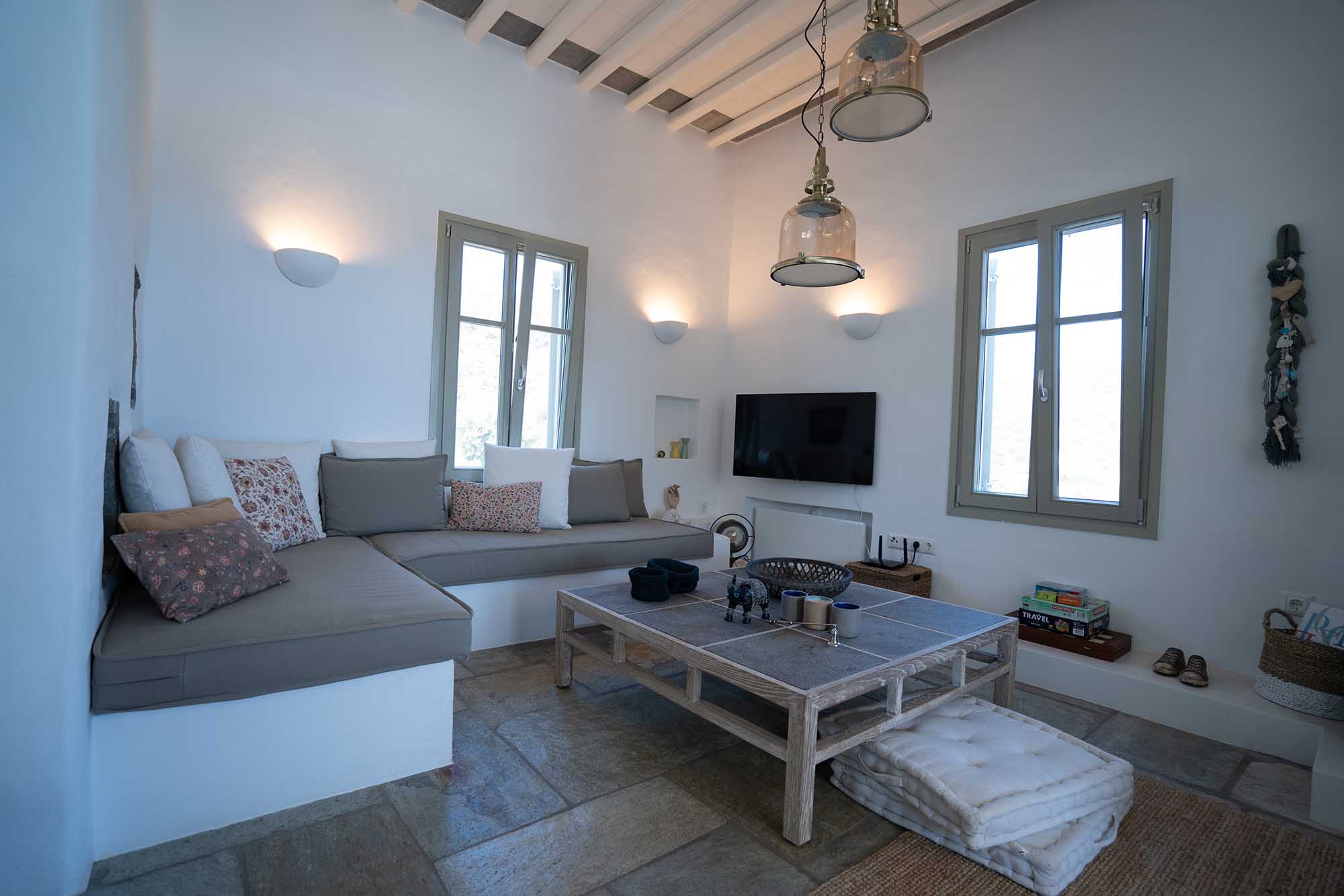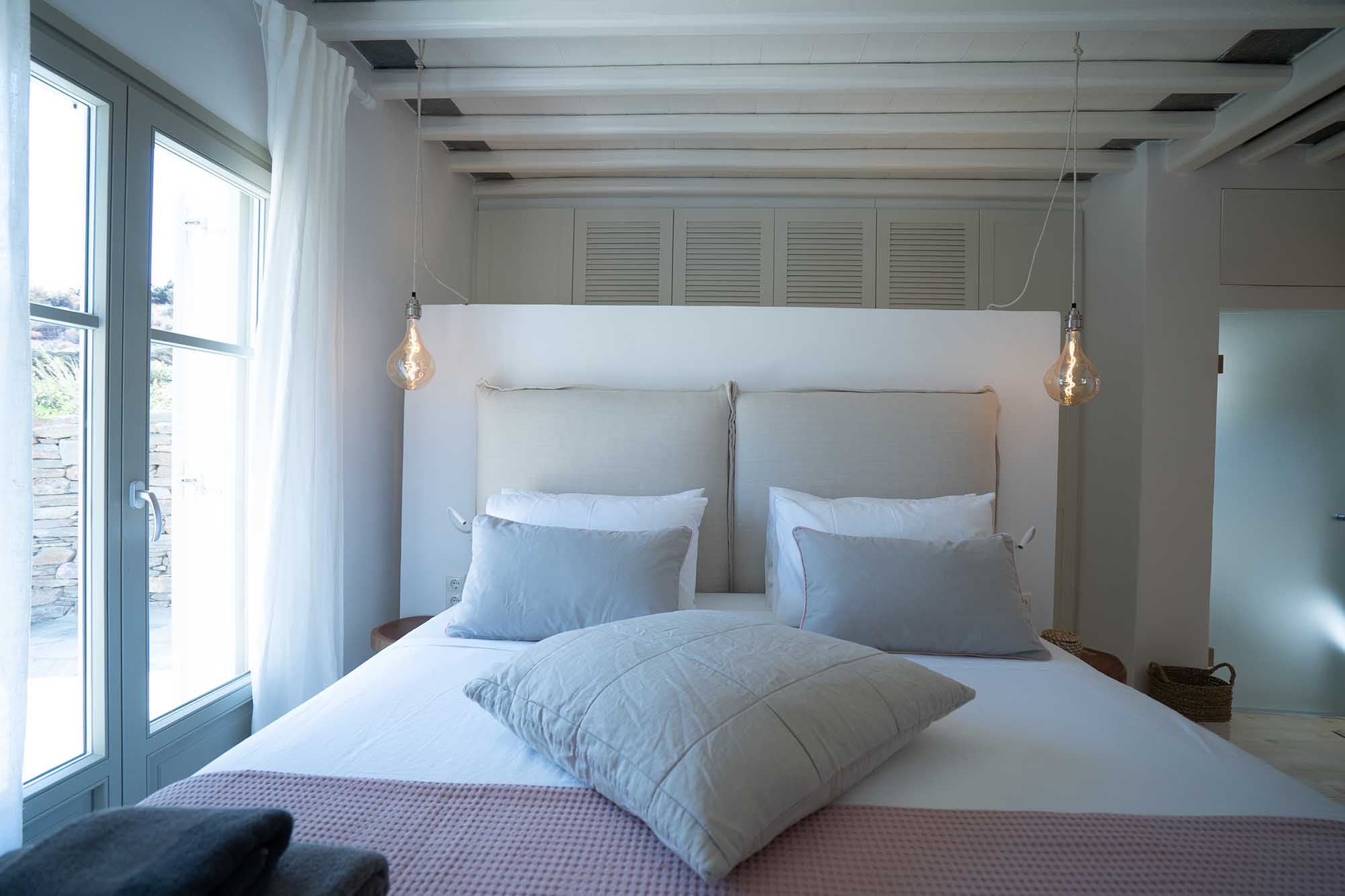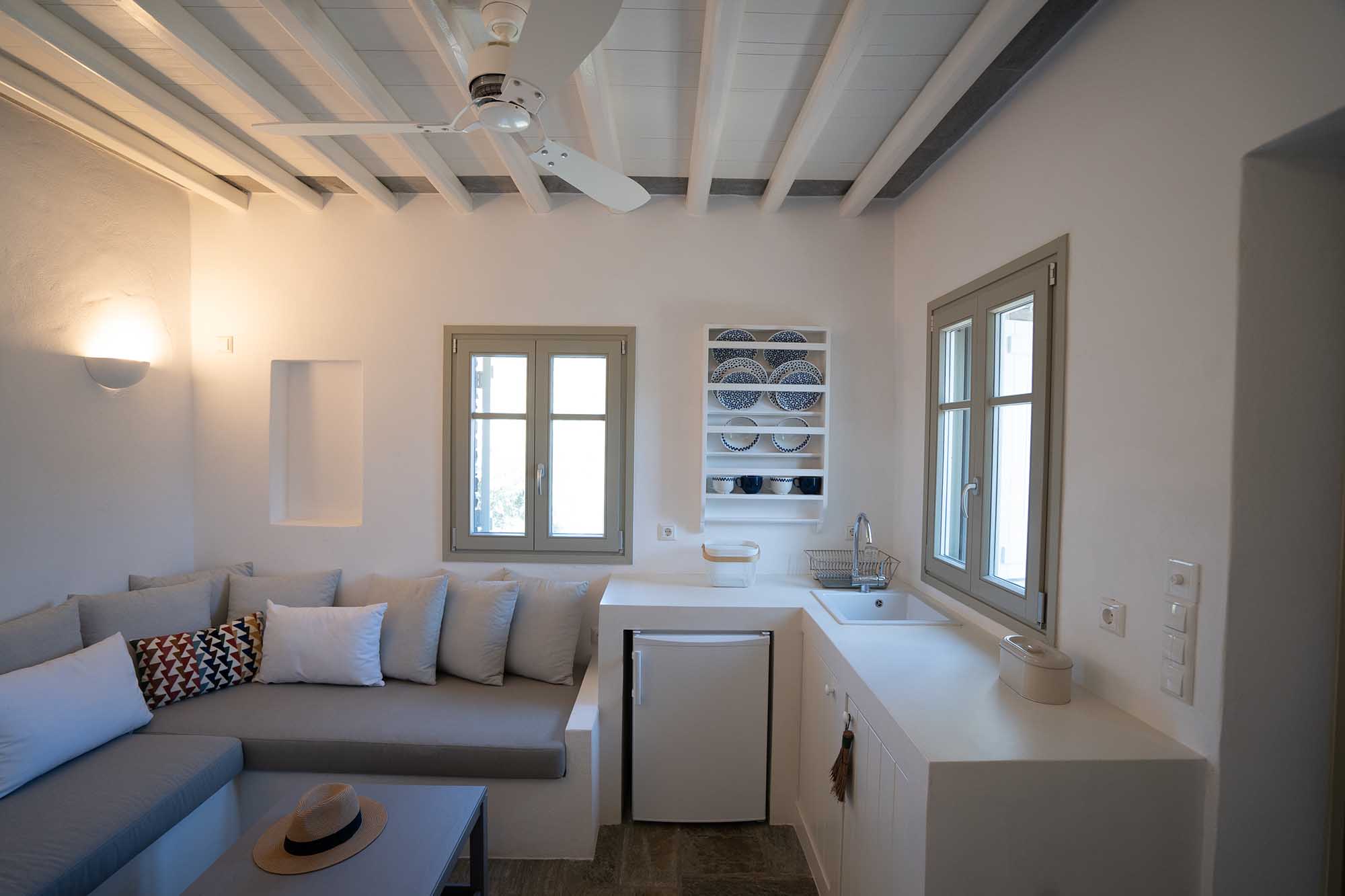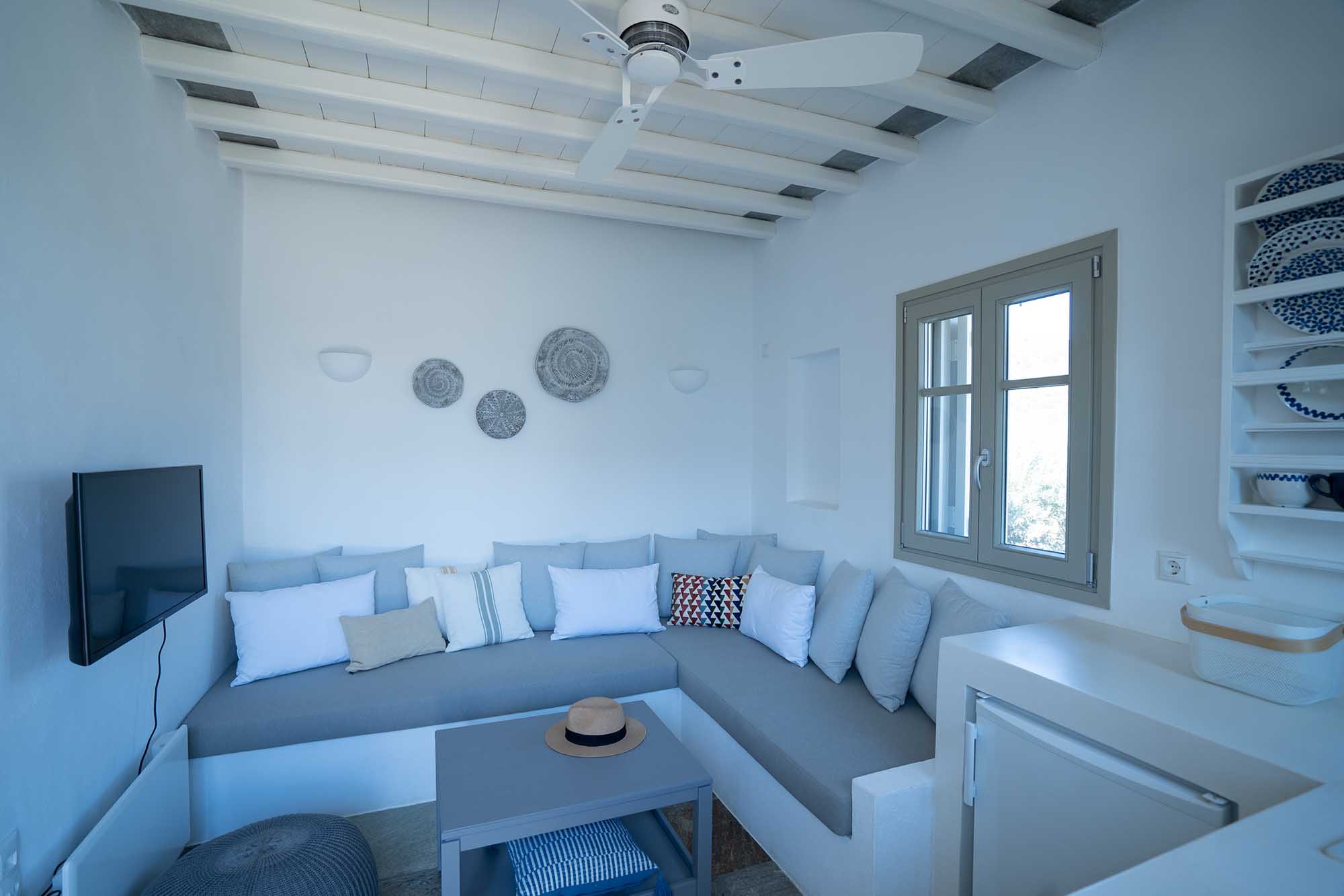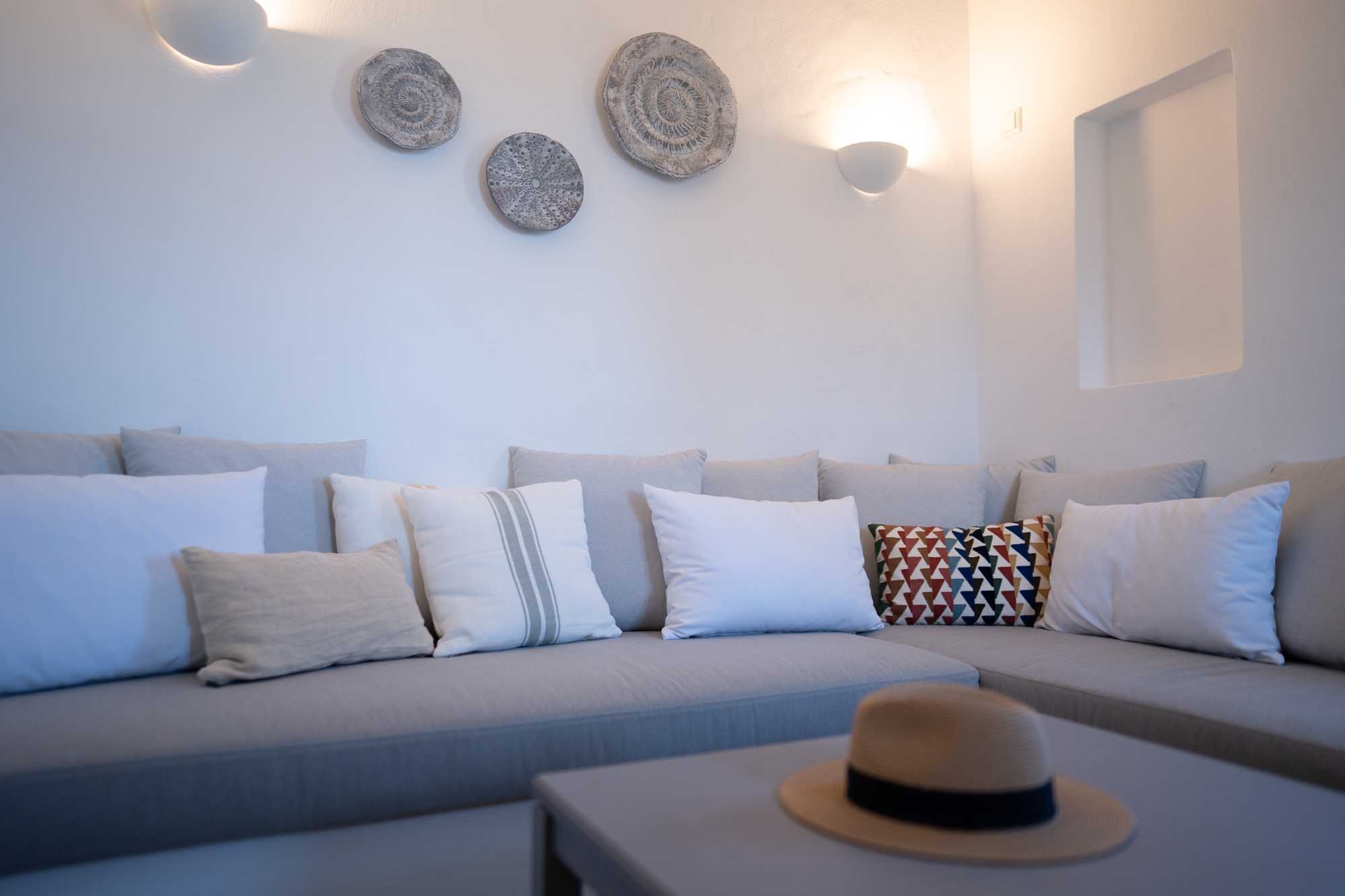 Light Cycladic design blends with ample interiors. We love the living spaces where the choice of furniture and décor enhances the home away from home ambience. Bedrooms provide great privacy while styled in expressions of white and natural colors enhancing a freshness and comfort.