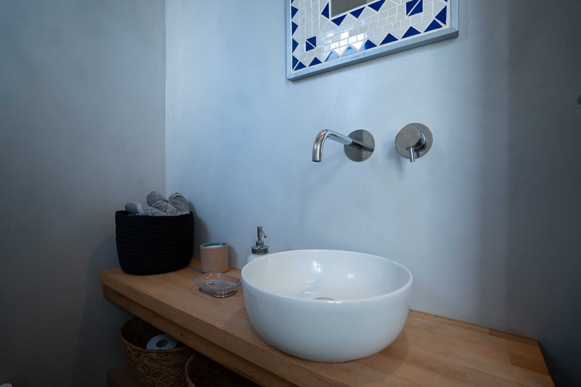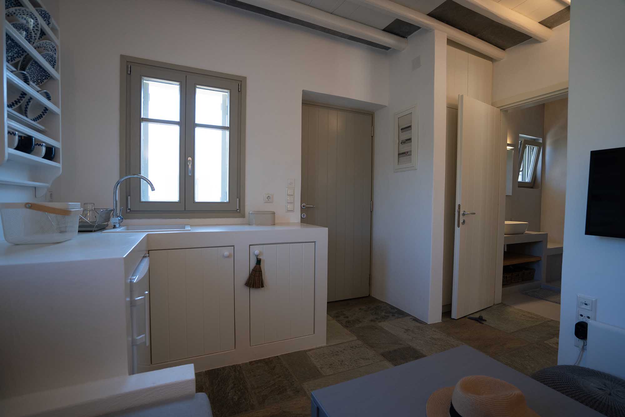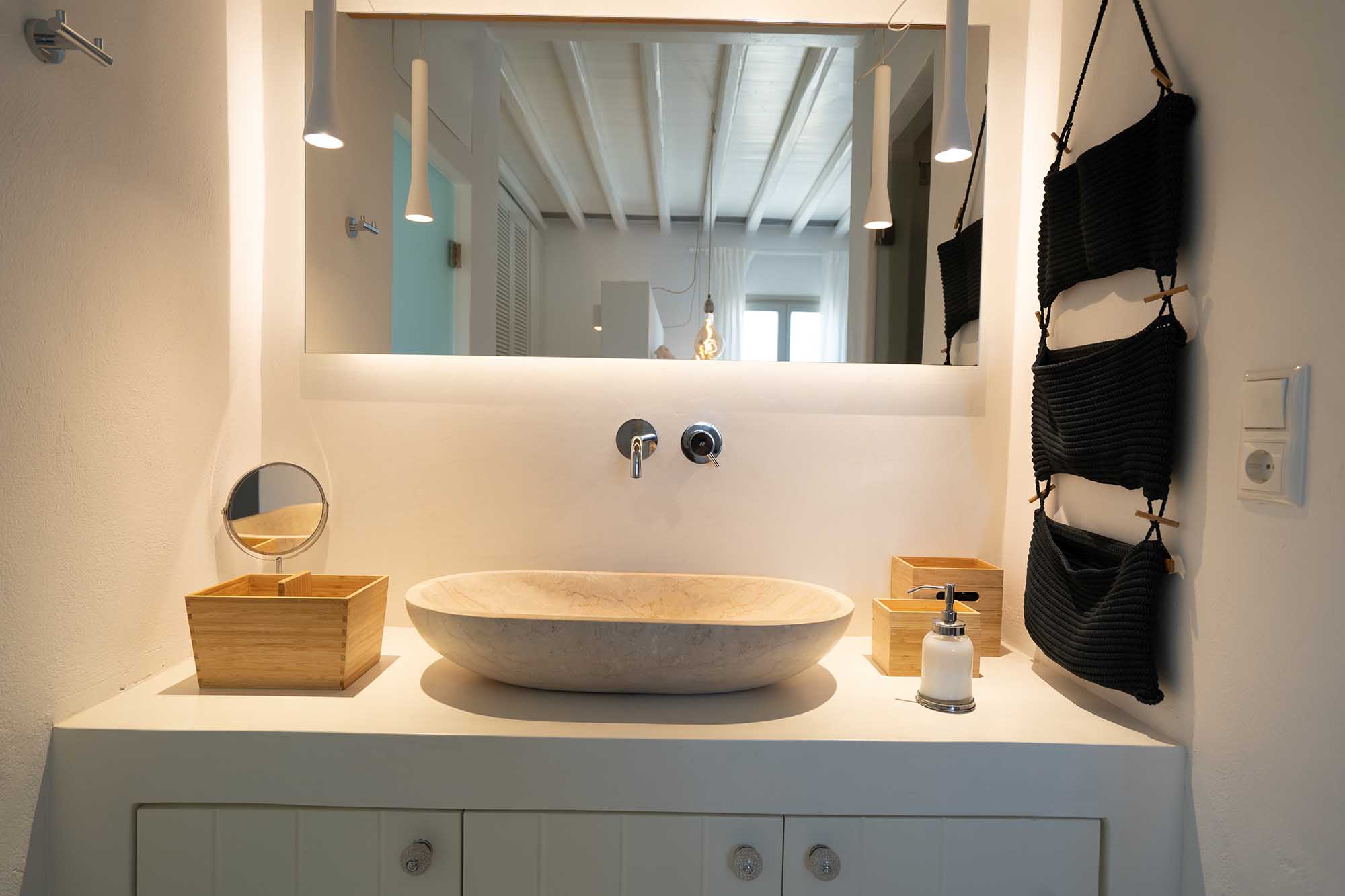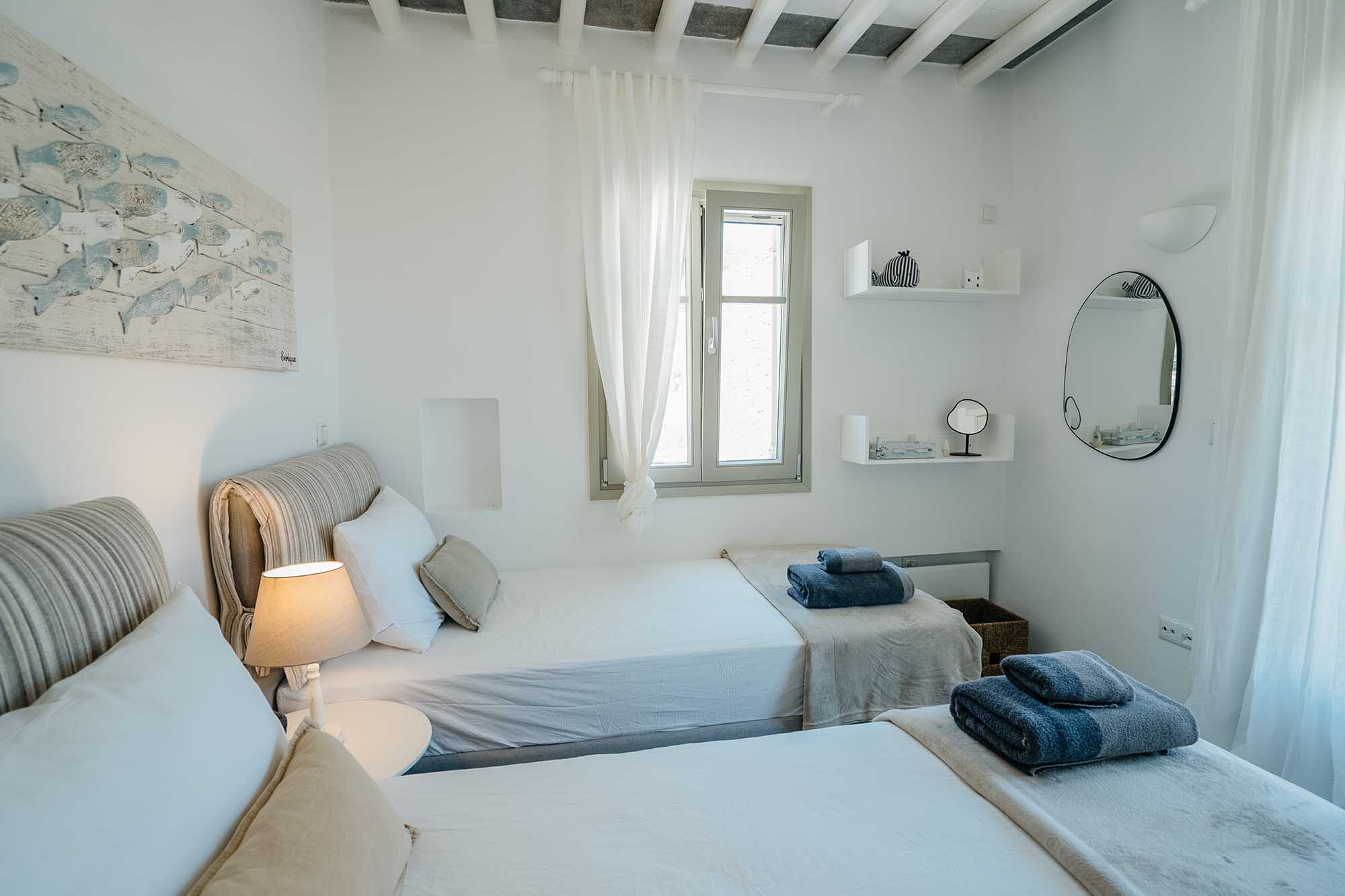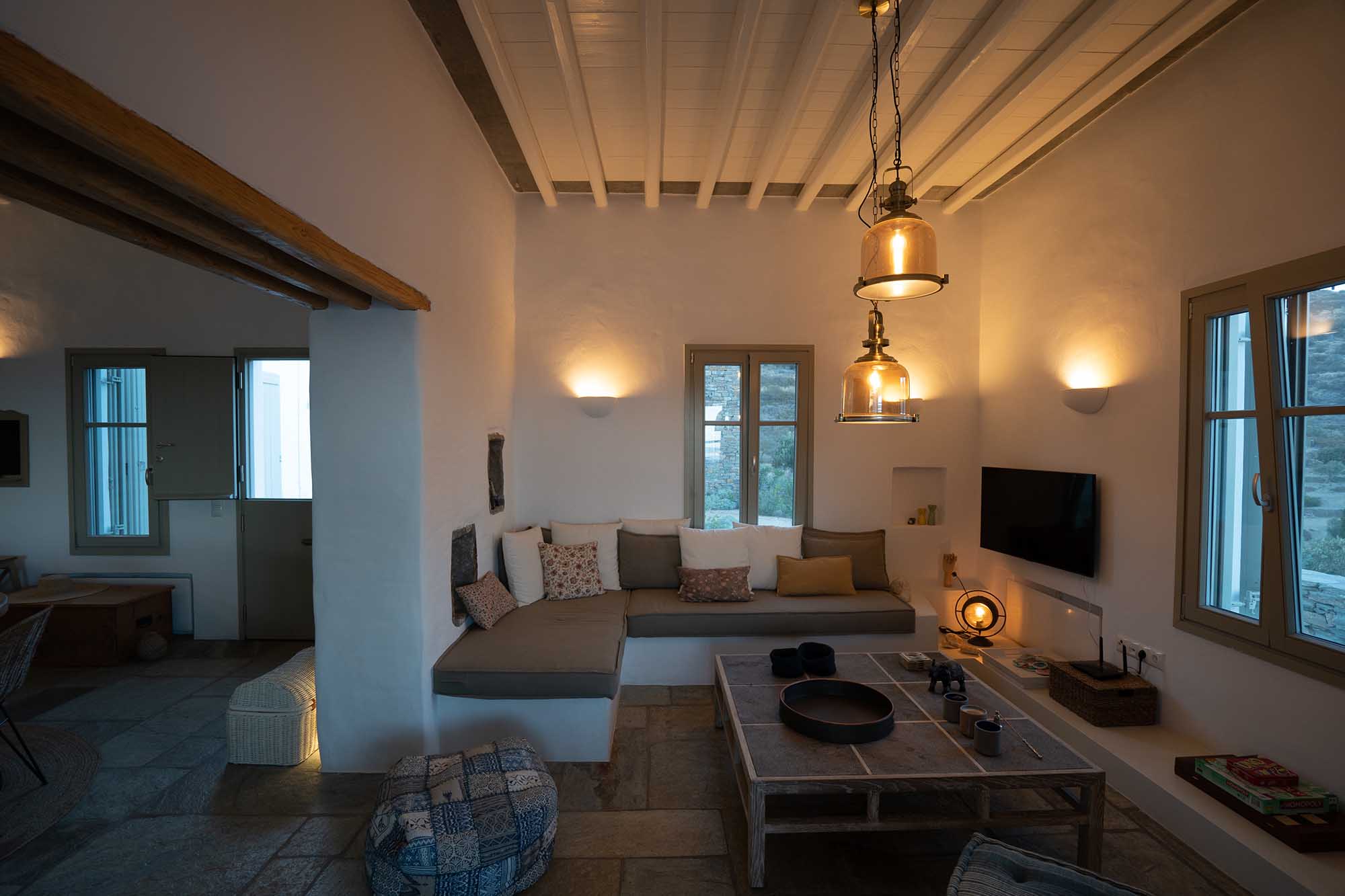 Light Cycladic design blends with ample interiors. We love the living spaces where the choice of furniture and décor enhances the home away from home ambience. Bedrooms provide great privacy while styled in expressions of white and natural colors enhancing a freshness and comfort.