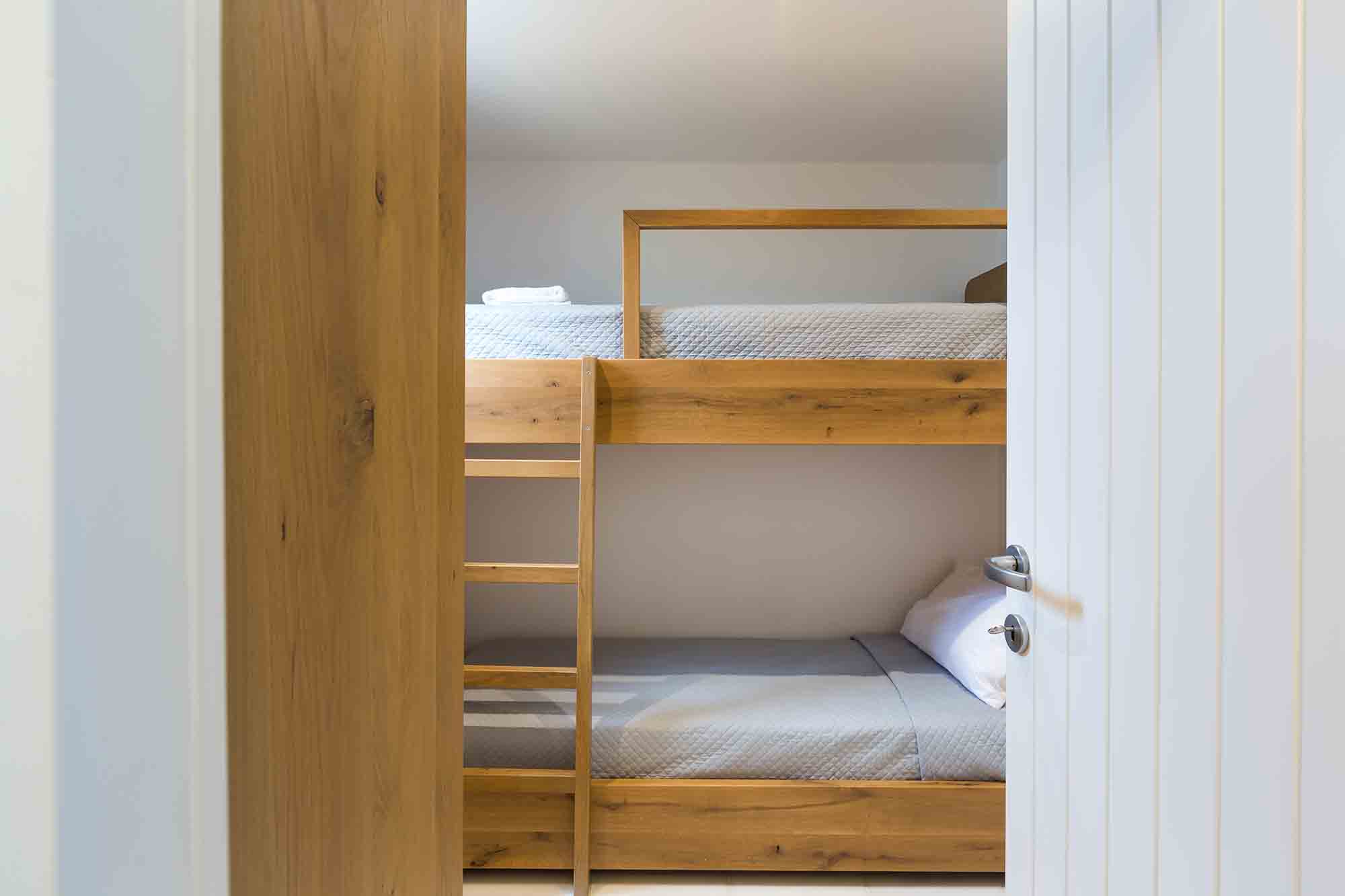 - Bedroom 9: Two bunk beds (90x200 cm each), en-suite bathroom, garden view