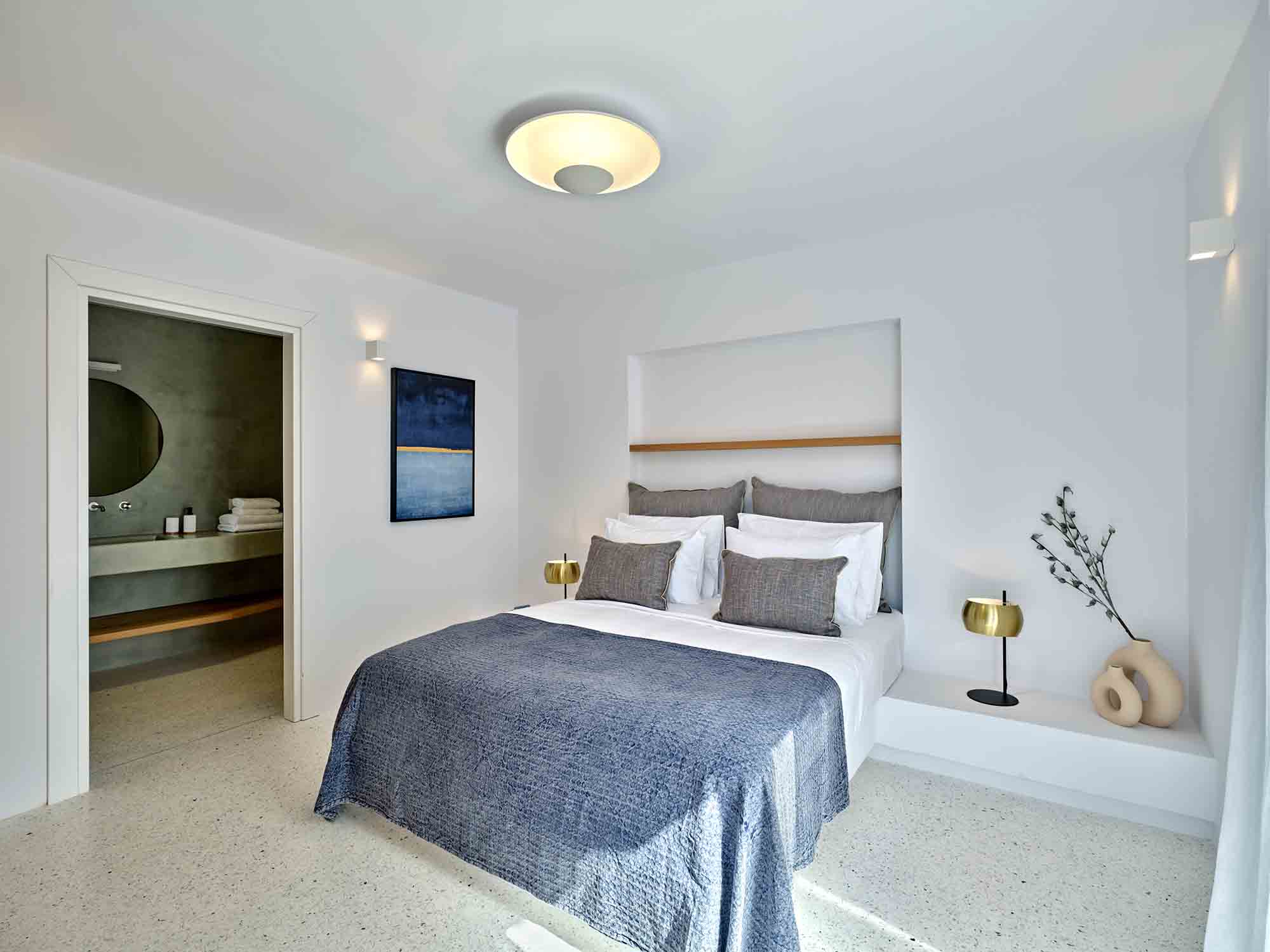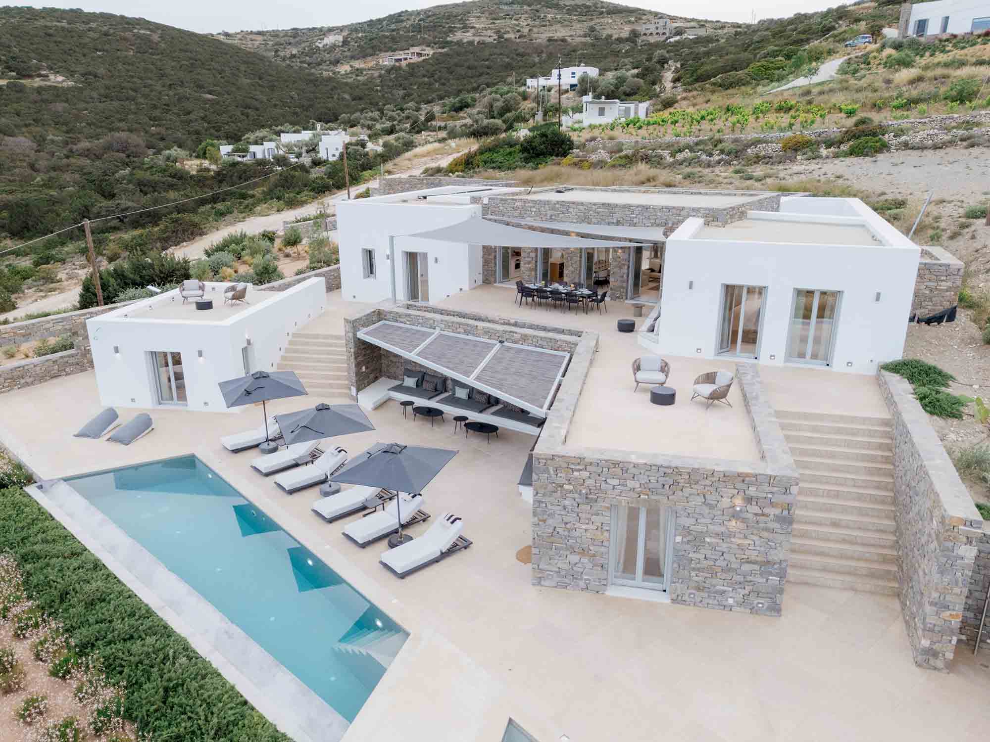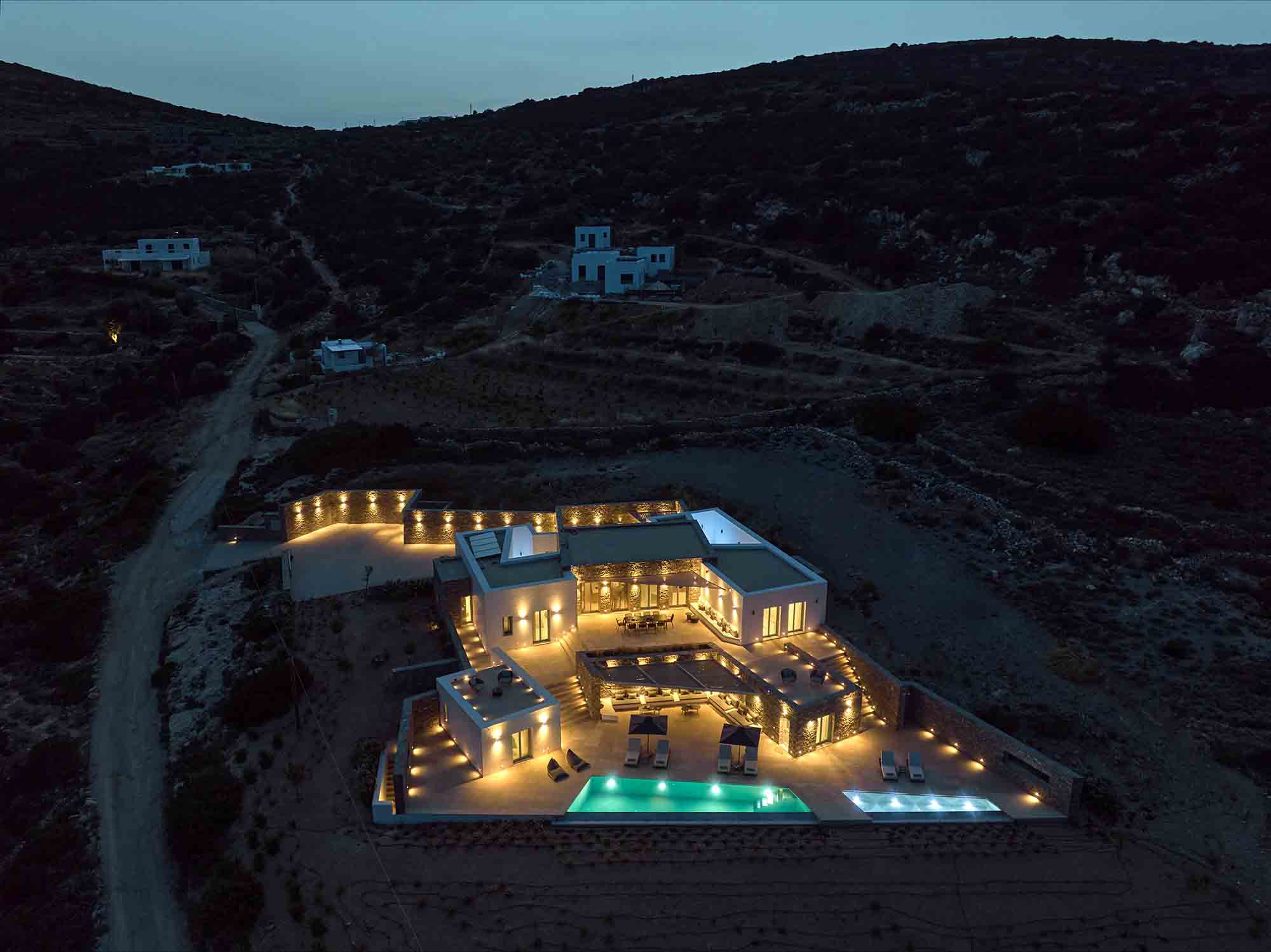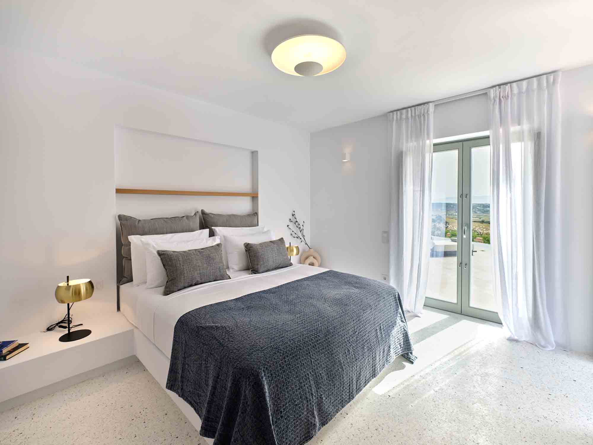 Despite its peaceful setting, the villa is conveniently located near the island’s highlights. Naoussa is only a five-minute drive away, offering vibrant nightlife, boutique shopping, and excellent restaurants. Beautiful beaches, along with charming villages such as Lefkes and Kostos, are also within easy reach.