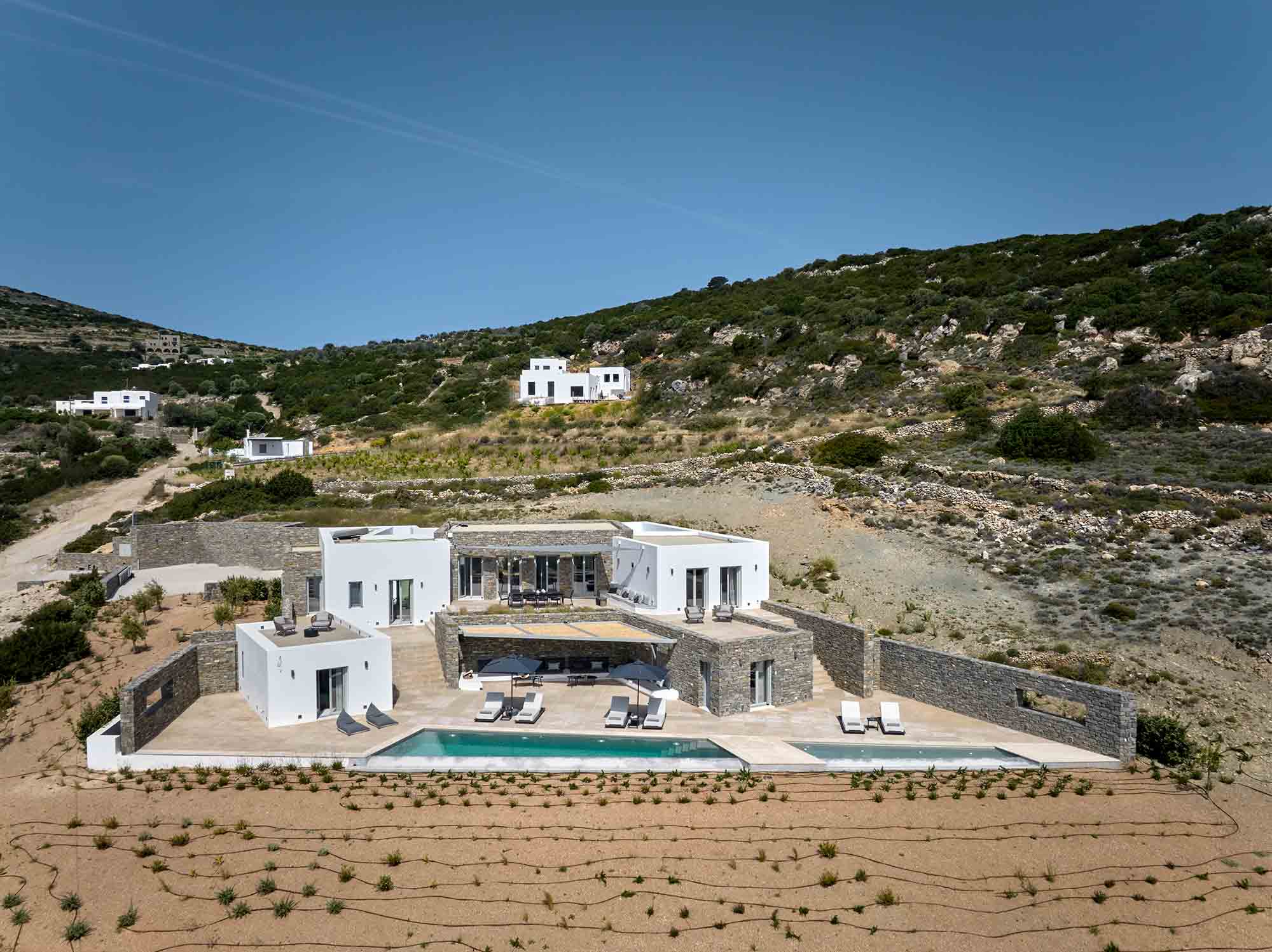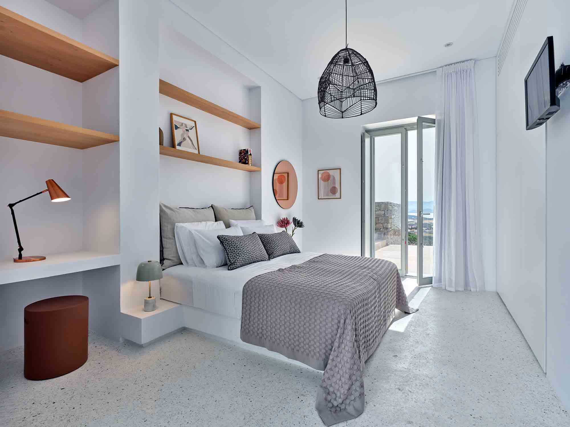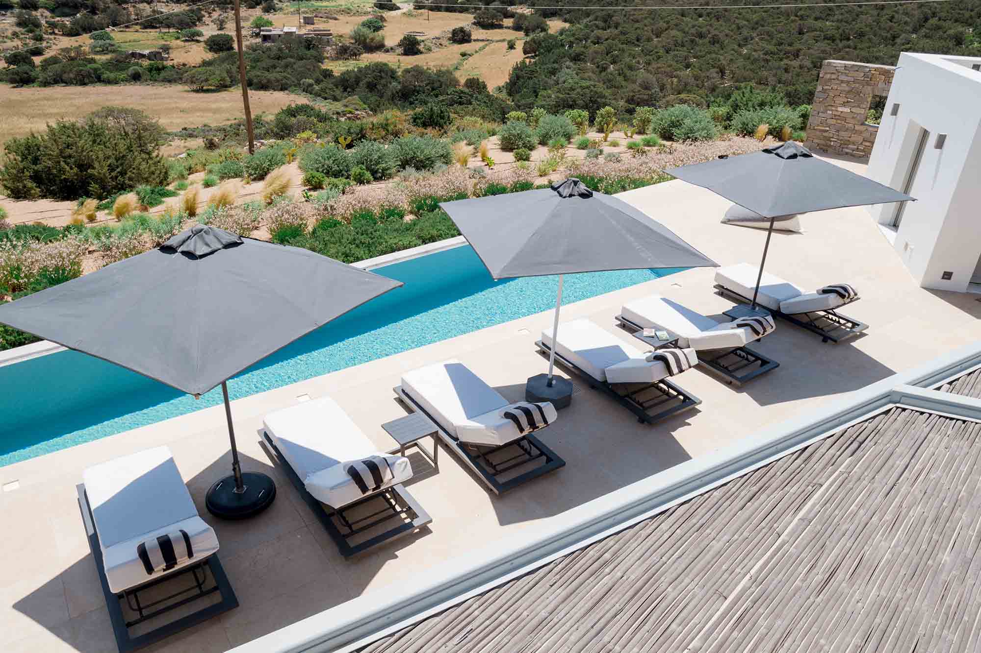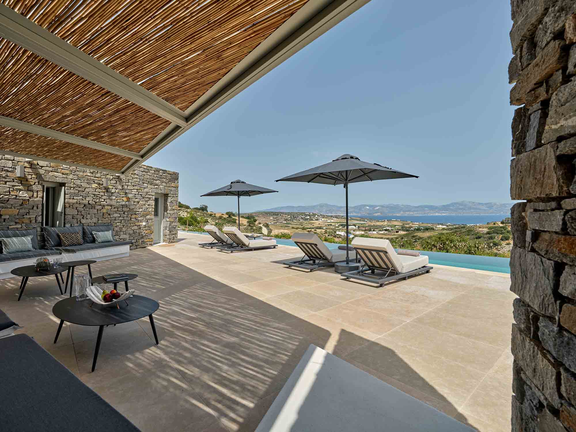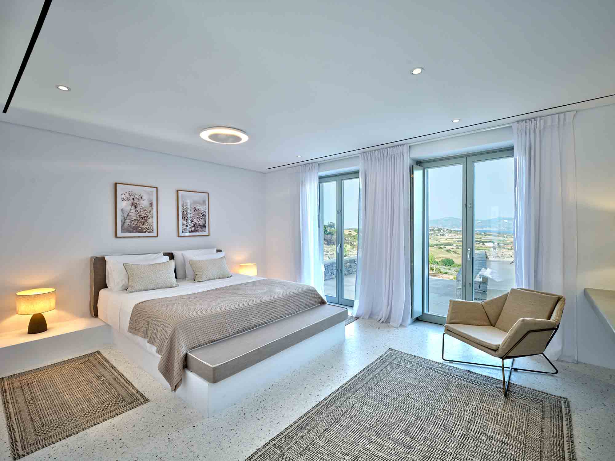 Despite its peaceful setting, the villa is conveniently located near the island’s highlights. Naoussa is only a five-minute drive away, offering vibrant nightlife, boutique shopping, and excellent restaurants. Beautiful beaches, along with charming villages such as Lefkes and Kostos, are also within easy reach.