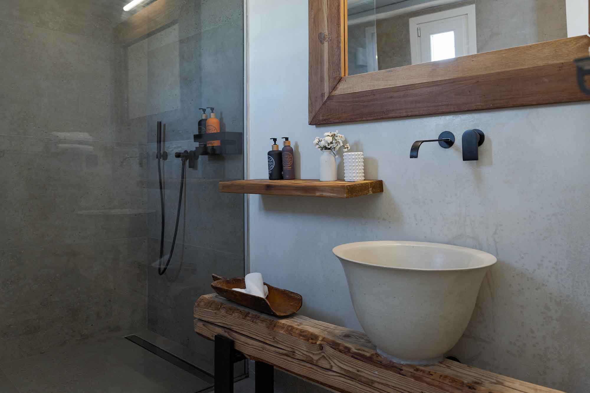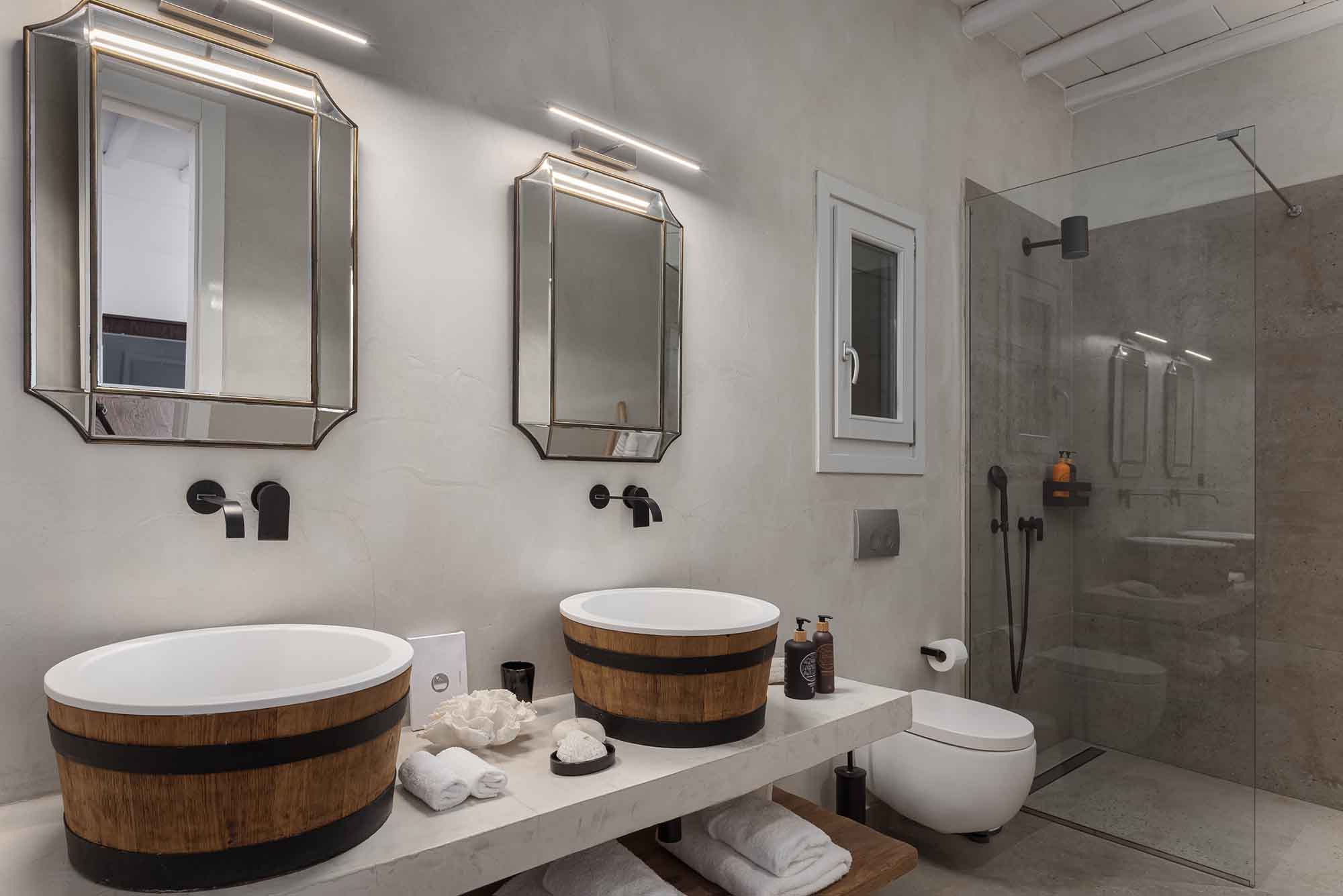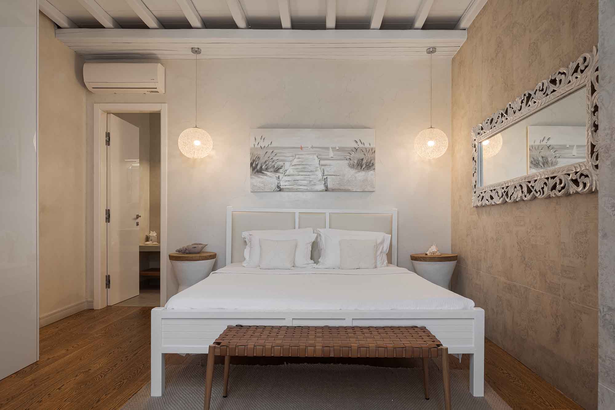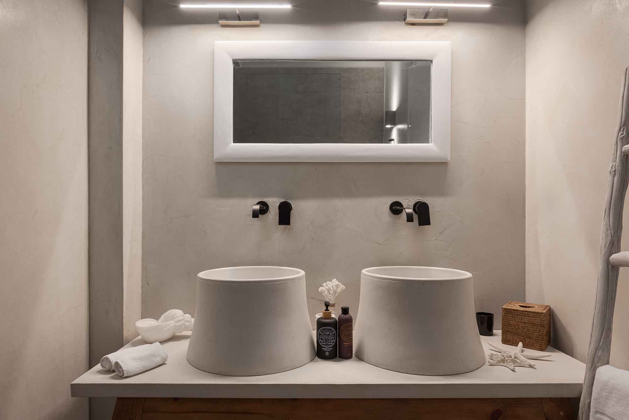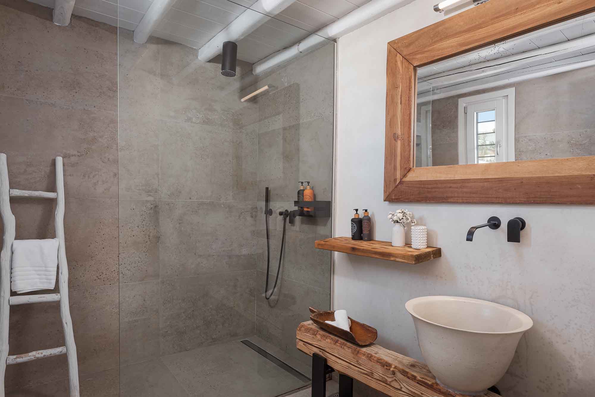 The villa is within walking distance from the beach of Agios Ioannis. The pool area is well equipped with sun beds and a lounge area for relaxation and entertaining. The bright, traditionally designed living room and dining area have also access to the pool area, and overlook the swimming pool, the sea and Delos island, while they offer amazing sunset views during the evening.