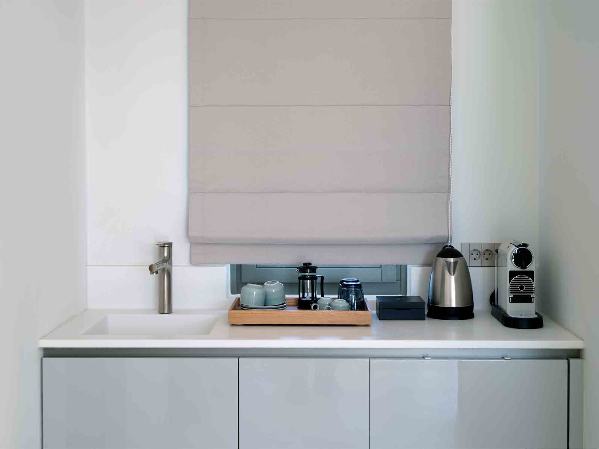Just a few steps away, the 67 sqm Guest House provides a fully independent retreat, featuring an ensuite master bedroom, a welcoming lounge that can also serve as an additional sleeping space, a second bathroom, and a compact kitchenette. Both rooms extend onto private terraces with stunning sea views. Nearby, the 38 sqm Guest Suite offers an open-plan layout combining a sleeping area, lounge space, and mini kitchen, all leading out to a generous private terrace overlooking the shimmering sea.