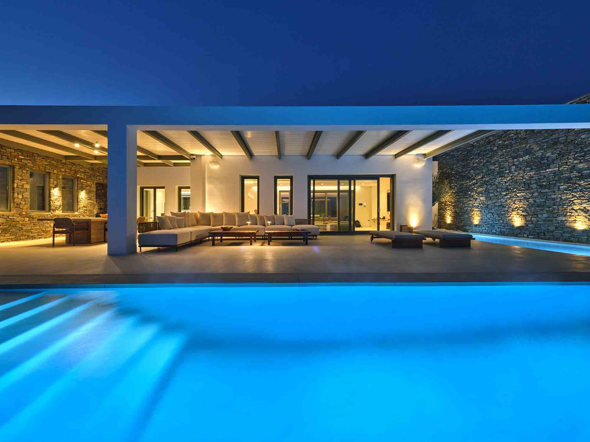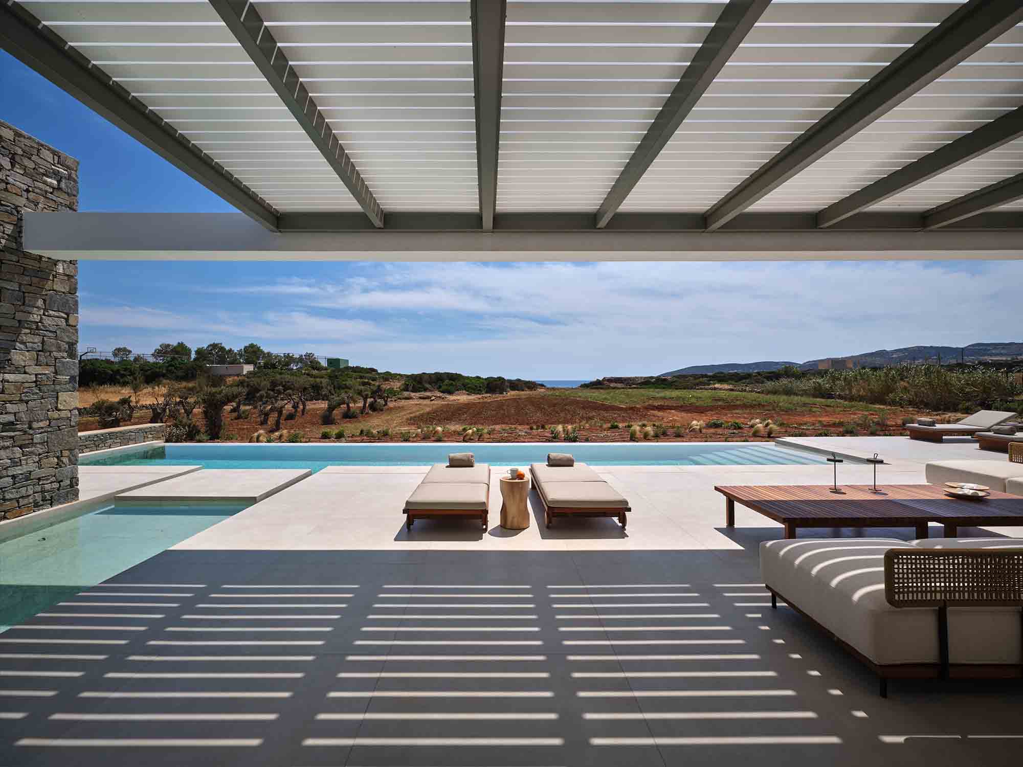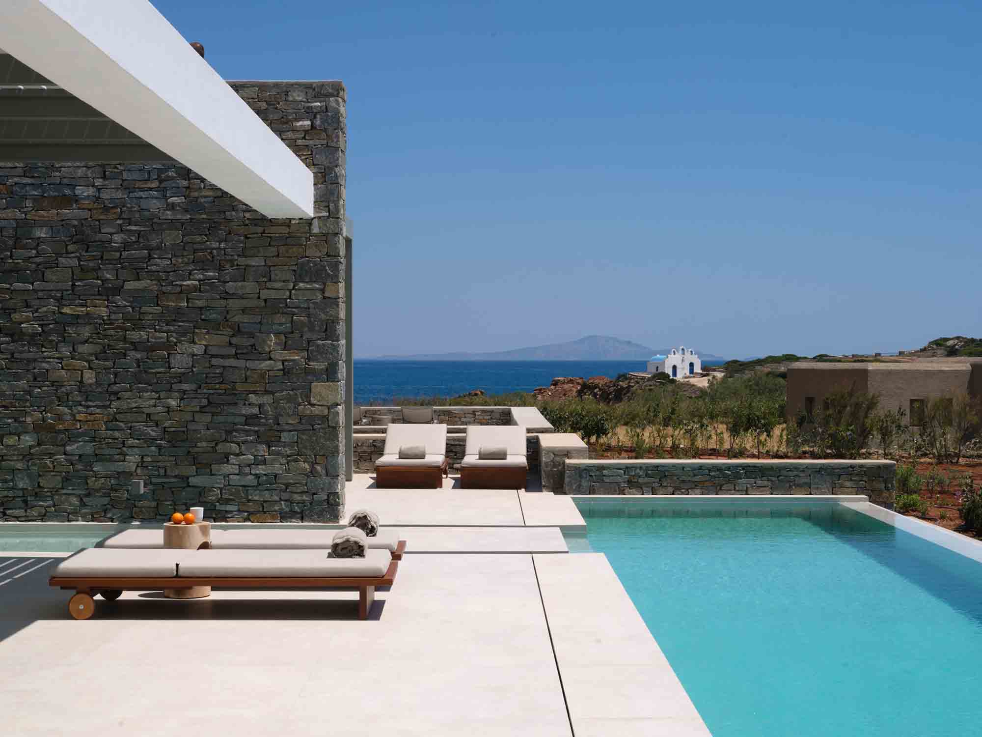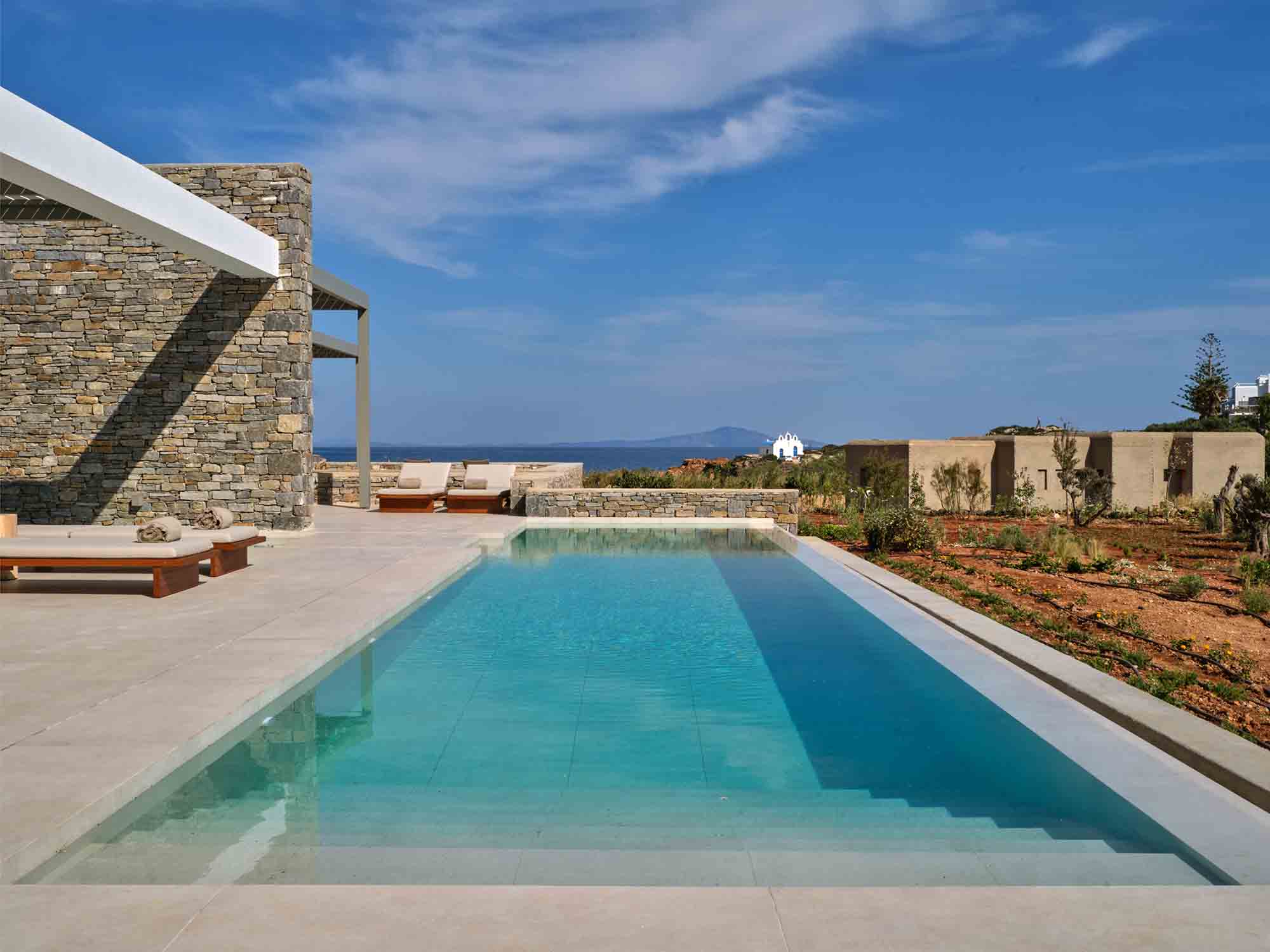 More than just a residence, Villa Morrisey offers an immersive experience of elegance, privacy, and natural beauty. Lush gardens filled with fragrant Mediterranean plants lead via stone pathways to a secluded private beach, where the gentle rhythm of the Aegean creates a serene daily backdrop. Equipped with sun loungers and a shaded umbrella, the beach invites pure relaxation by the water beyond spaces.