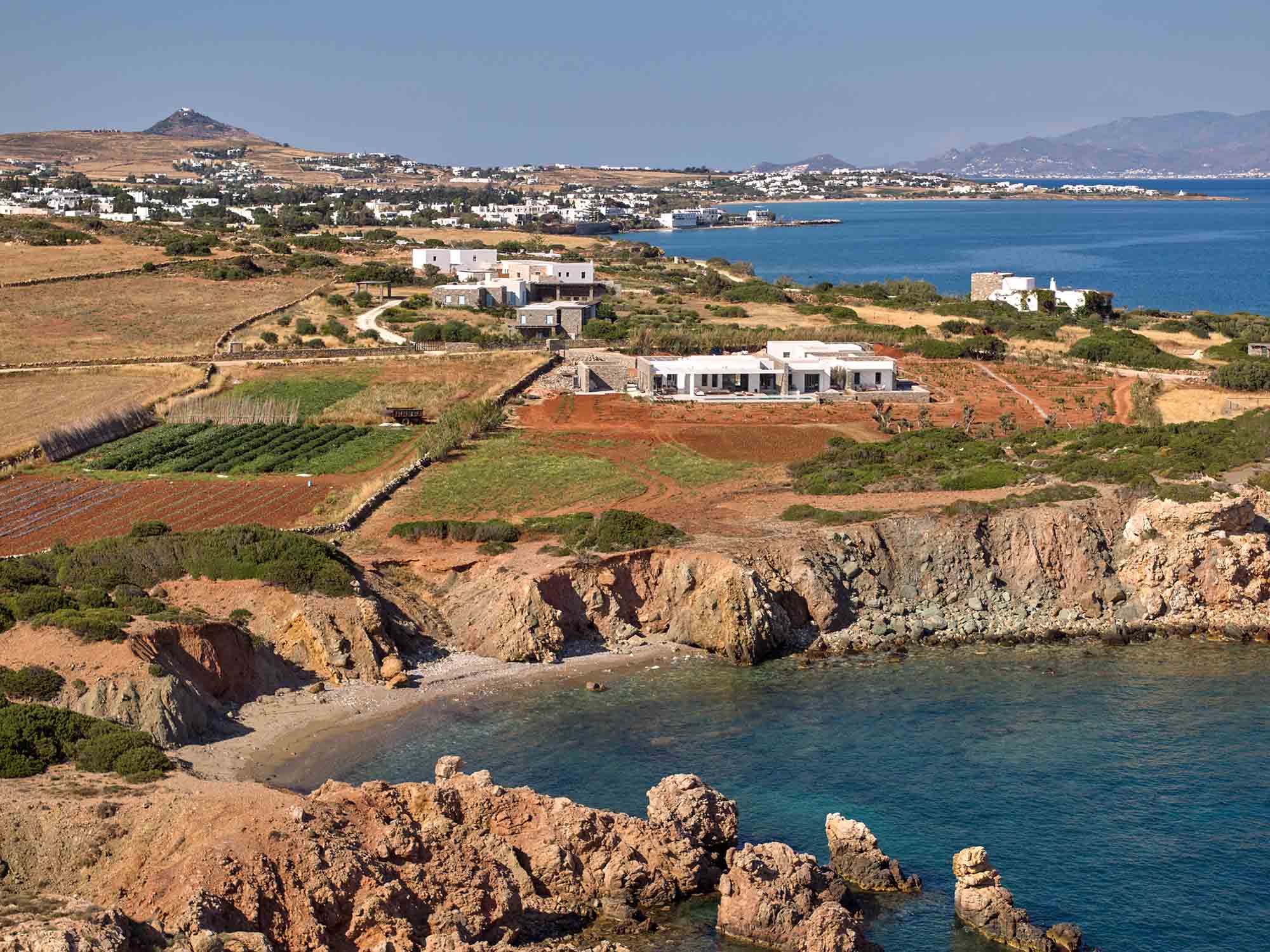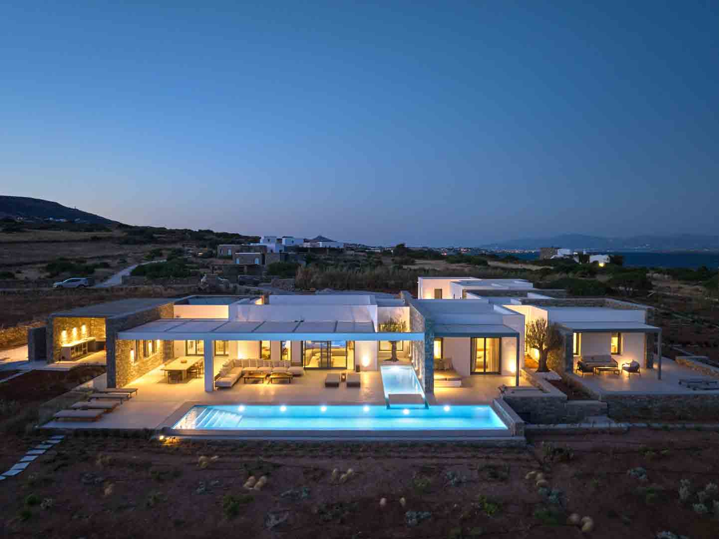 Introducing Villa Morrisey, a newly built architectural masterpiece set along the untouched southern coastline of Paros, in the picturesque area of Drios. Ideally located beside the charming Pyrgaki fishing port, this exceptional seafront residence enjoys a rare position with direct access to its own private beach—offering an effortless blend of understated luxury and authentic Cycladic serenity.