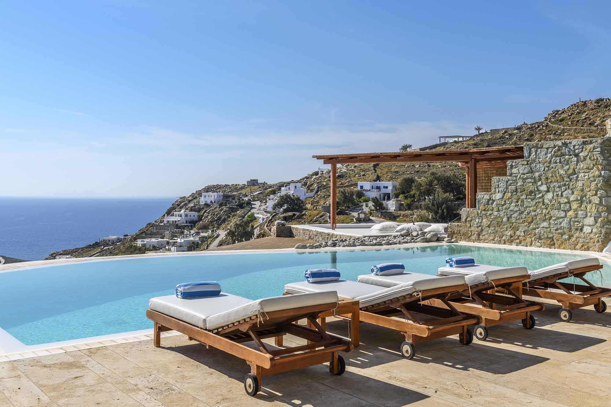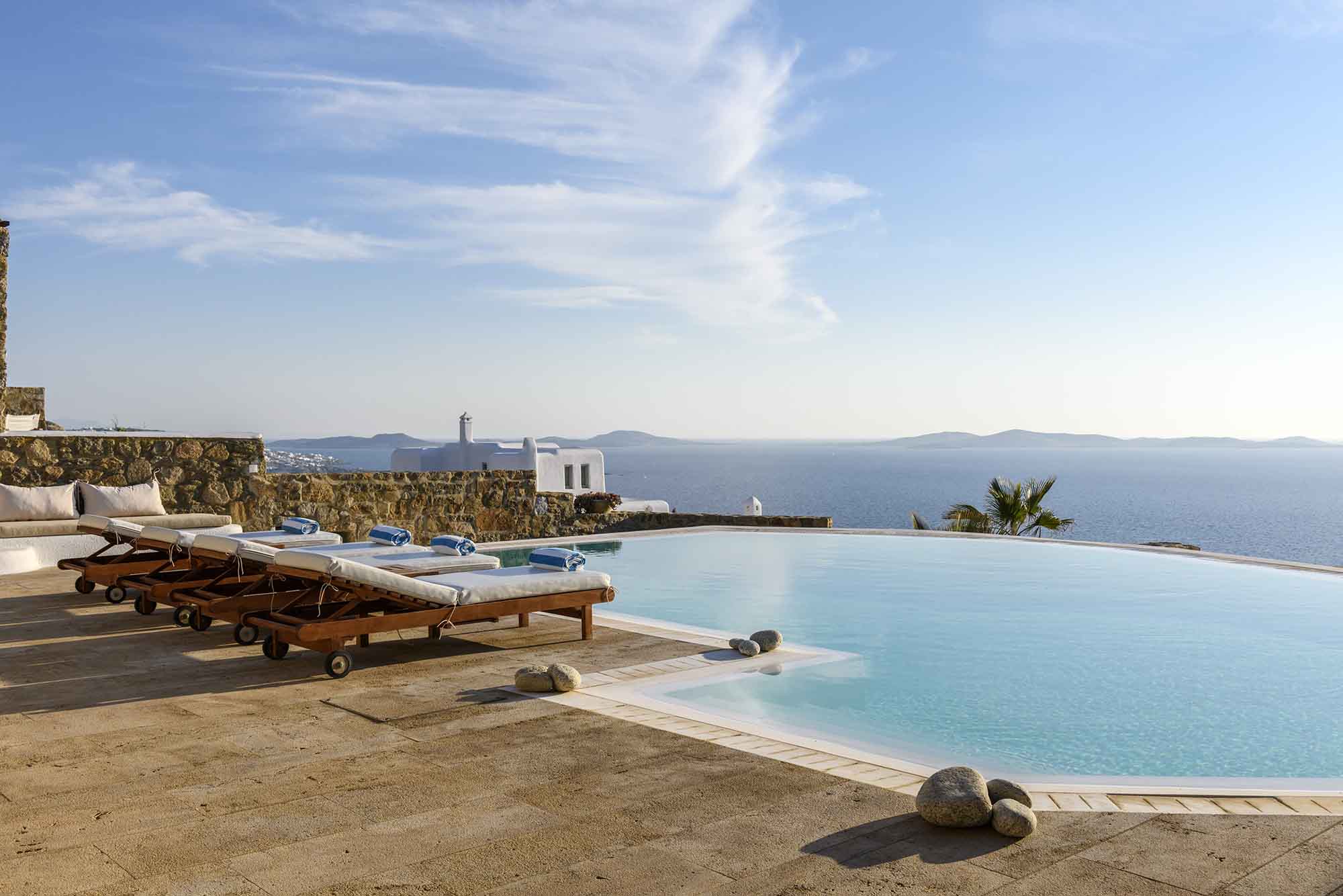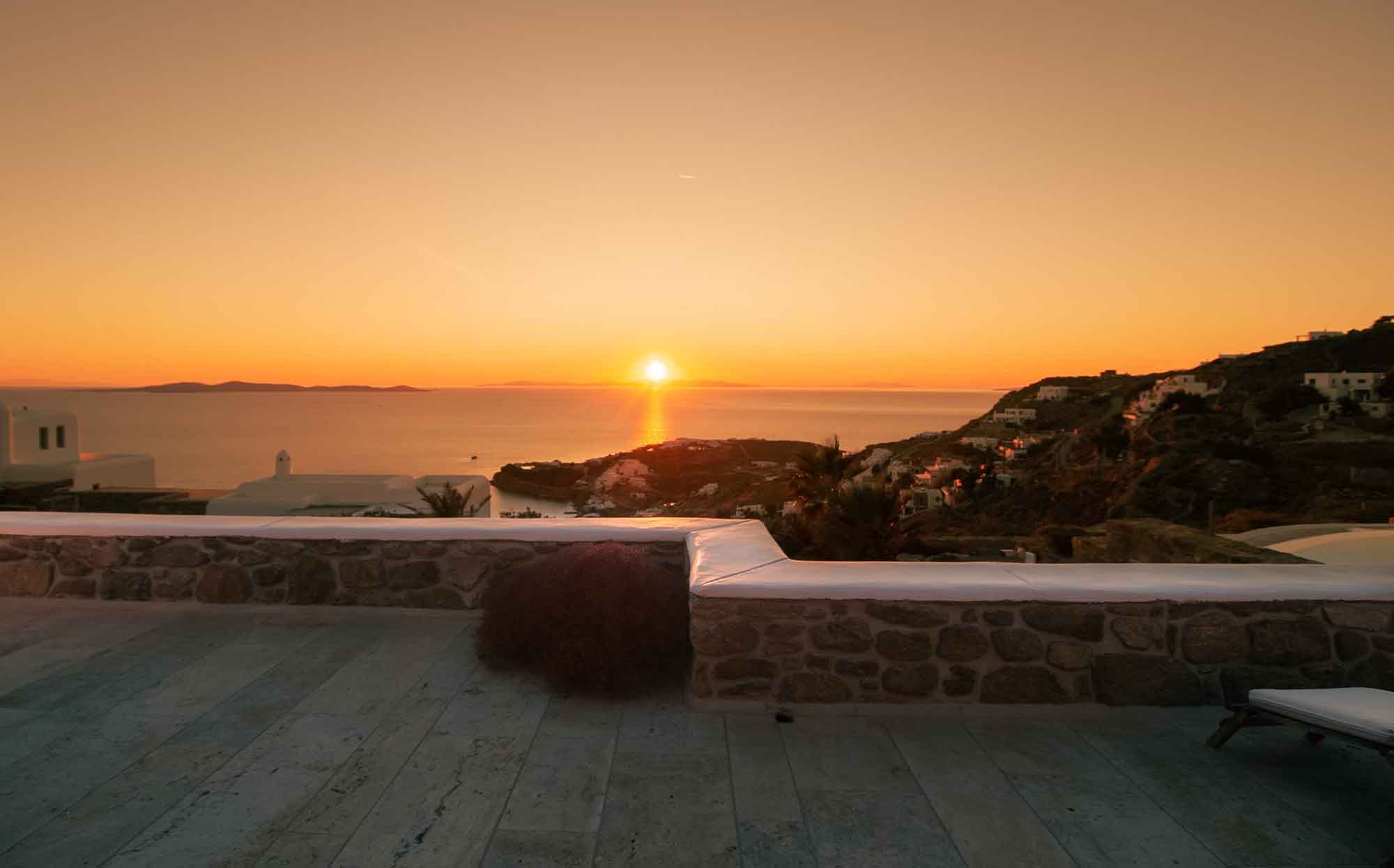 Villa Naira Next cited on a hilltop above Agios Stefanos Beach is the epitome of Mediterranean elegance and sophistication. Perched atop a hill, it offers an unrivaled panoramic view of the enchanting Mykonian sunset, painting the sky in a palette of fiery oranges and deep purples every evening.