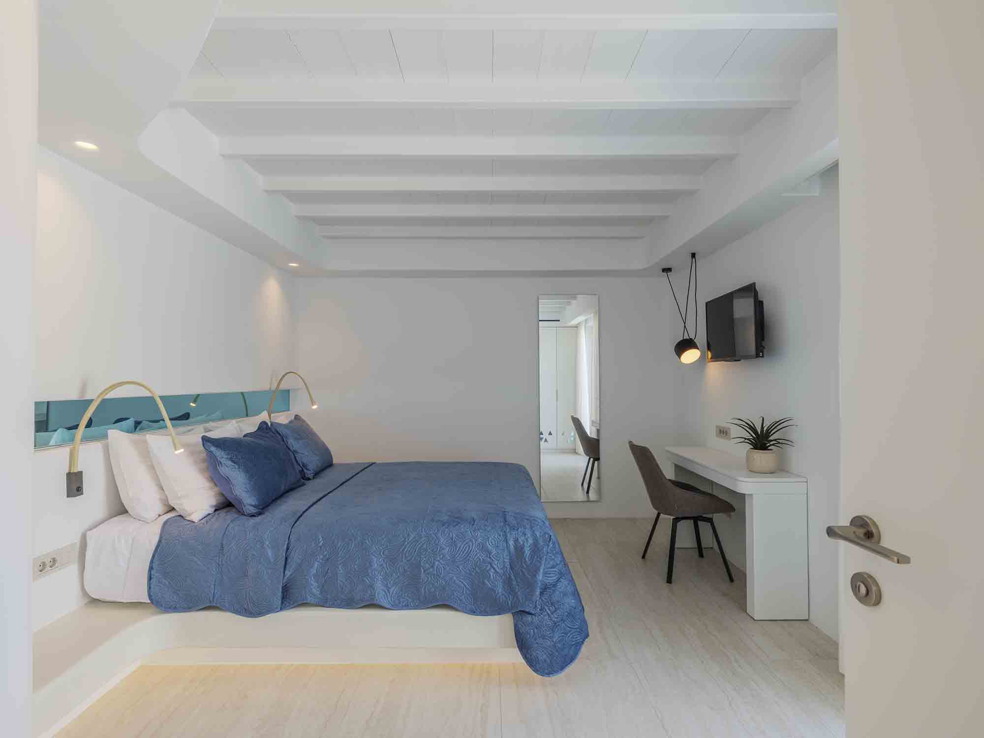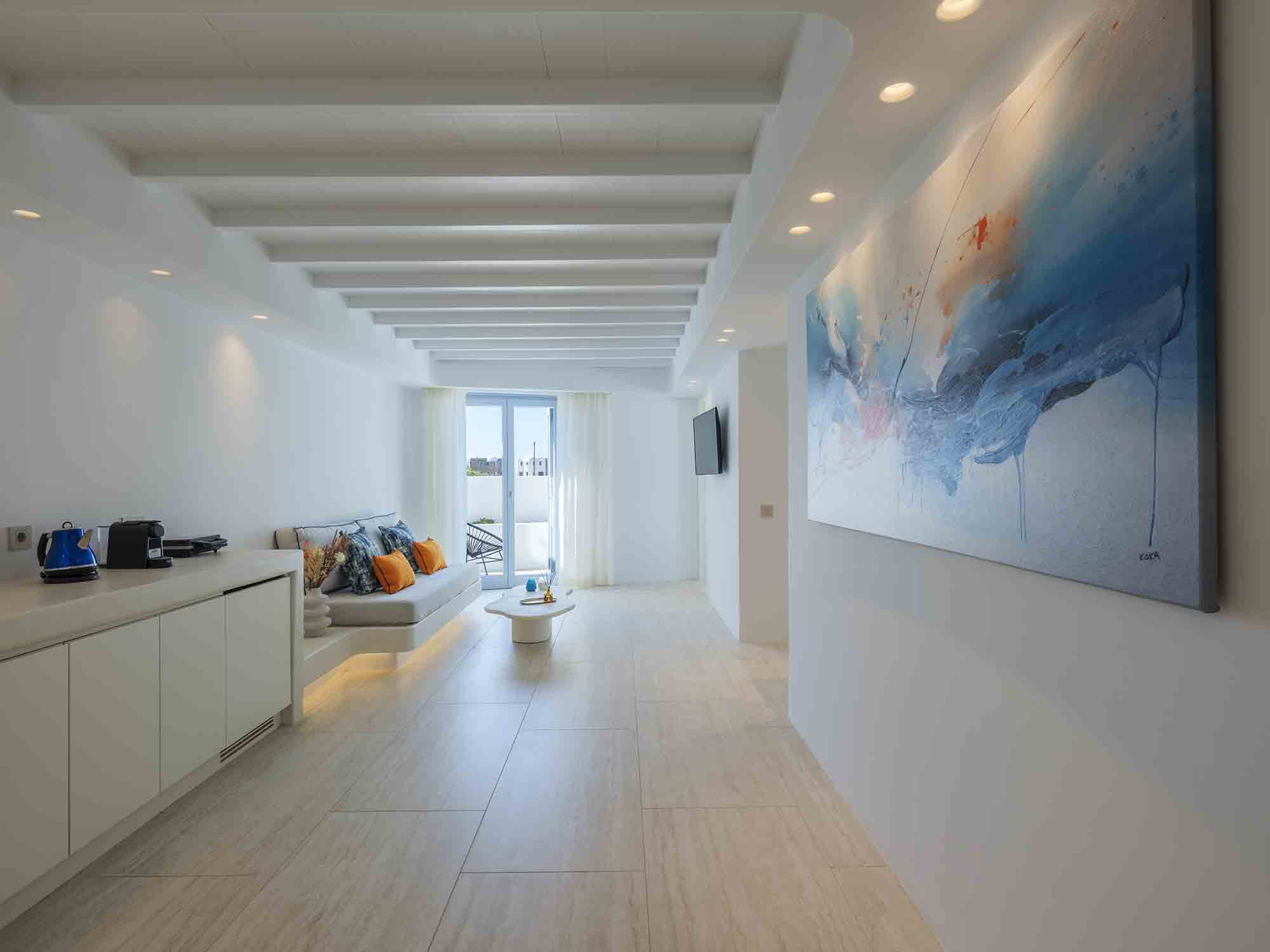 - Room 6, large suite with living room with sofa bed (90 x200), kitchenette, separate bedroom with a queen-size built-in bed, safebox, closet, spacious en-suite bathroom with raining shower - access to a private balcony (21 sqm) with a heated jacuzzi via balcony doors, sea view room