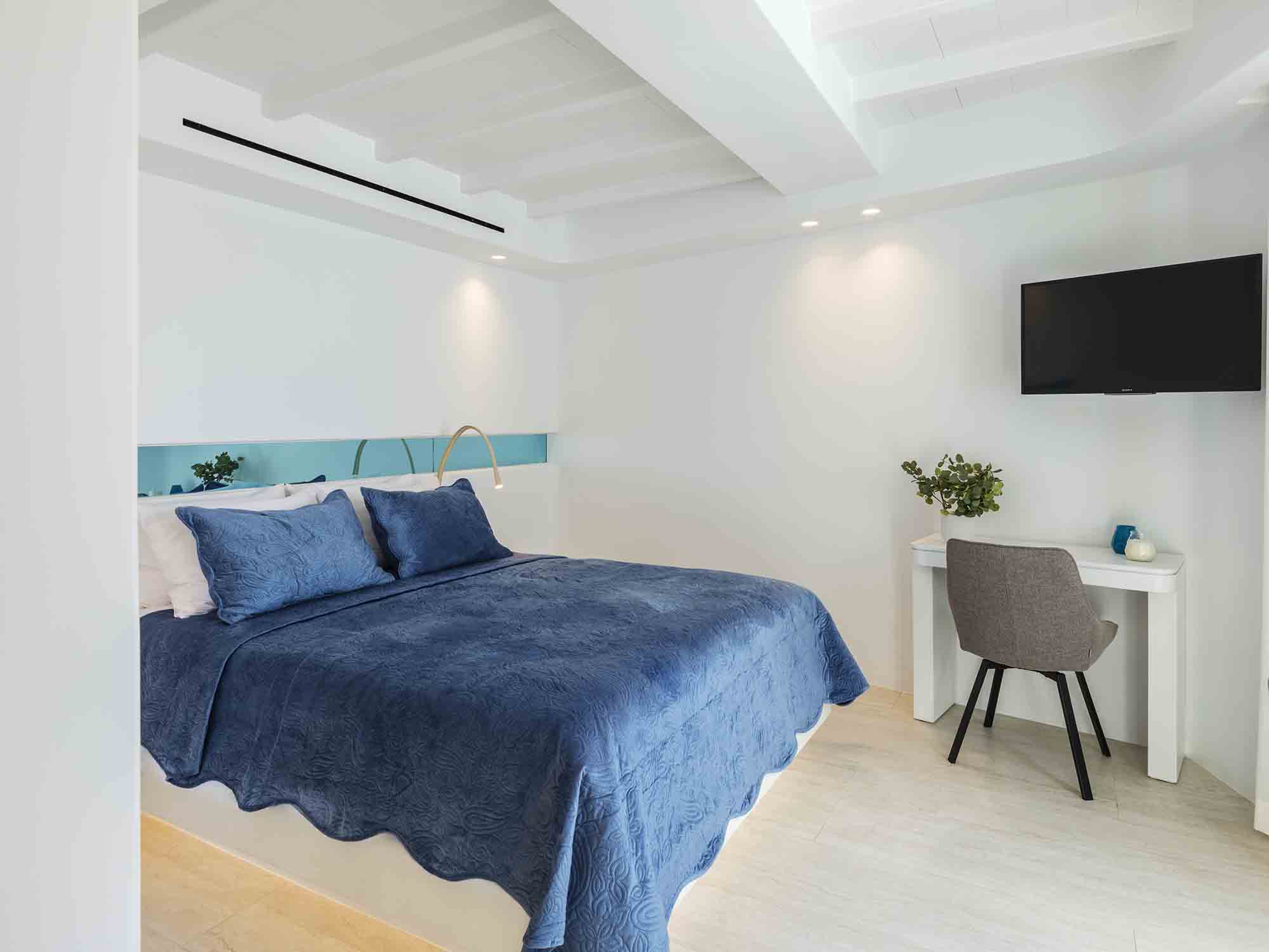 - Room 3, large bedroom with built-in queen-size bed, TV, Safebox, mini fridge, closet, desk, en-suite bathroom with raining shower - access to a balcony | sea & sunset view room