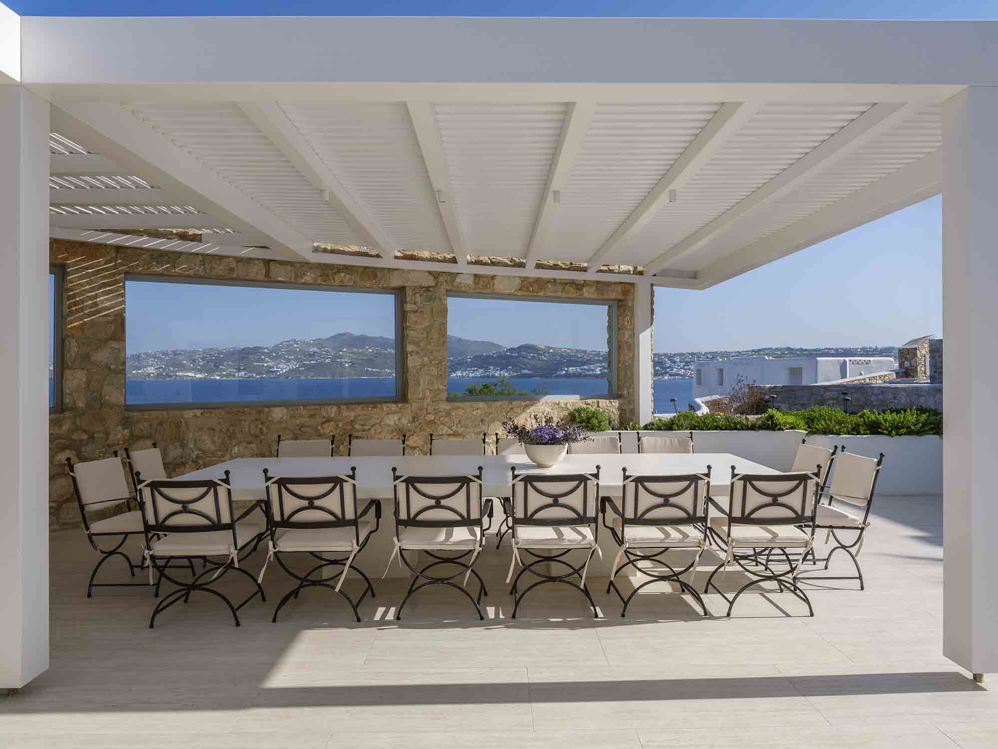 Step into an expansive outdoor paradise where your days are framed by sapphire sea views and the golden hues of Mykonian sunsets. The villa’s private pool overlooks the bay, complemented by a sunset lounge area that invites aperitifs under painted skies. Adjacent, an al fresco dining haven awaits—complete with a BBQ, wood-fired pizza oven, outdoor refrigerators, and a majestic dining table for 16. The larger jacuzzi for 4-5 people with sweeping sea views offers a luxurious escape at any hour beyond spaces.