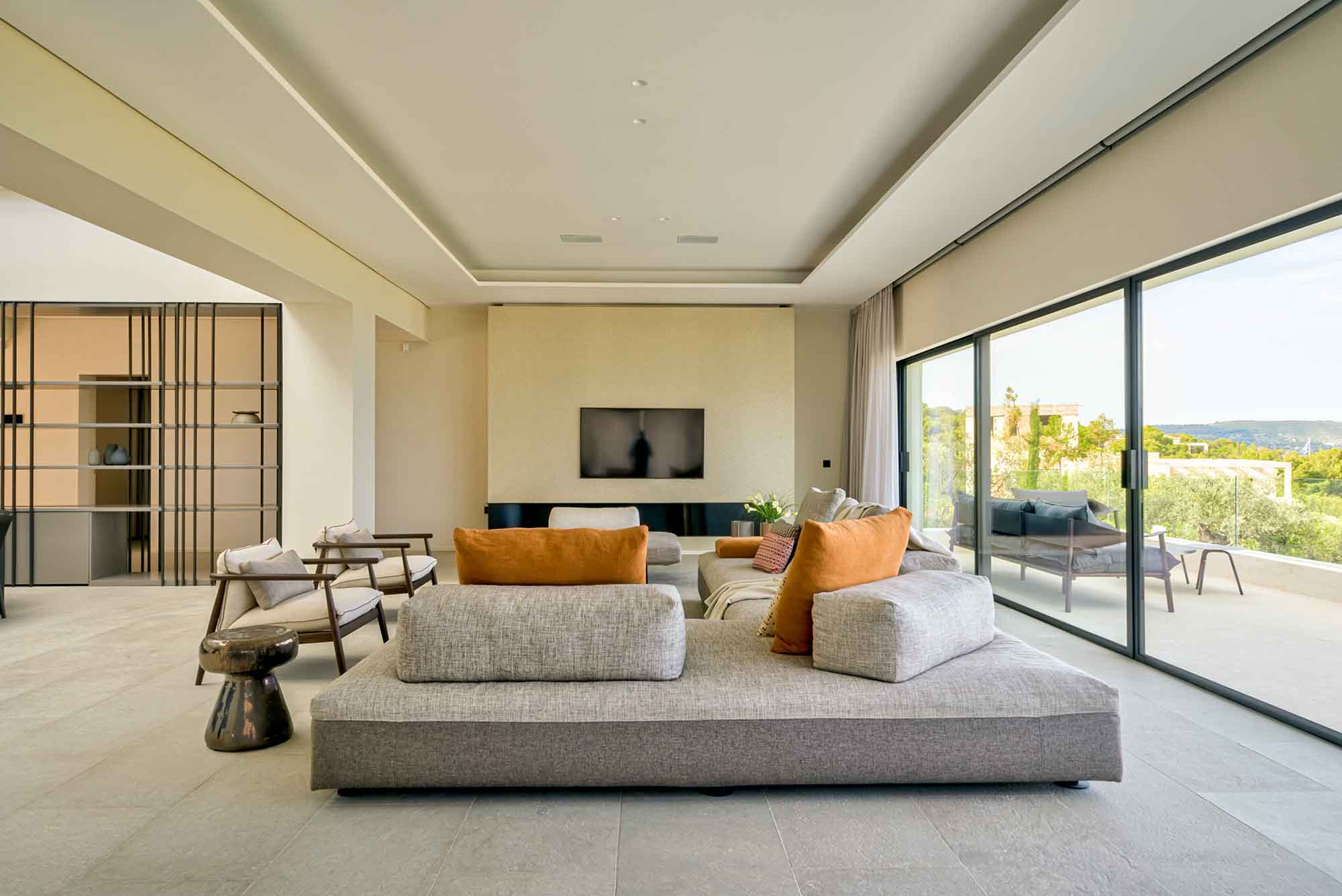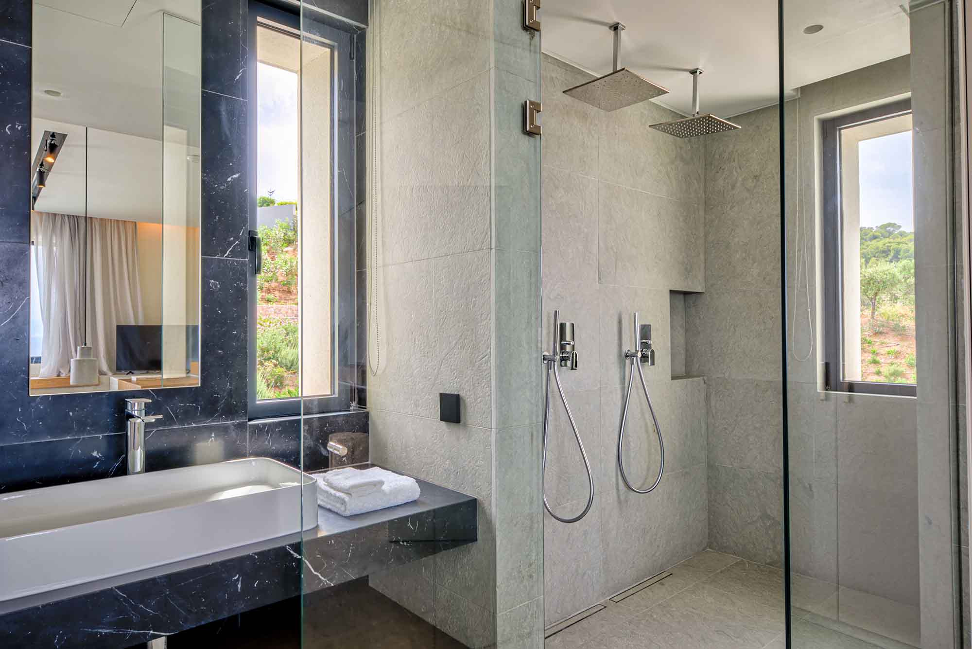 Inside the villa, guests are greeted with a combination of stunning seas views, tasteful décor, cutting edge amenities and carefully selected, beautifully crafted designer furnishings. The result leaves you with a sense of luxury, comfort, exclusiveness and peaceful calm. The six large en-suite bedrooms all have direct access to outside space and combine with the two large reception areas ensure that there is ample space for keeping large groups entertained whilst always being able to find a quiet area for a good book and siesta. Those seeking total relaxation will quickly find the spa area, complete with sauna, steam room and cold plunge pool, a favoured area of the house.