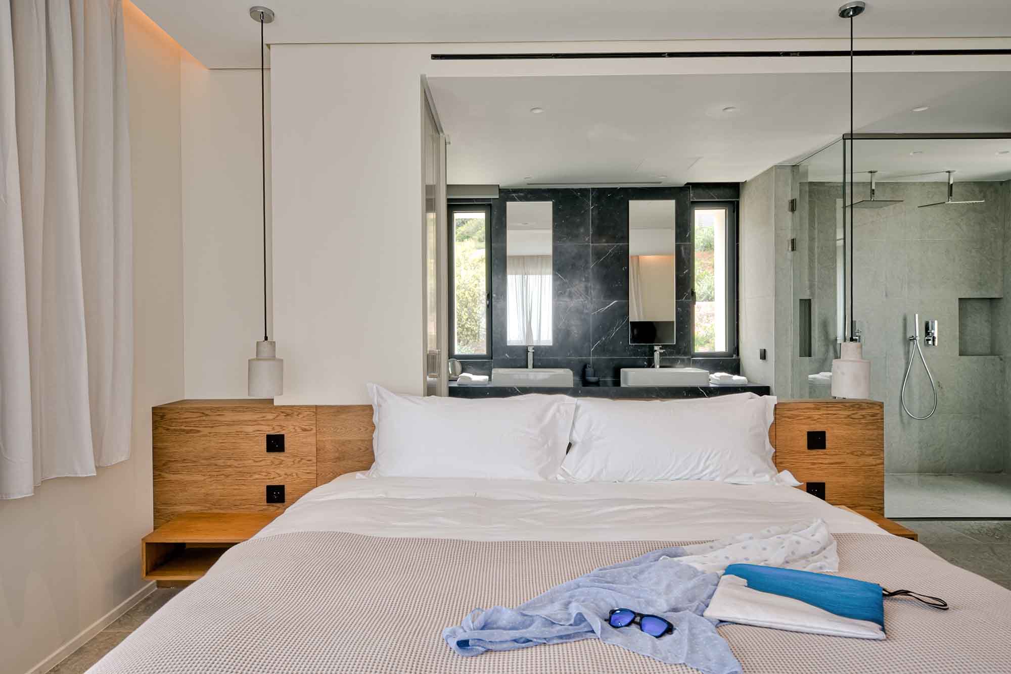 Villa Revival in Porto Heli is a six bedroom villa able to accommodate up to 14 guests and offers guests sensational views across the beautiful Aegean sea from each corner of the villa. The accommodation has been thoughtfully planned, both inside and out, to perfectly cater for the needs of large families, two to three smaller families or groups of friends looking to share a luxury villa rental in Porto Heli.