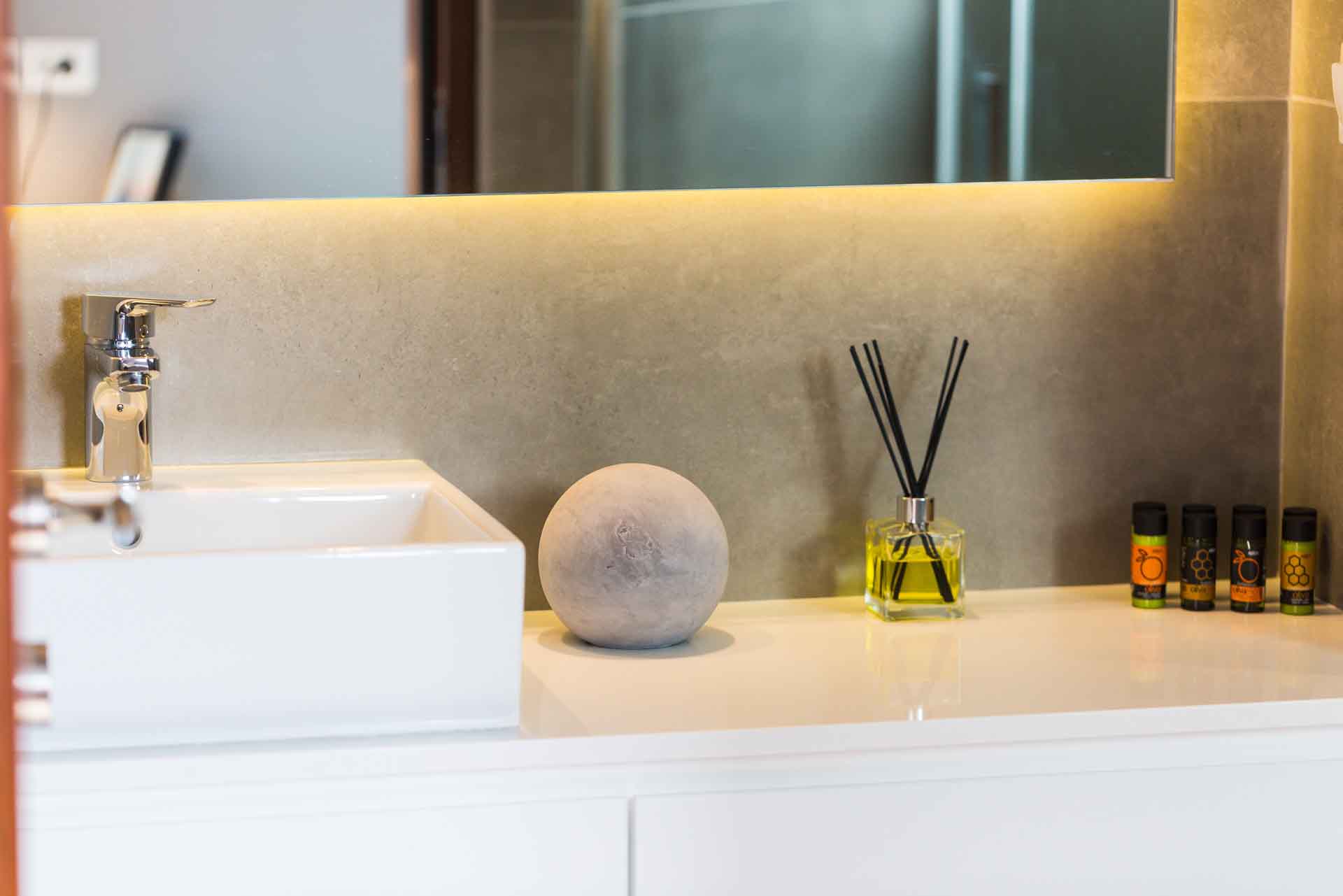 Every corner of Villa Scarlet whispers comfort and elegance, from the en-suite bathrooms stocked with Cretan olive oil amenities to the two fully-equipped kitchens, one conveniently offering direct access to our stunning private pool. Imagine sipping on a cold drink, and preparing a hearty meal as your children splash happily nearby.