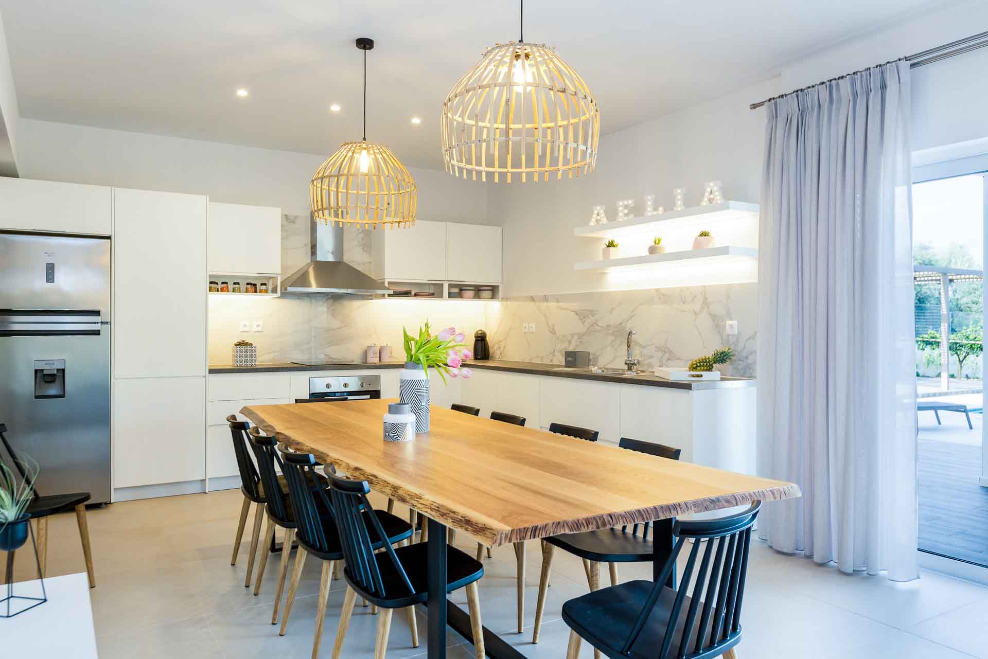 - Open plan fully equipped kitchen with a dining area for 10 guests and modern appliances