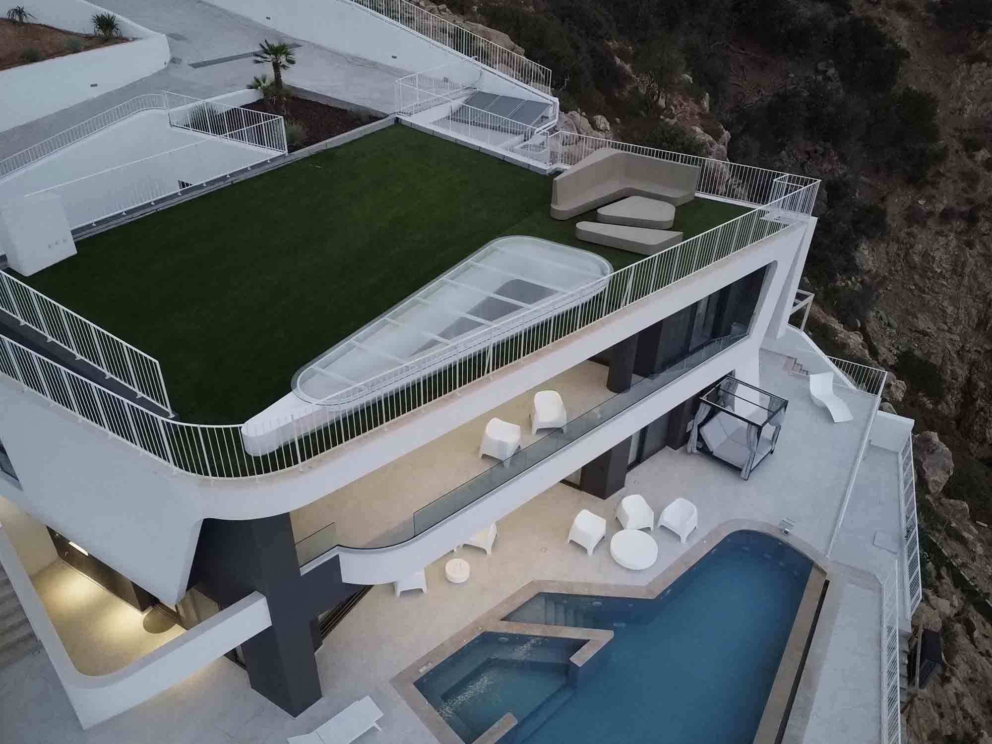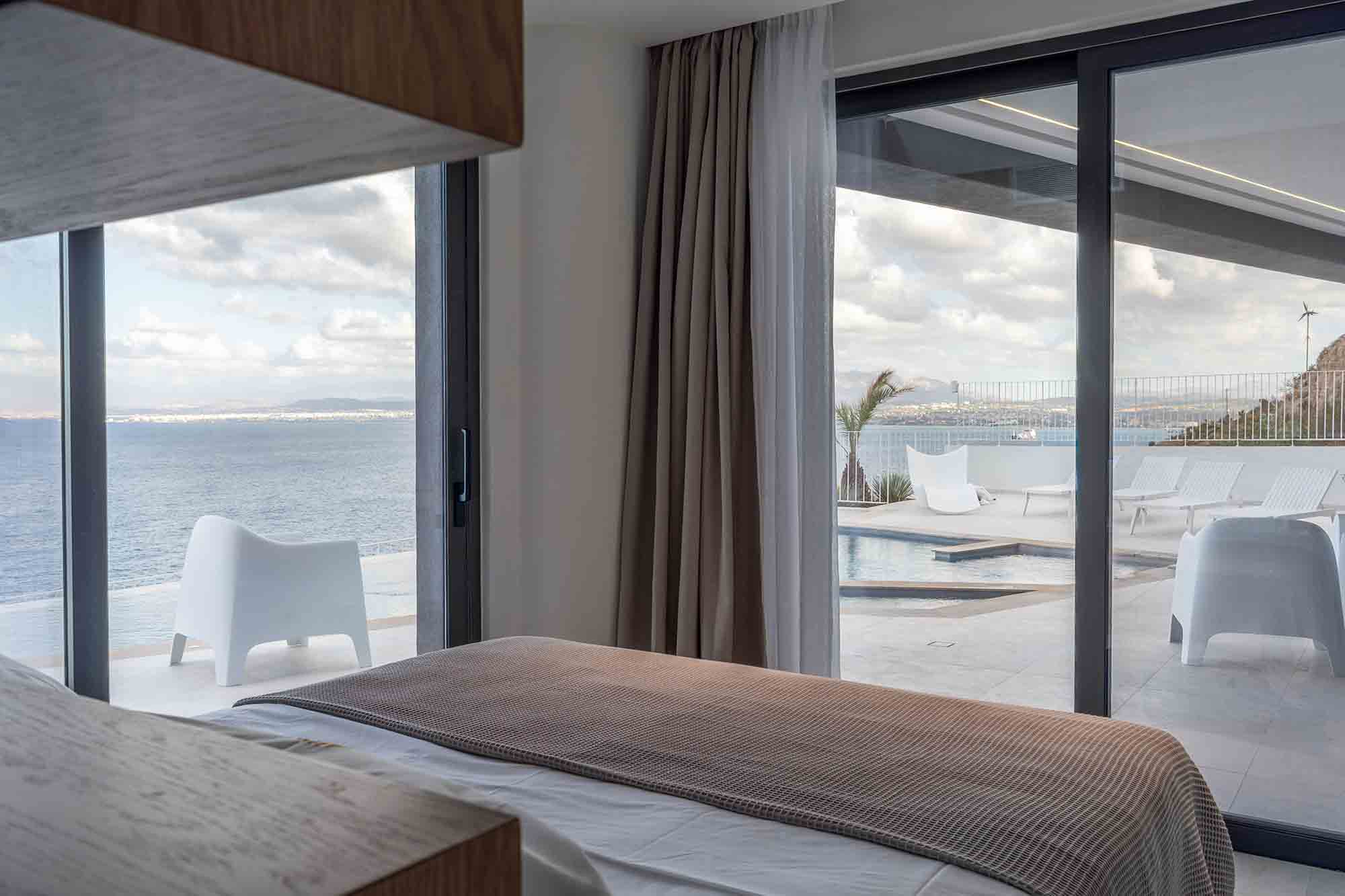 Outdoors, Sea Stone presents an extraordinary setting. A stunning infinity pool appears to blend seamlessly with the horizon, enhanced by hydromassage jets and a cascading waterfall. The fully equipped BBQ and dining area provides the perfect space for elegant outdoor gatherings, where evenings are enjoyed under the stars in effortless style. The villa also offers private sea access, allowing guests to descend directly to the water and explore hidden coastal sea caves—an experience reserved for the few.