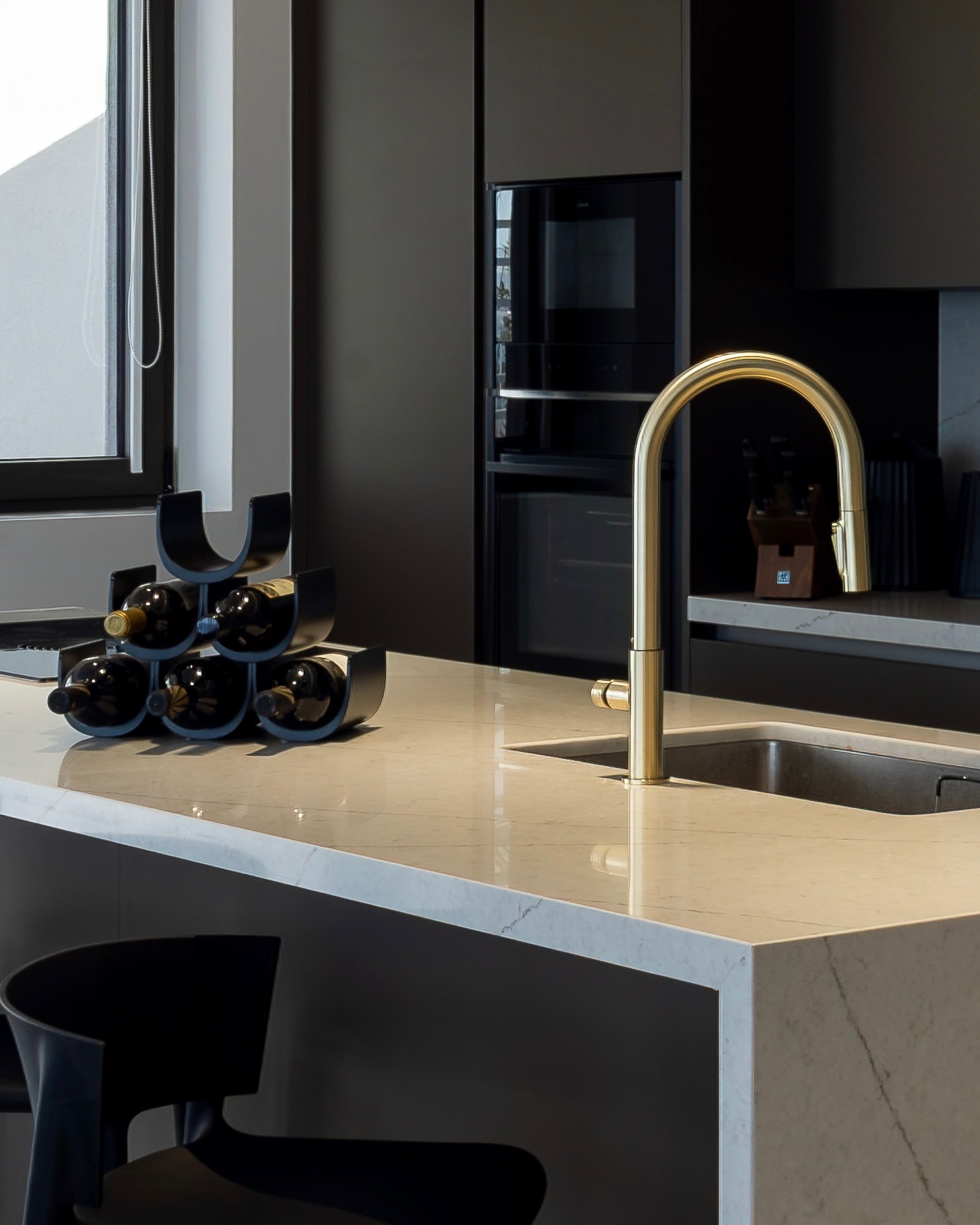The lower level is dedicated to leisure and entertainment, featuring a modern gym with panoramic sea views, a private cinema, and a sophisticated bar—creating a perfect balance between activity and relaxation beyond spaces.